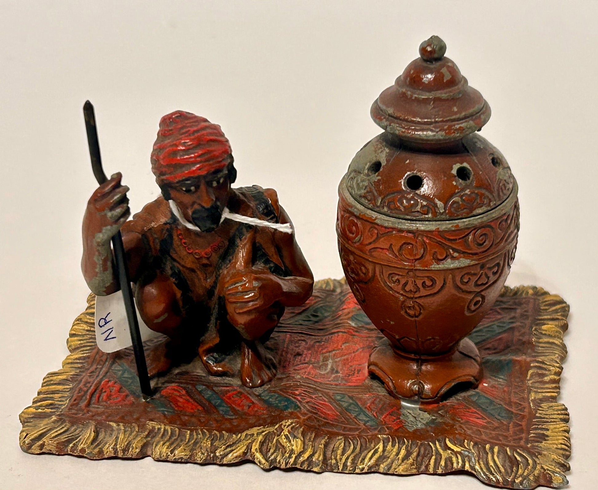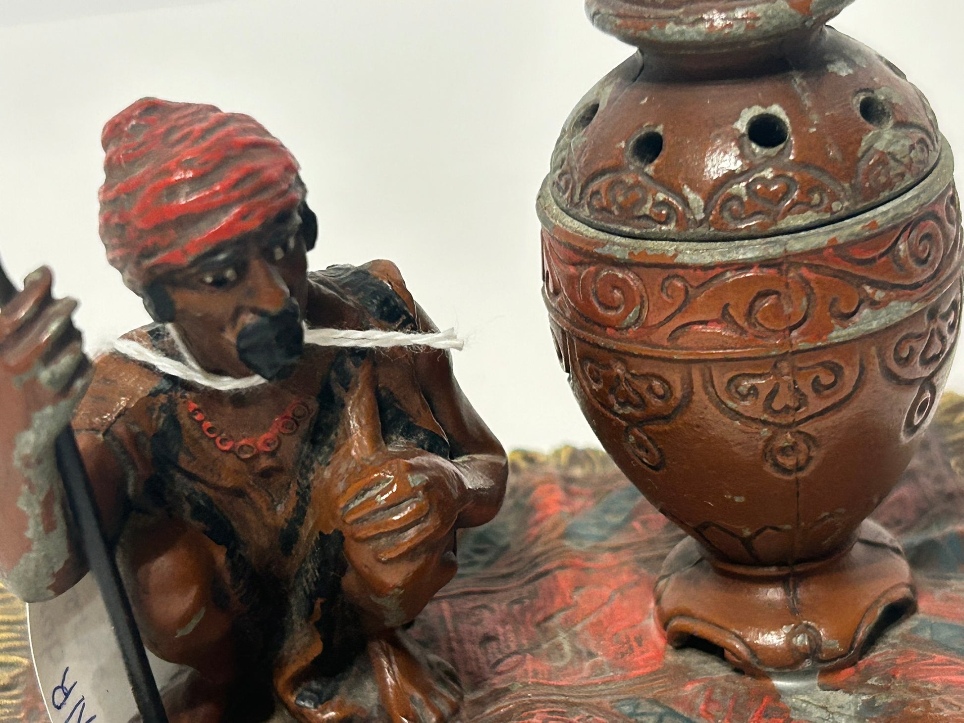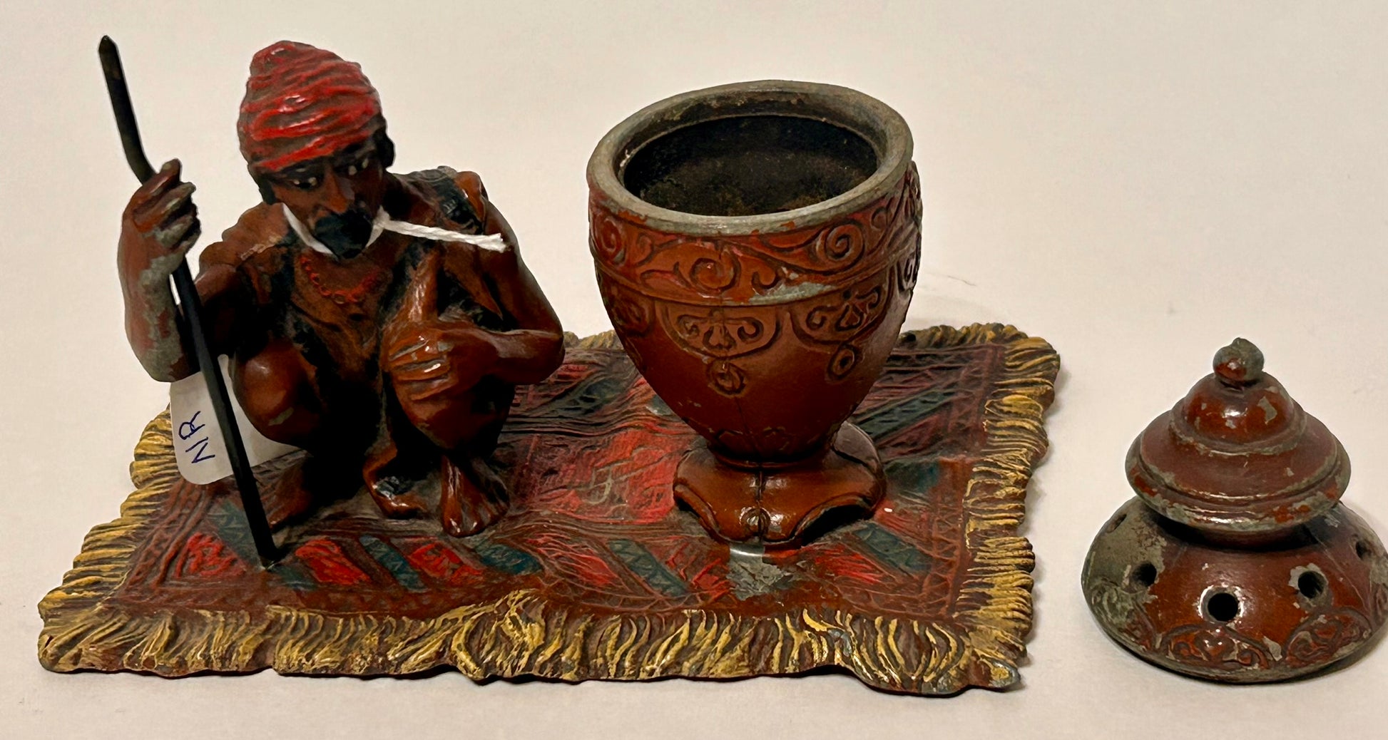 ARAB ON RUG FIGURAL MENTAL INCENSE BURNER 5" LONG X 4 1/4" TALL. CALL OR TEXT FOR MORE INFORMATION