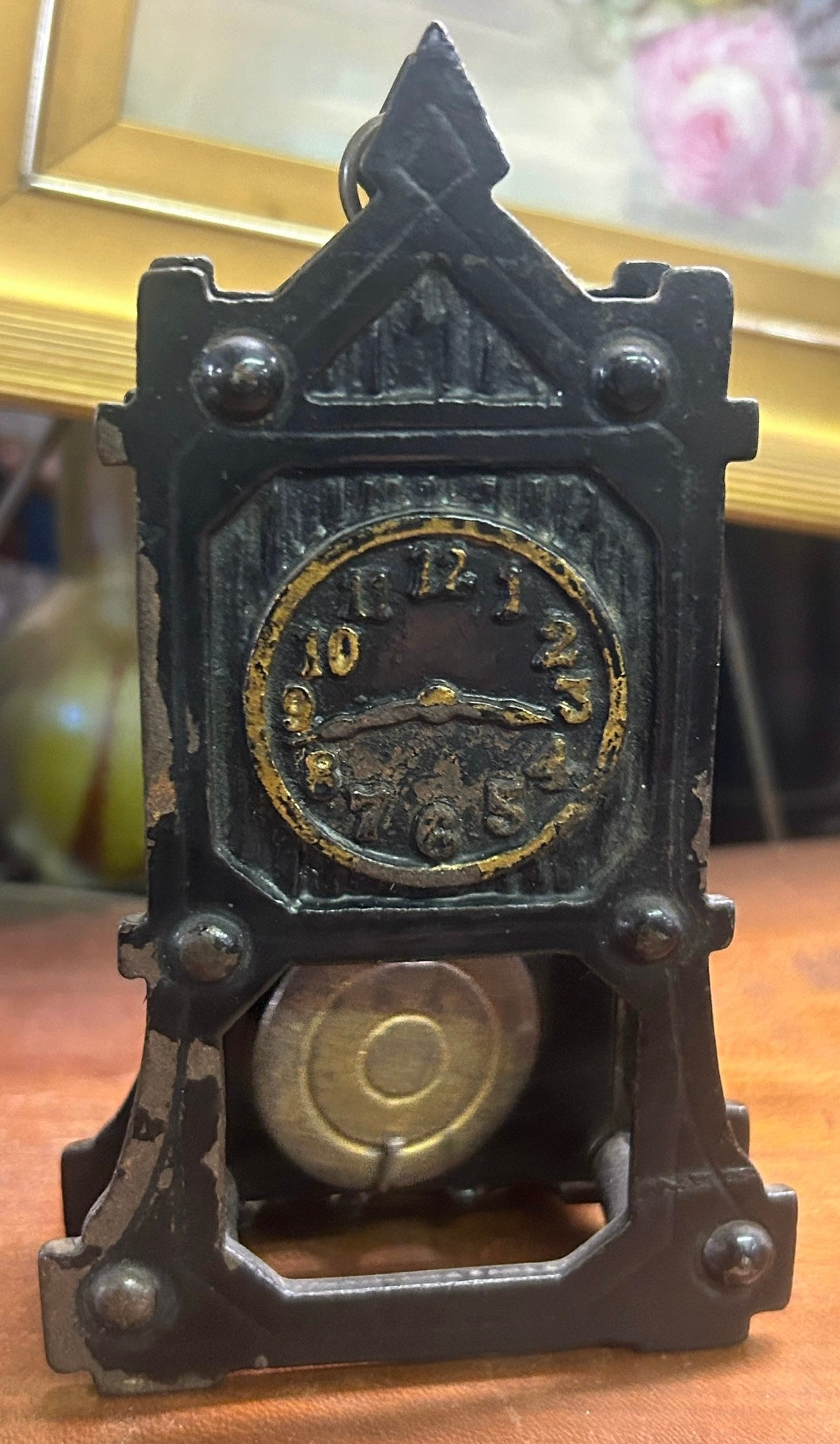 ARCADE HALL CLOCK CAST IRON TOY STILL BANK 5 3/4" TALL. CALL OR TEXT FOR MORE INFORMATION