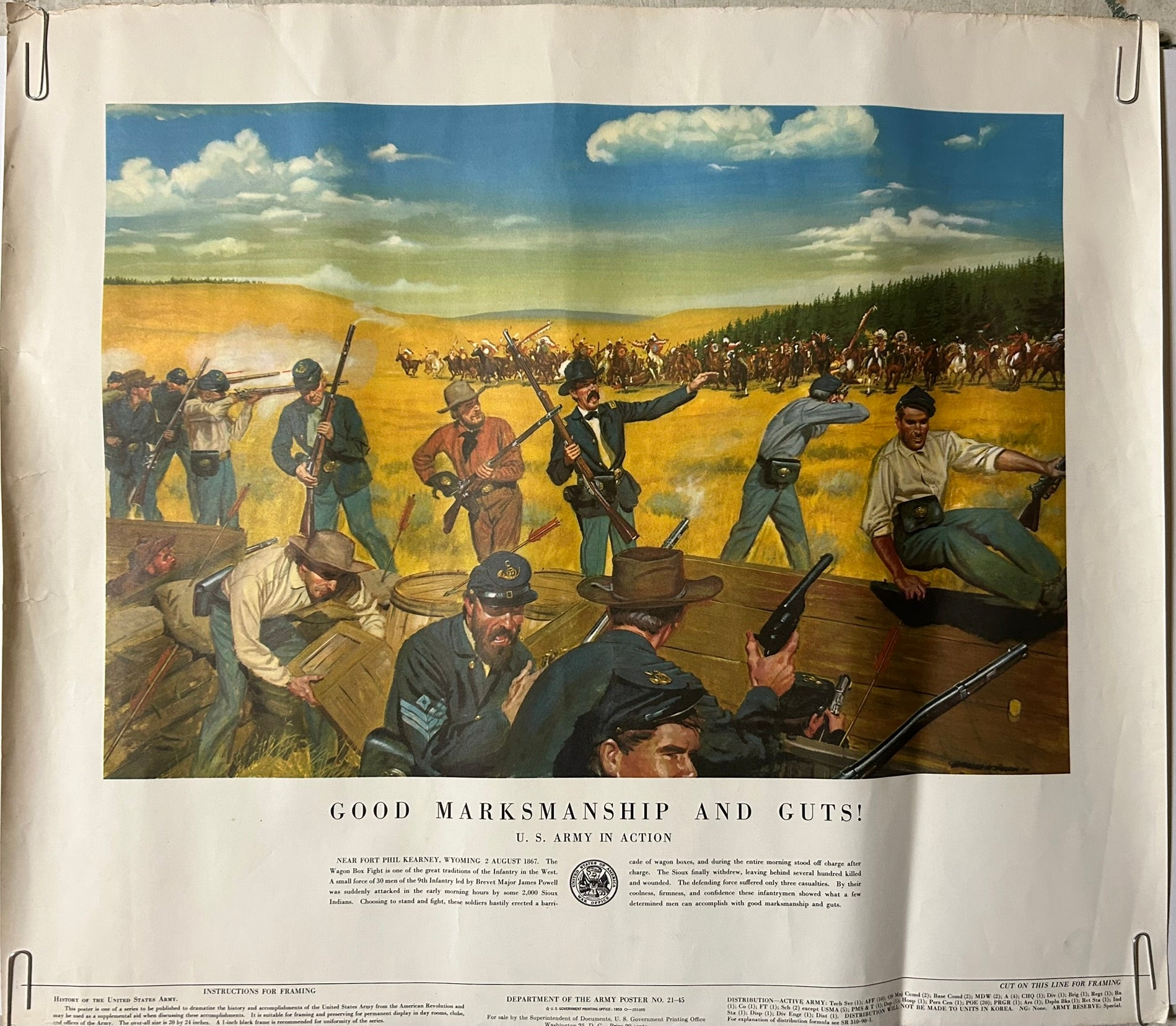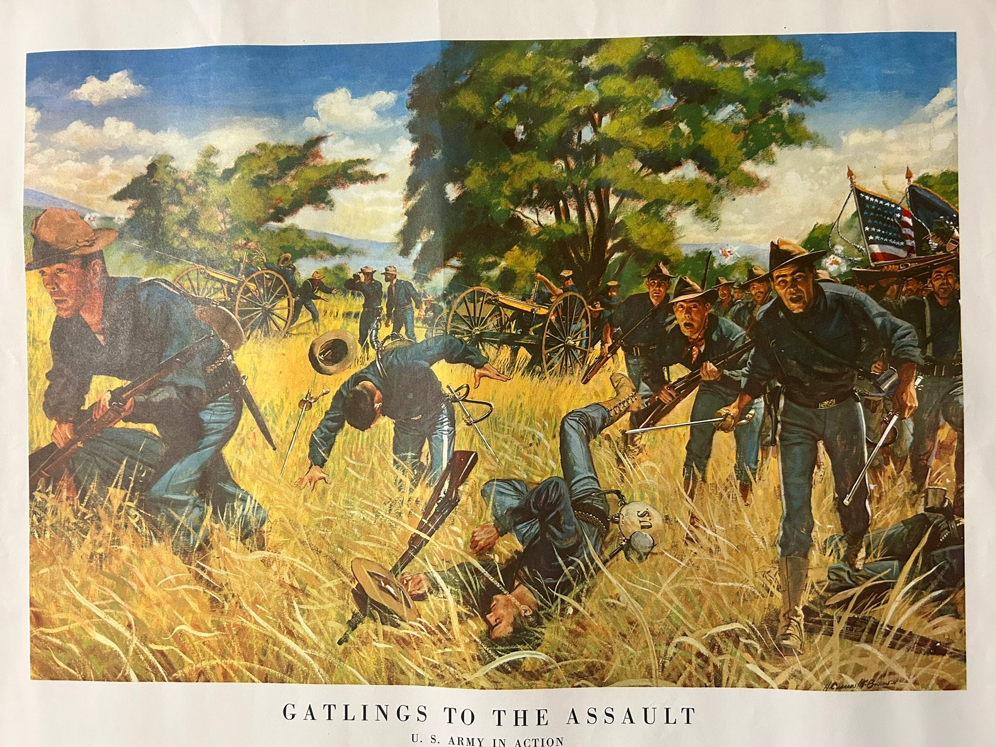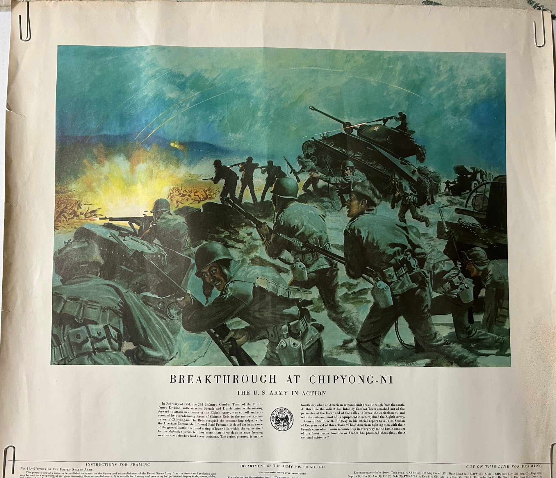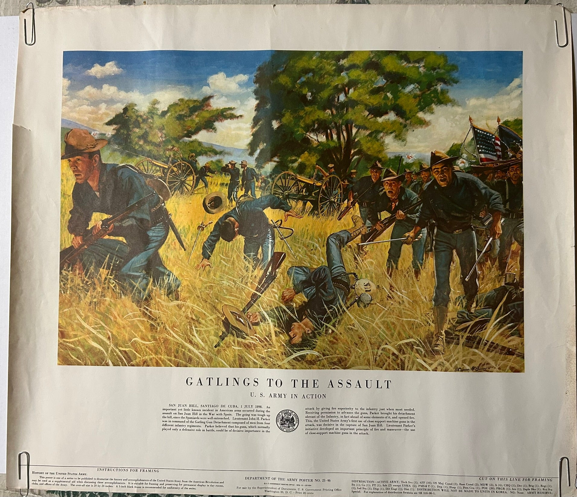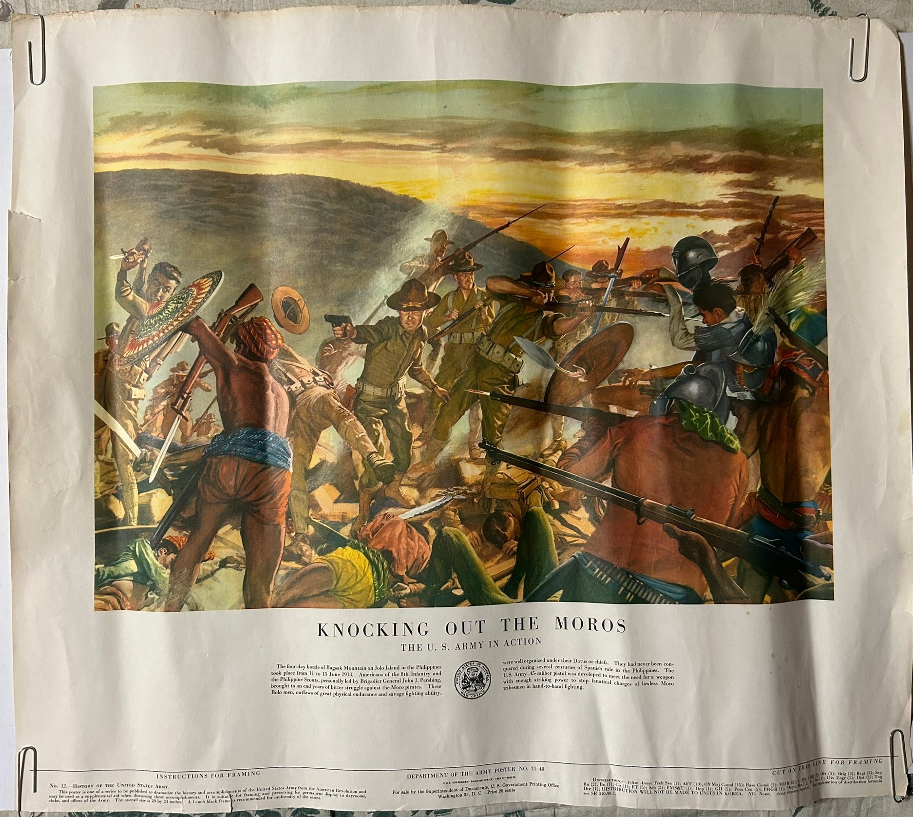 SIX U.S. ARMY HISTORIC BATTLE SCENES POSTERS 21" X 24" COPYRIGHT 1953. CALL OR TEXT FOR MORE INFORMATION