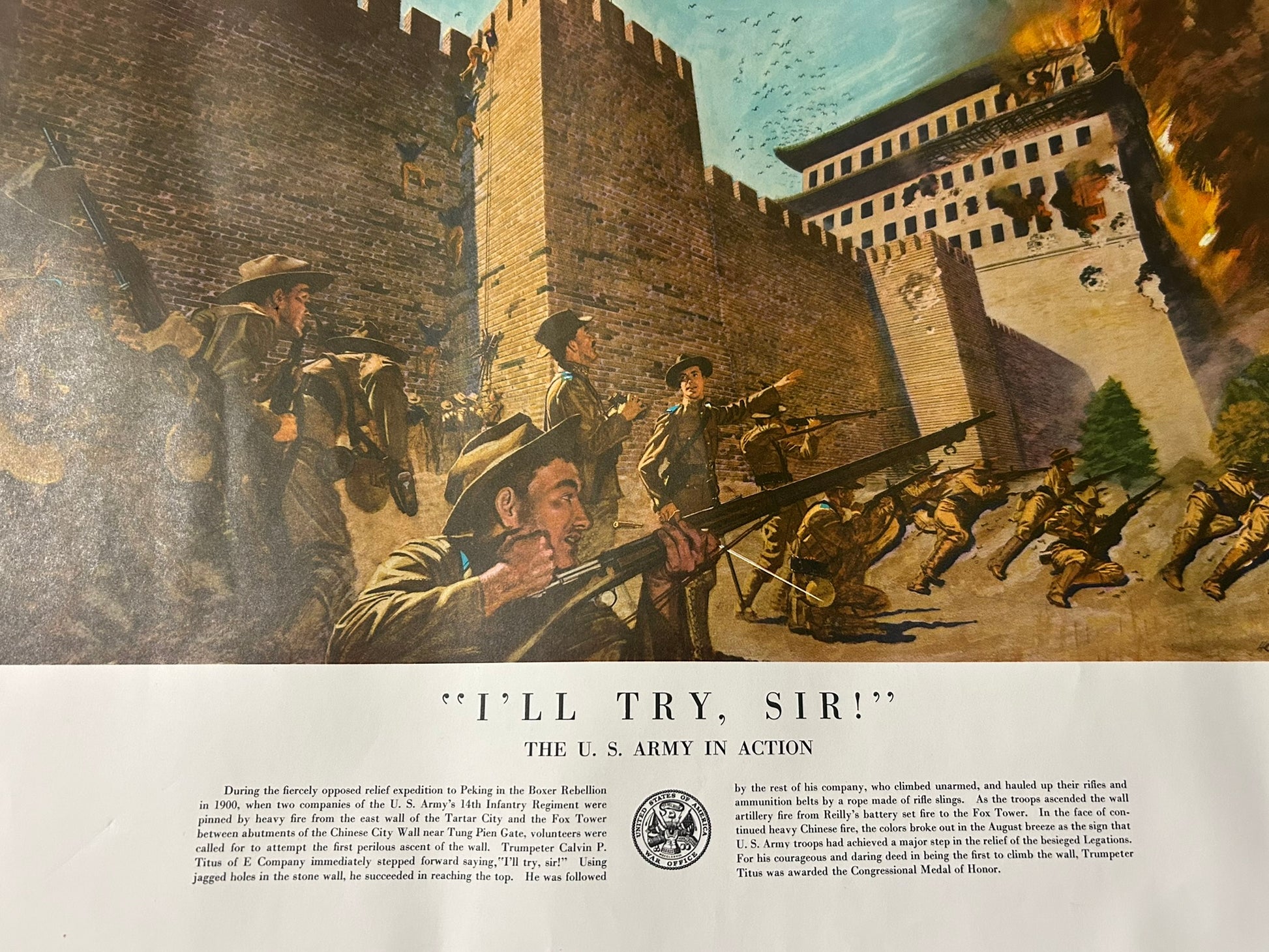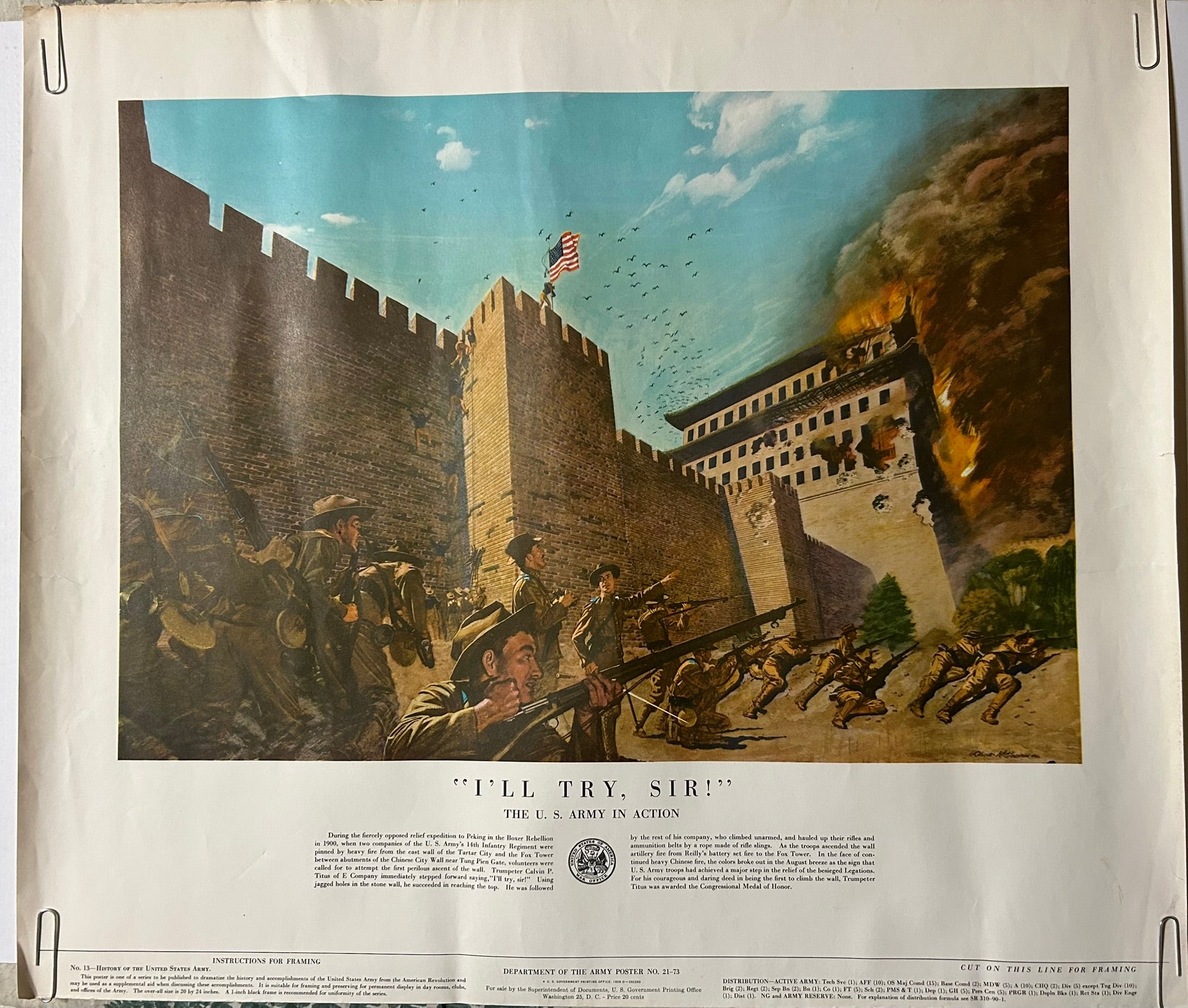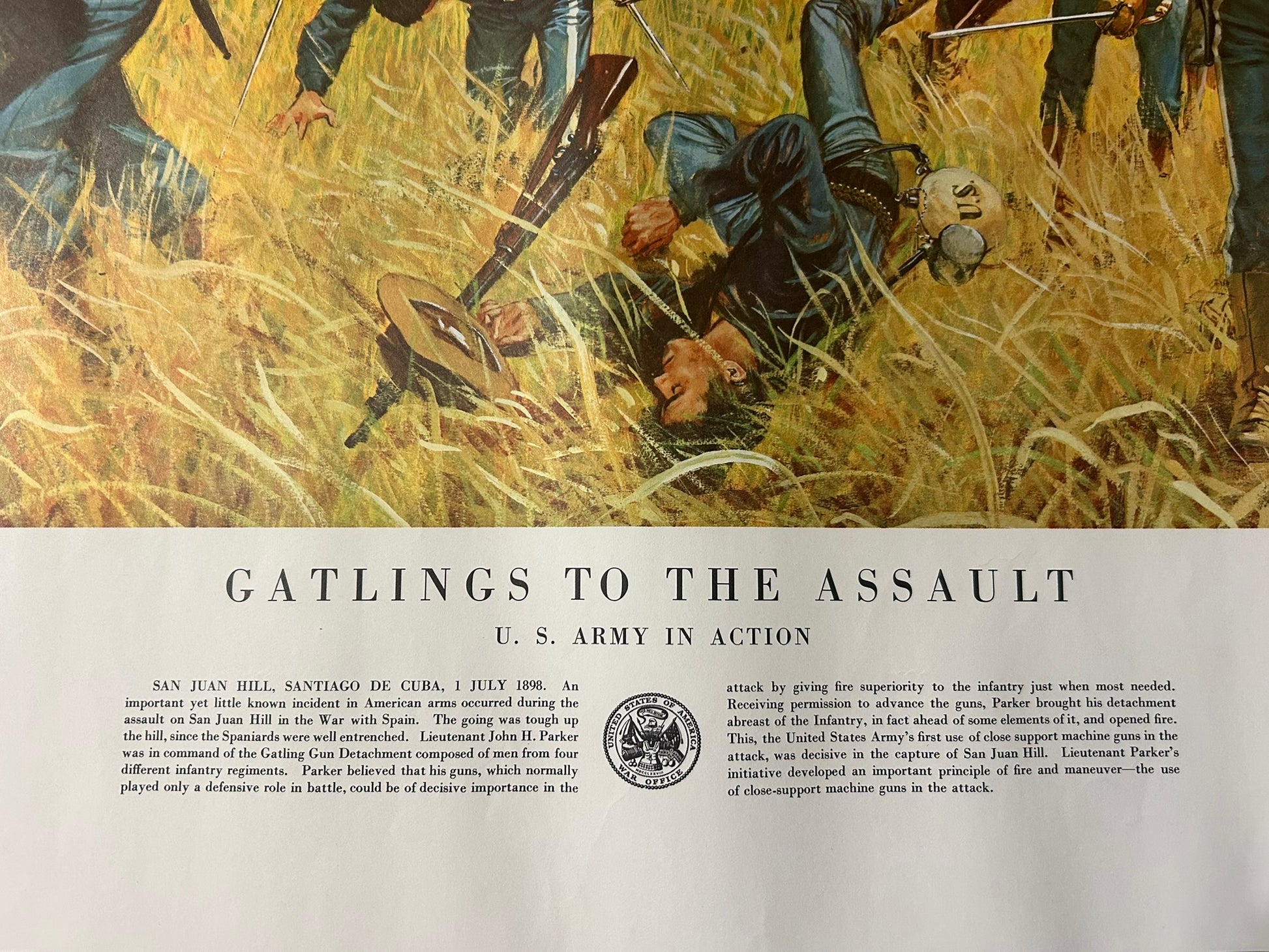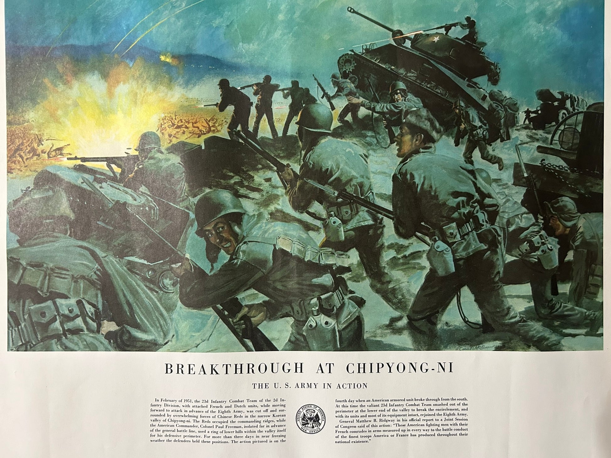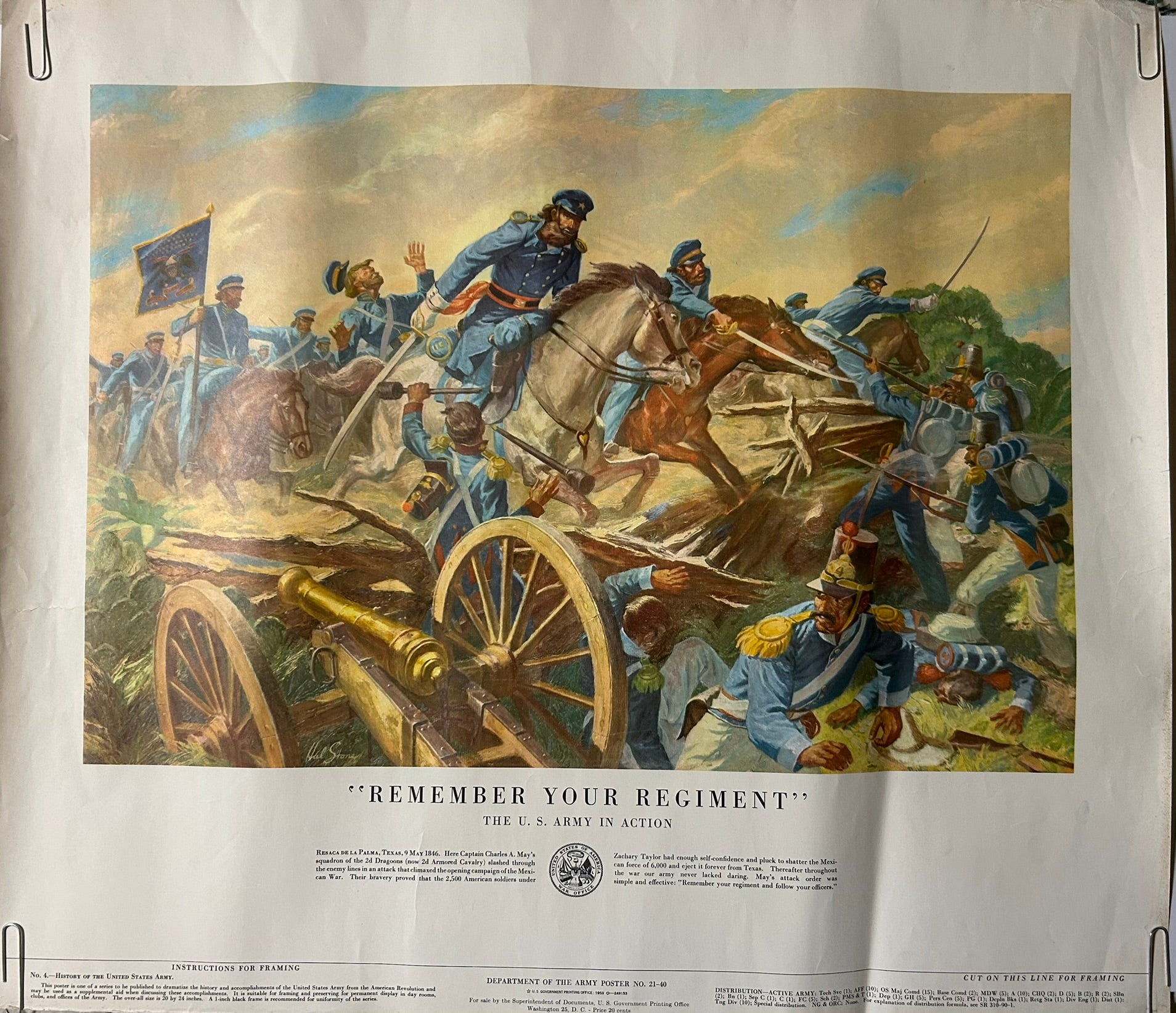SIX U.S. ARMY HISTORIC BATTLE SCENES POSTERS 21" X 24" COPYRIGHT 1953. CALL OR TEXT FOR MORE INFORMATION
