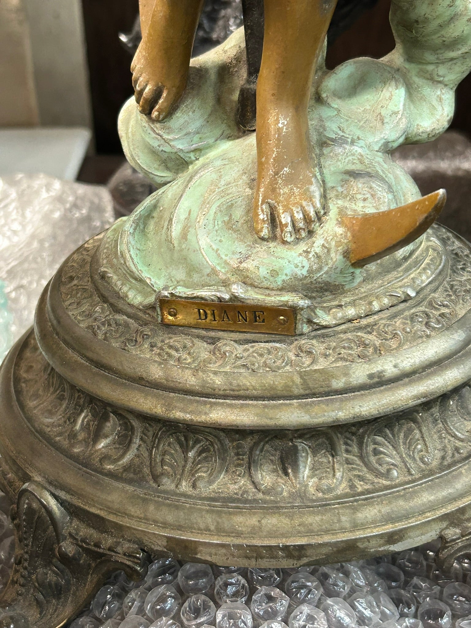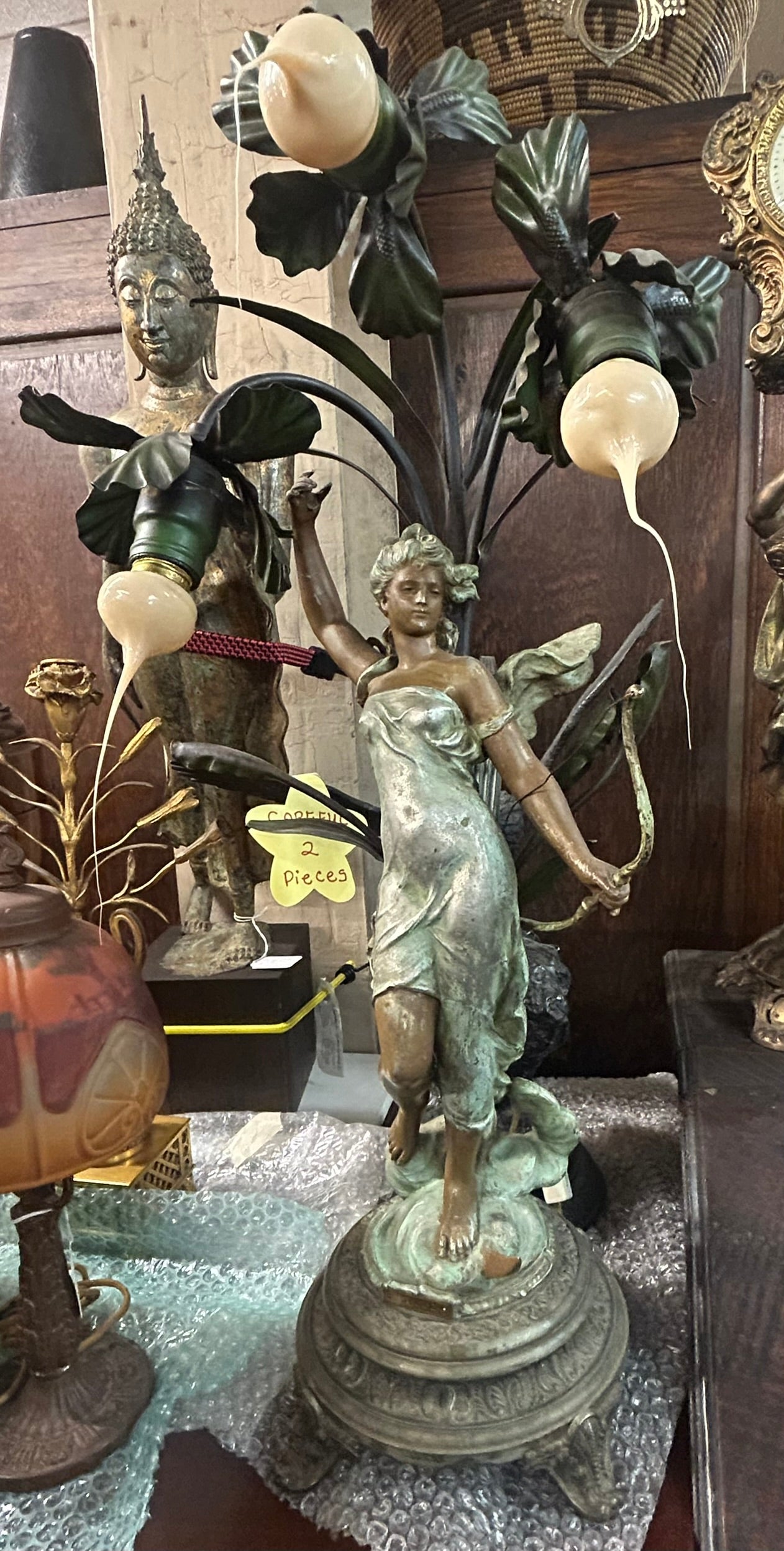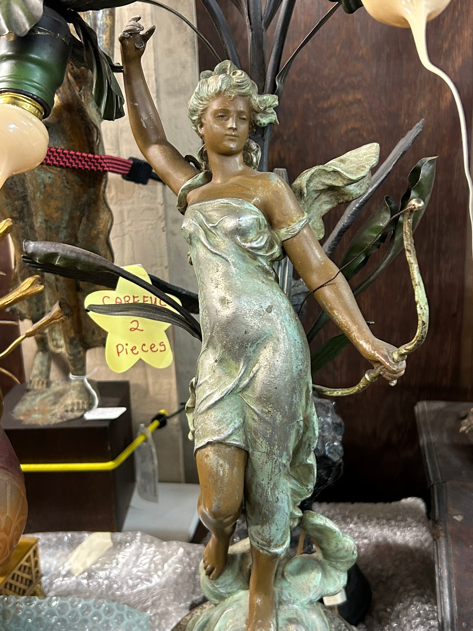 ANTIQUE ART NOVEAU FIGURAL LAMP OF DIANE 26" TALL. CALL, TEXT, OR E-MAIL FOR INFORMATION