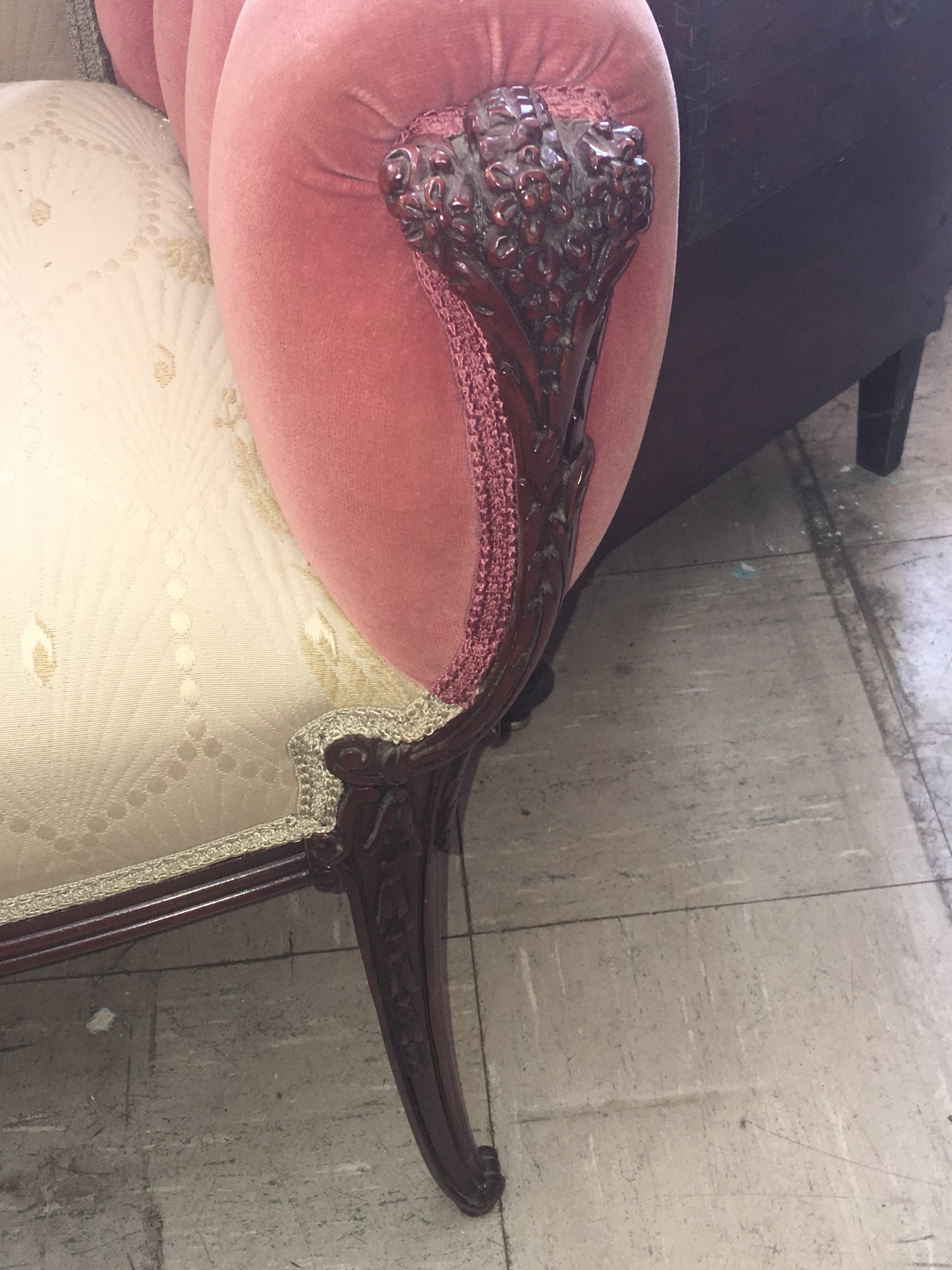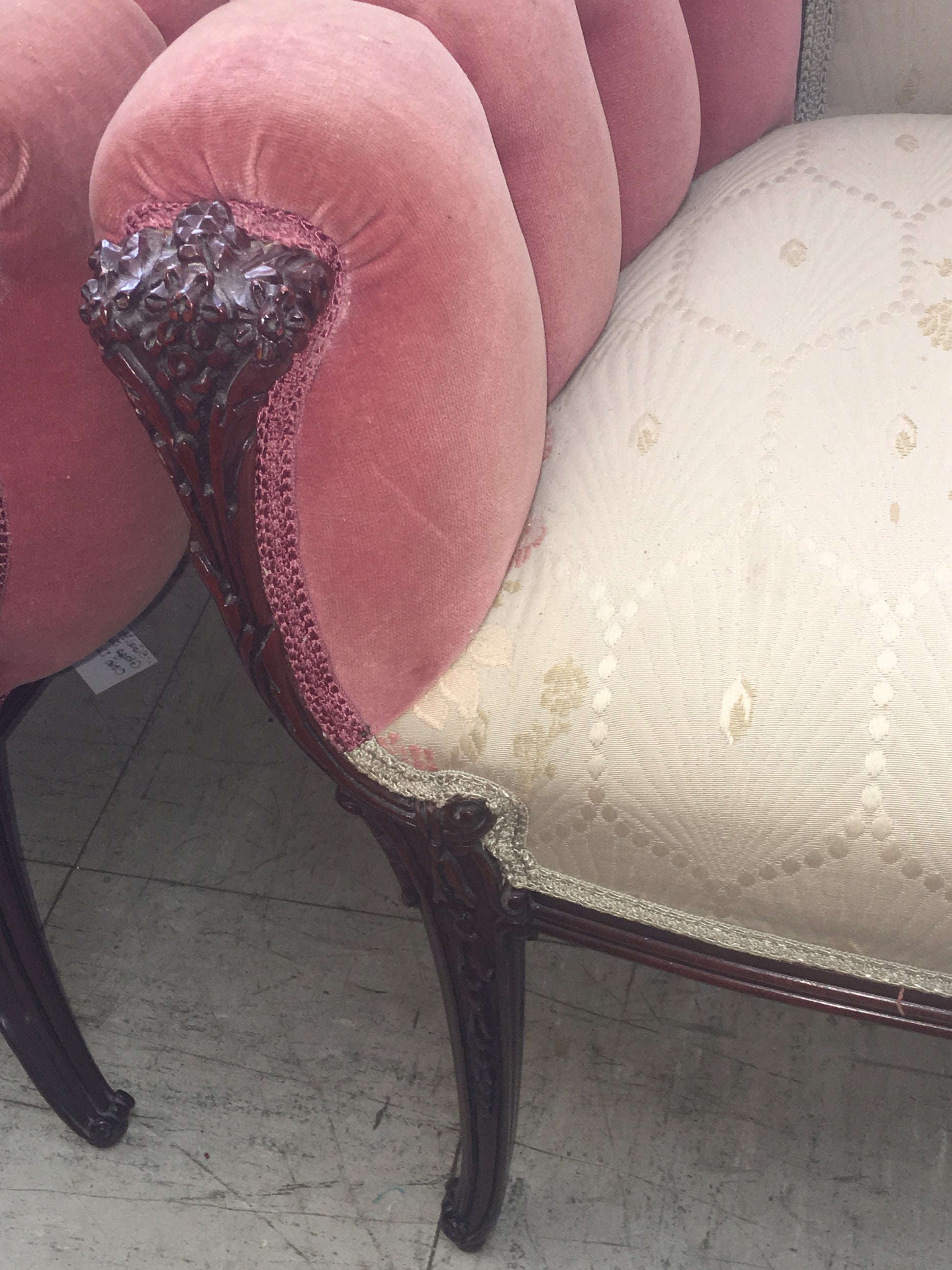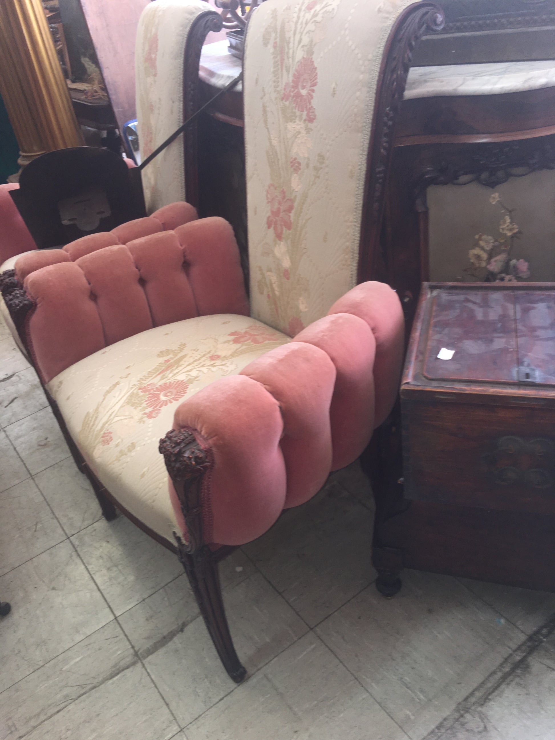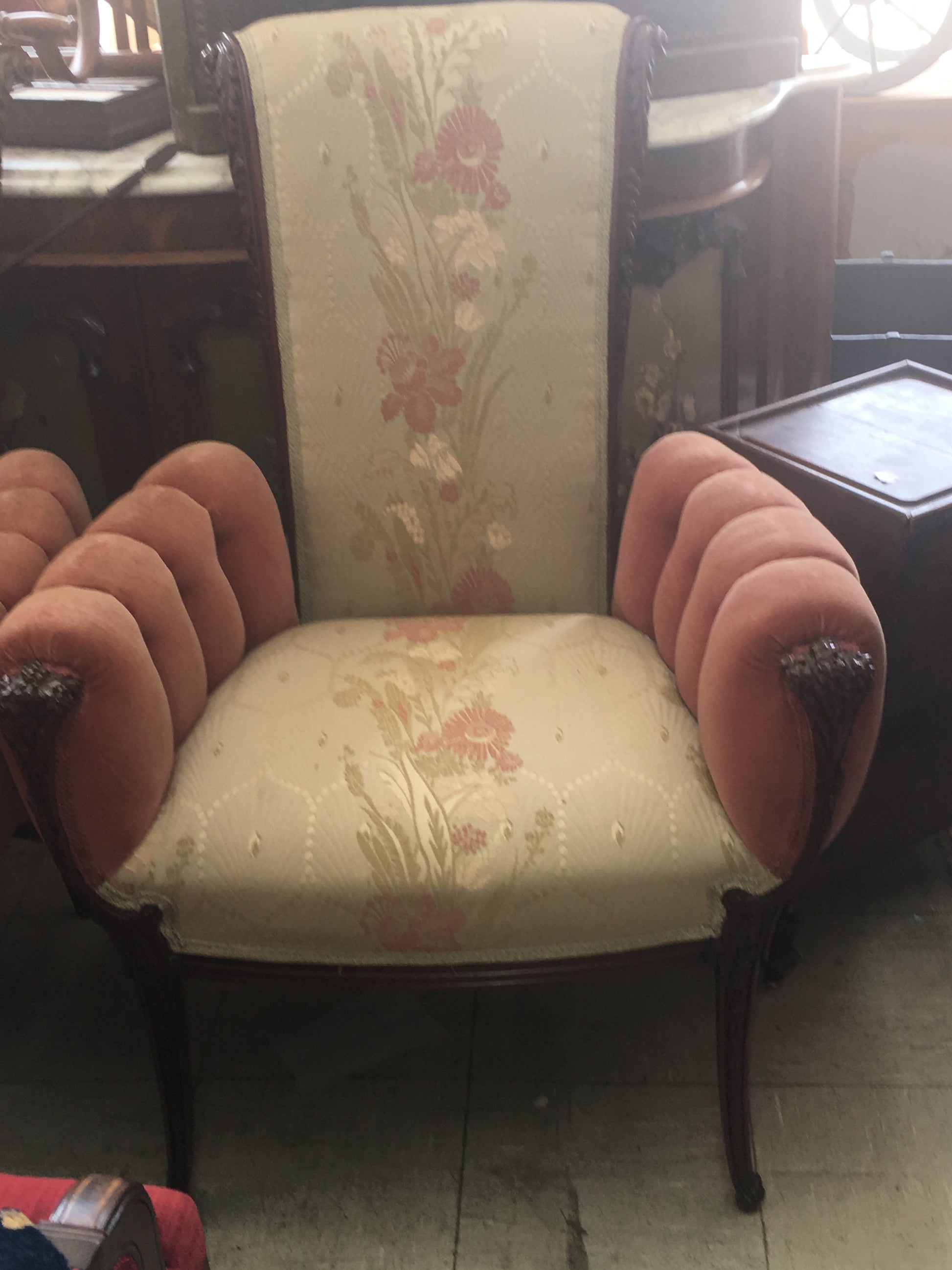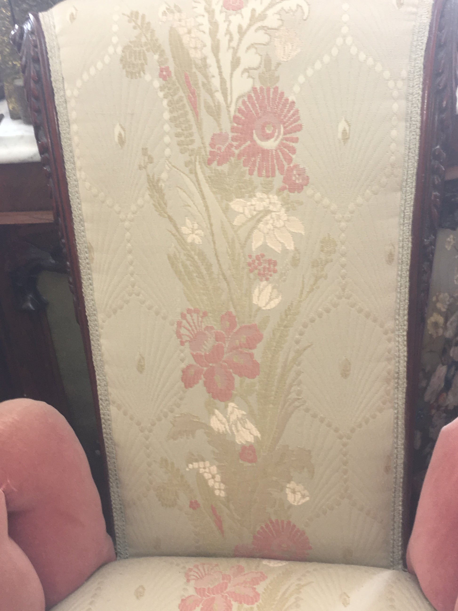 ART NOVEAU STYLE PAIR OF ARM CHAIRS FROM EARLY 1900's WITH WONDERFUL EARLY ORIGINAL UPHOLSTERY. CALL OR TEXT FOR MORE INFORMATION