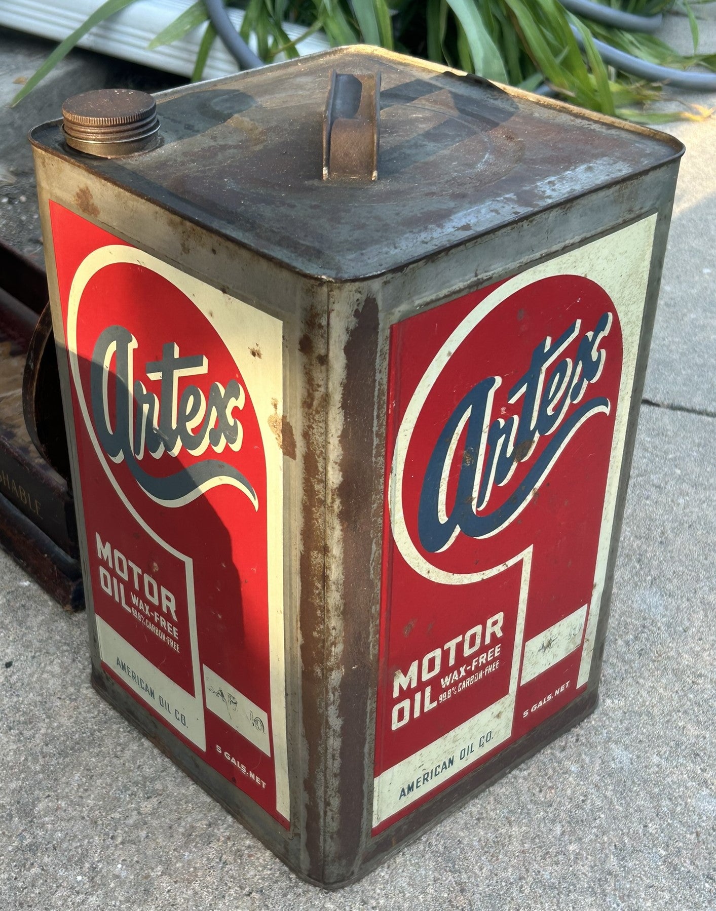 ARTEX MOTOR OIL 5 GALLON ANTIQUE TIN CONTAINER