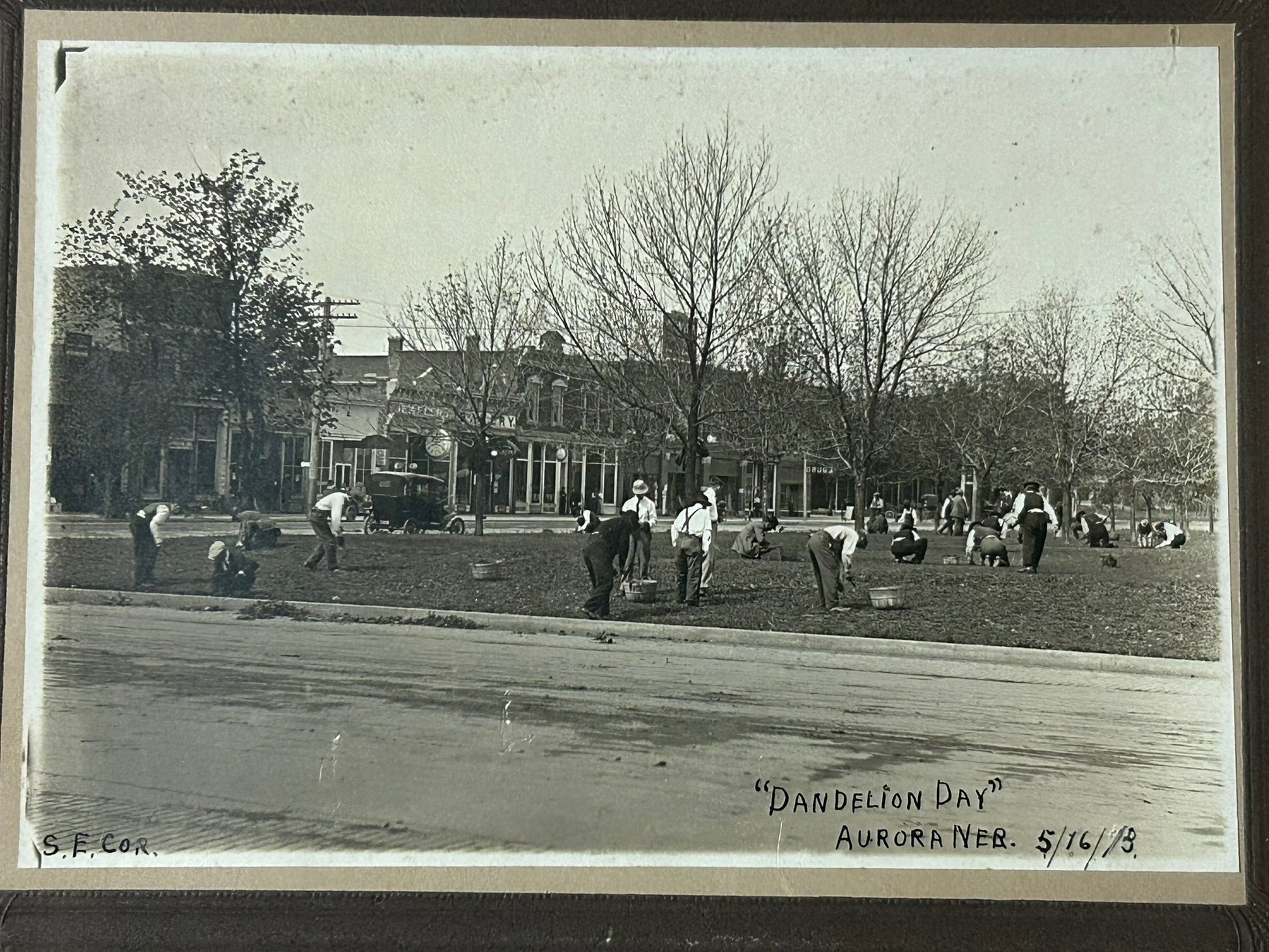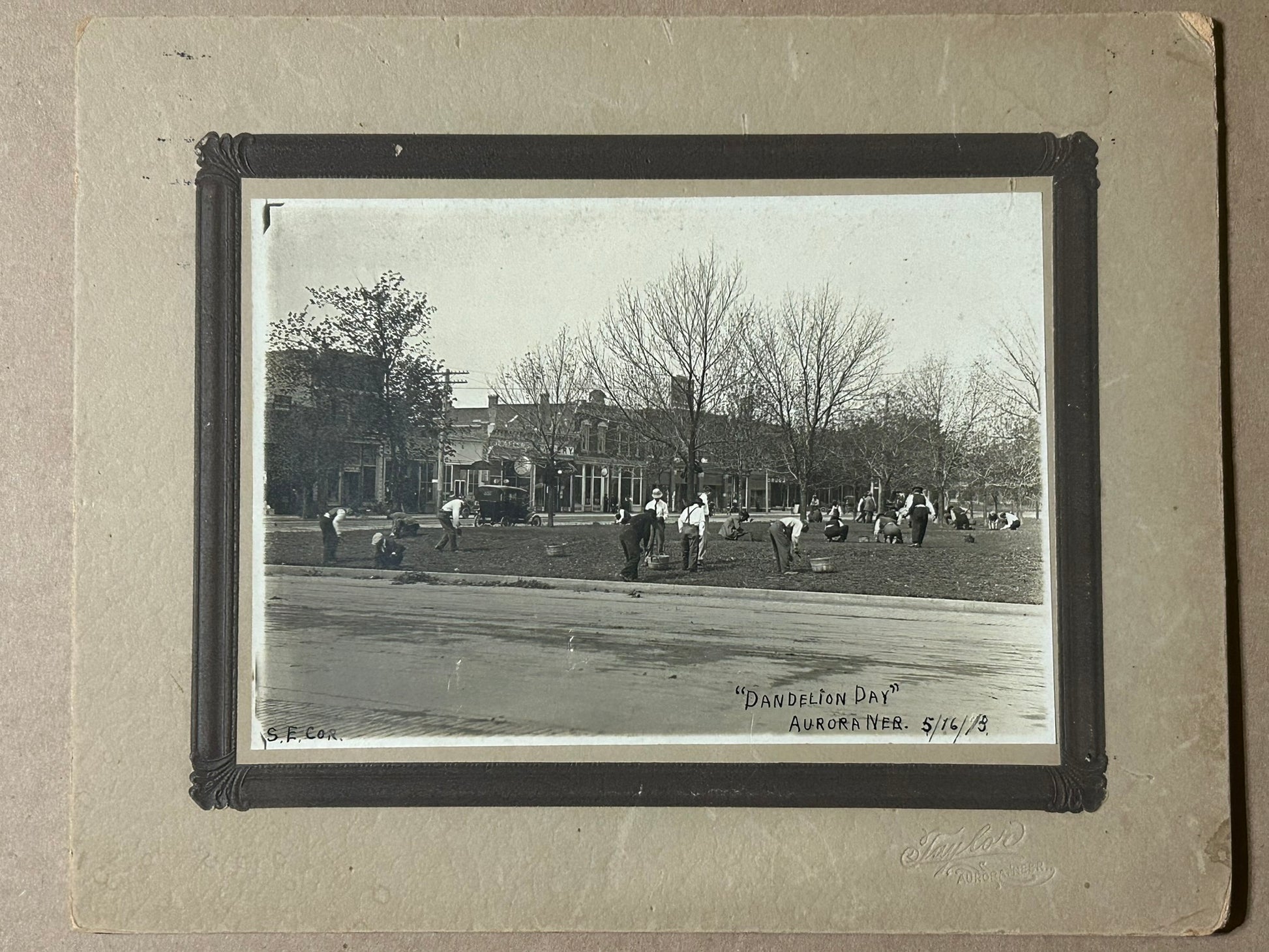 AURORA NEBRASKA EARLY TOWN SQUARE PHOTOGRAPH OF "DANDELION DAY" 8" X 10". CALL OR TEXT FOR MORE INFORMATION