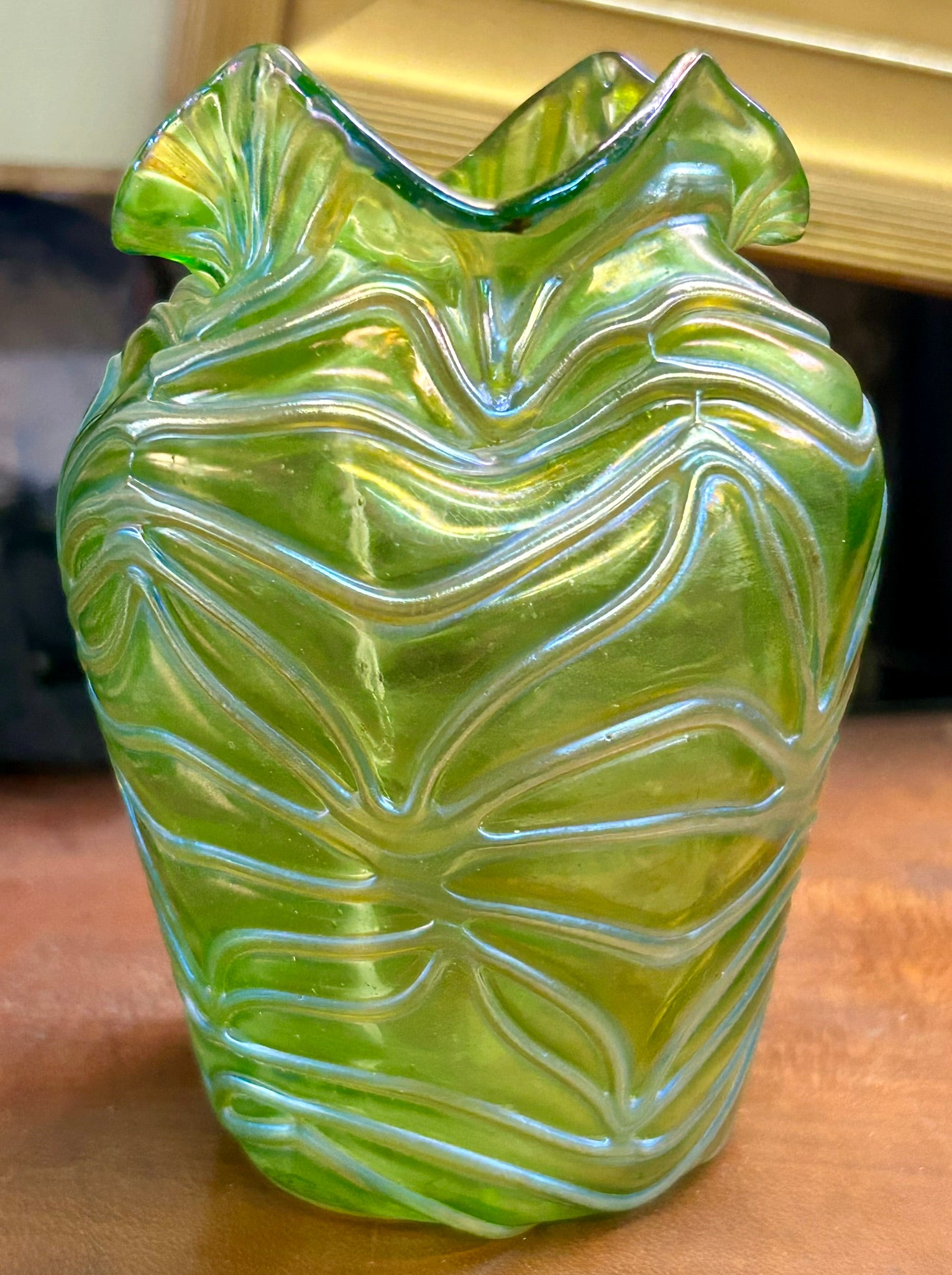 AUSTRIAN GREEN IRIDESCENT ART GLASS VASE