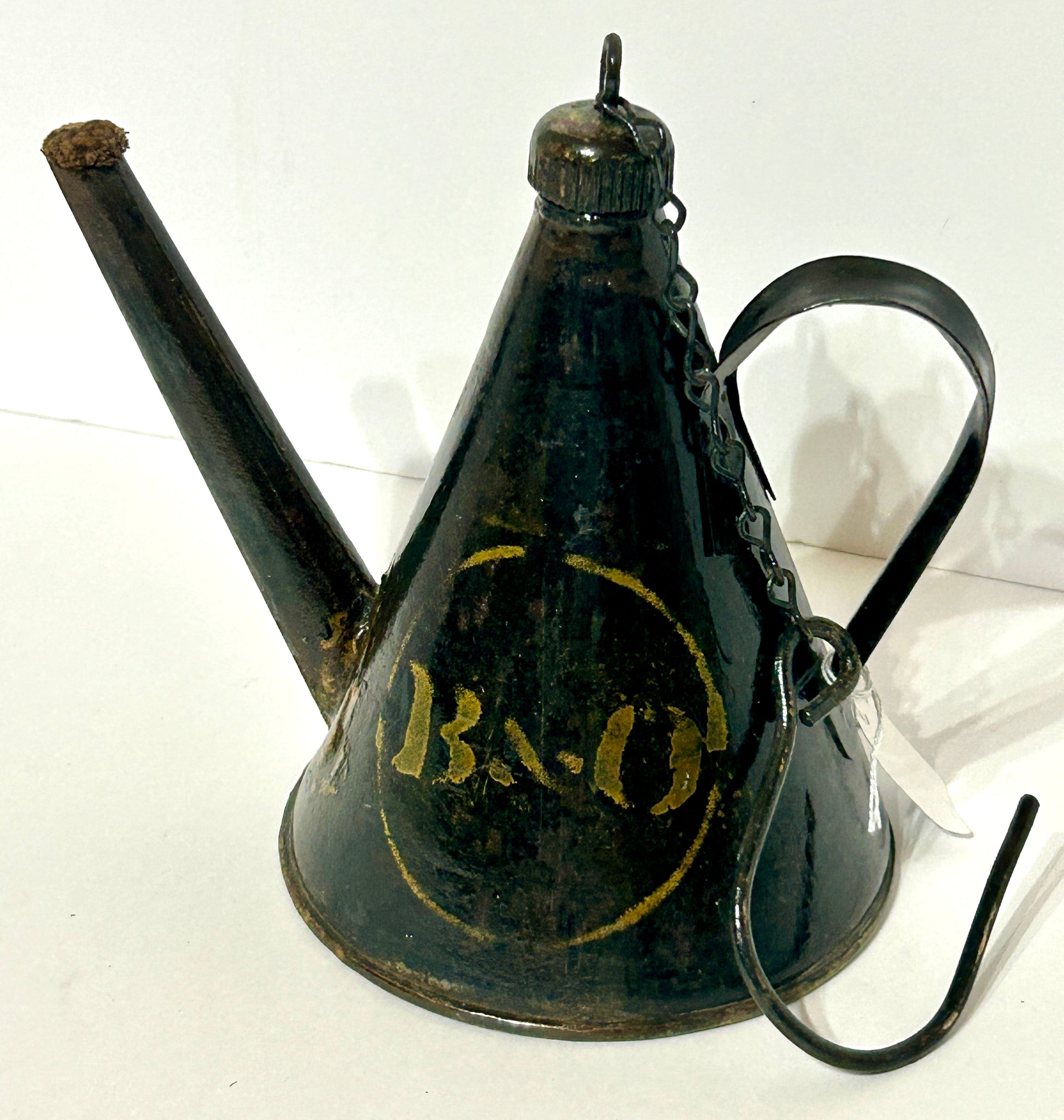 B & O RAILROAD ANTIQUE TIN TORCH LAMP 8 1/2" TALL X 8 1/2" WIDE. SHIPPING IS EXTRA SO CALL OR TEXT TO FIND OUT HOW MUCH SHIPPING WILL COST