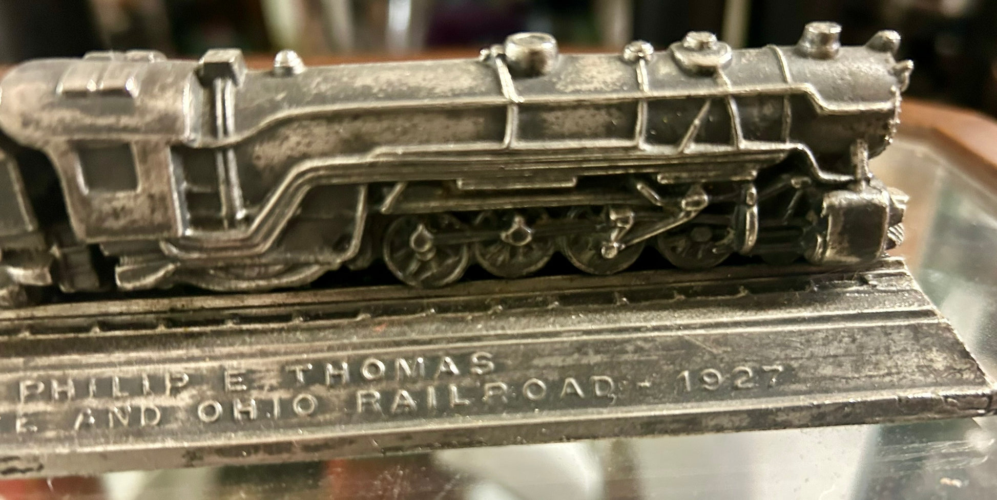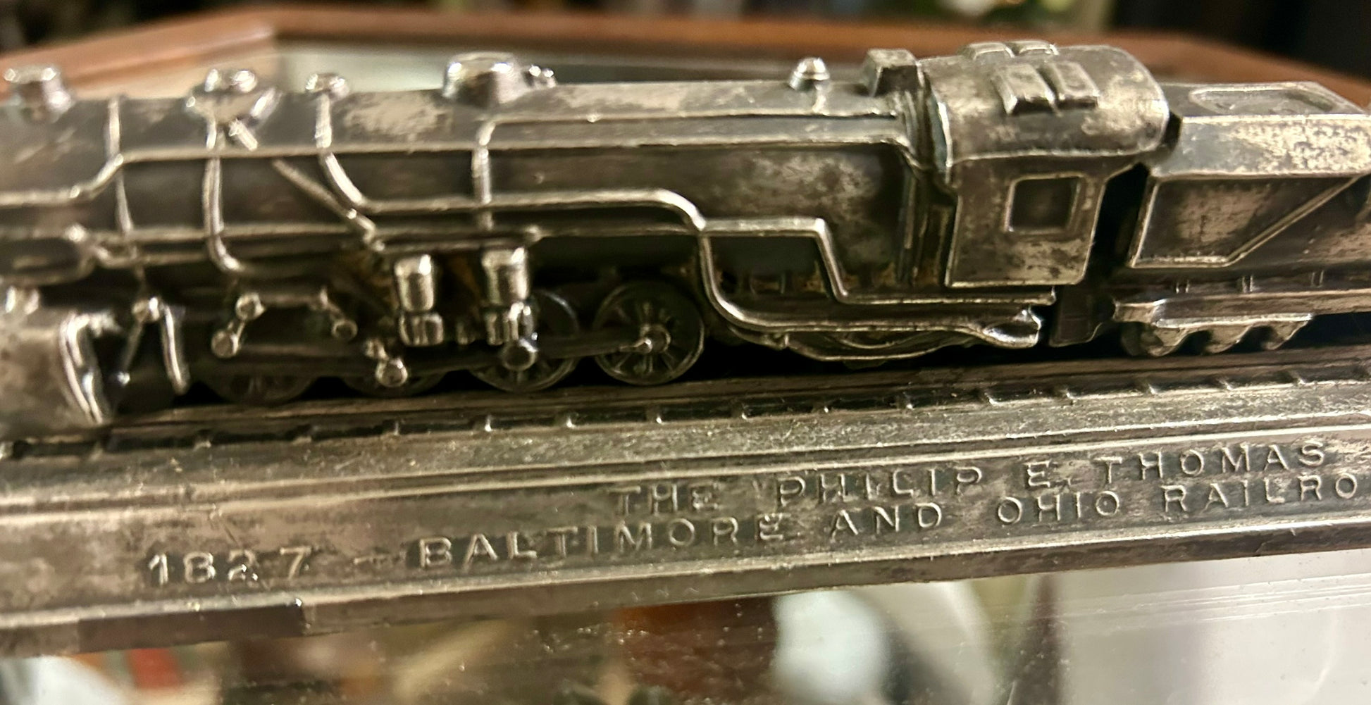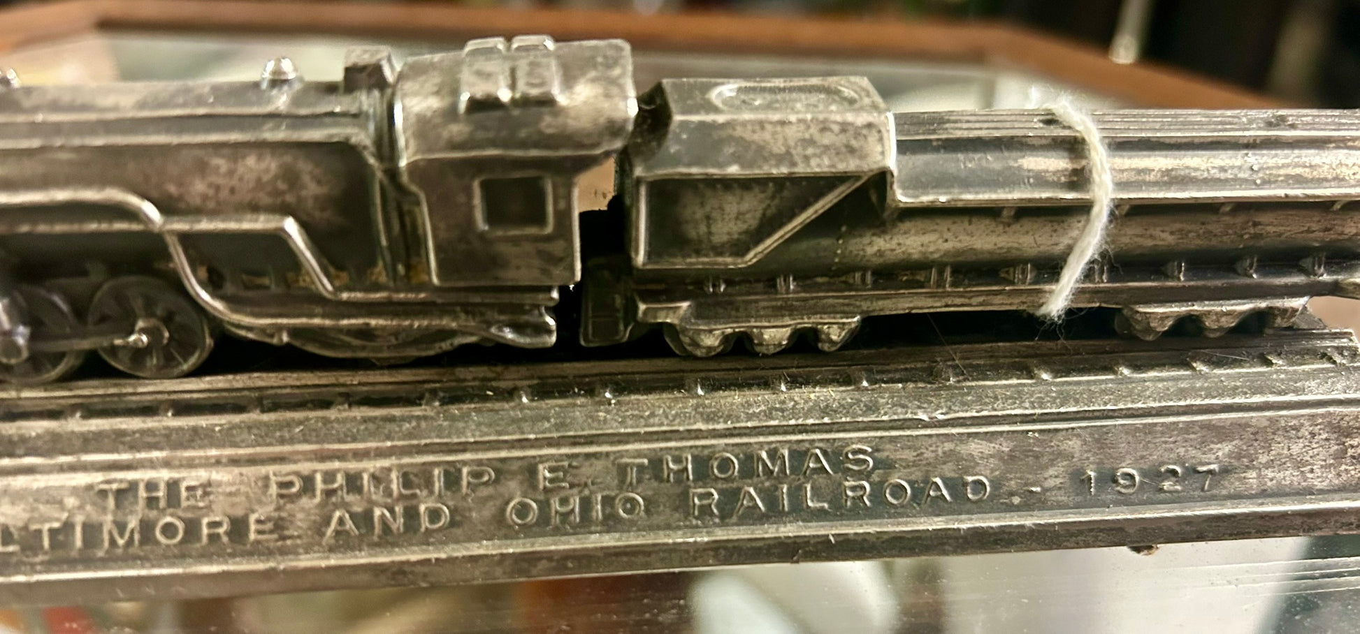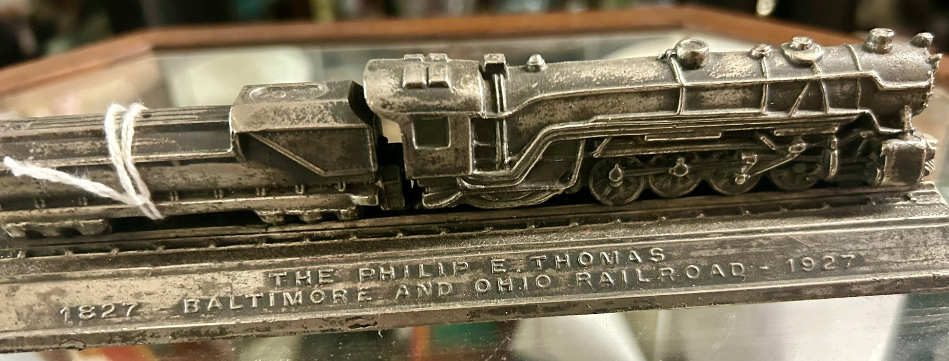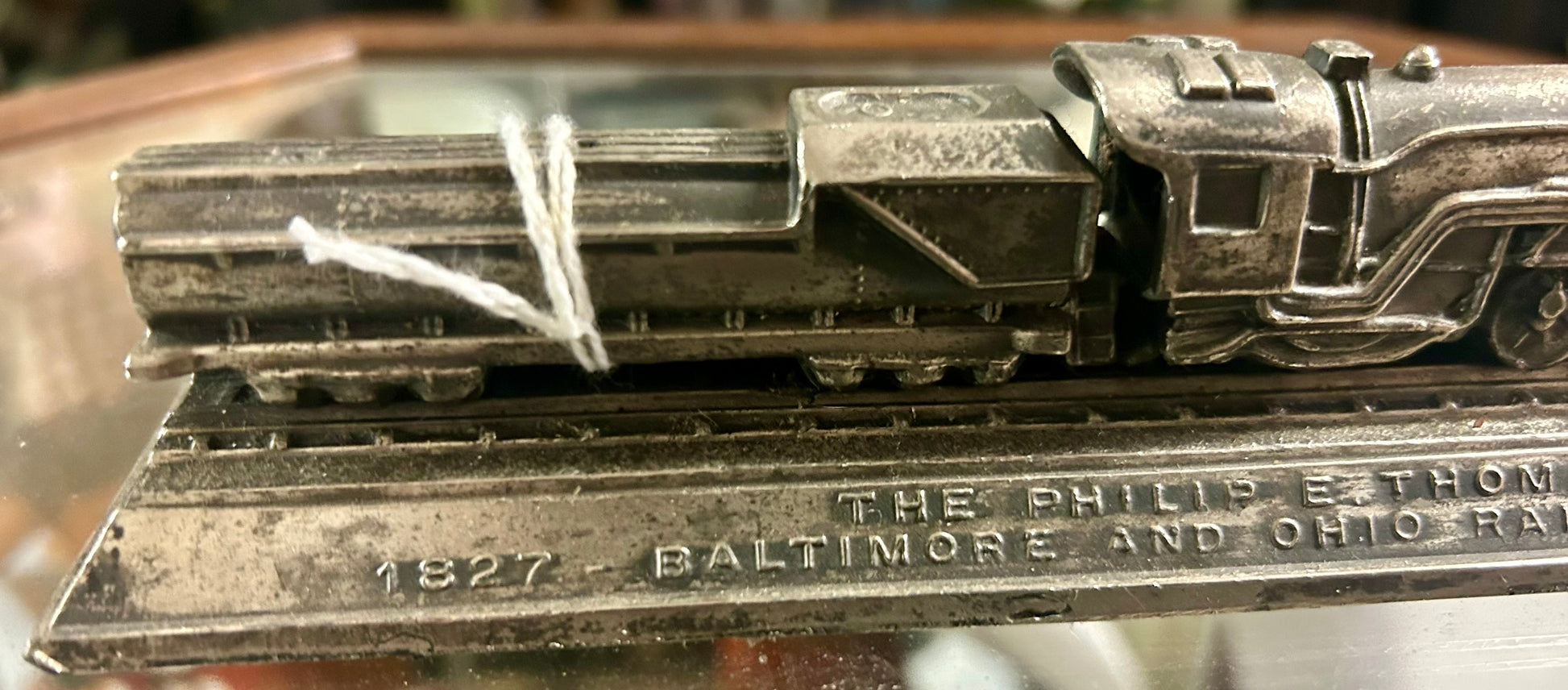 BALTIMORE & OHIO RAILROAD ADVERTISING FIGURAL METAL TRAIN PAPERWEIGHT 8" LONG. CALL OR TEXT FOR MORE INFORMATION