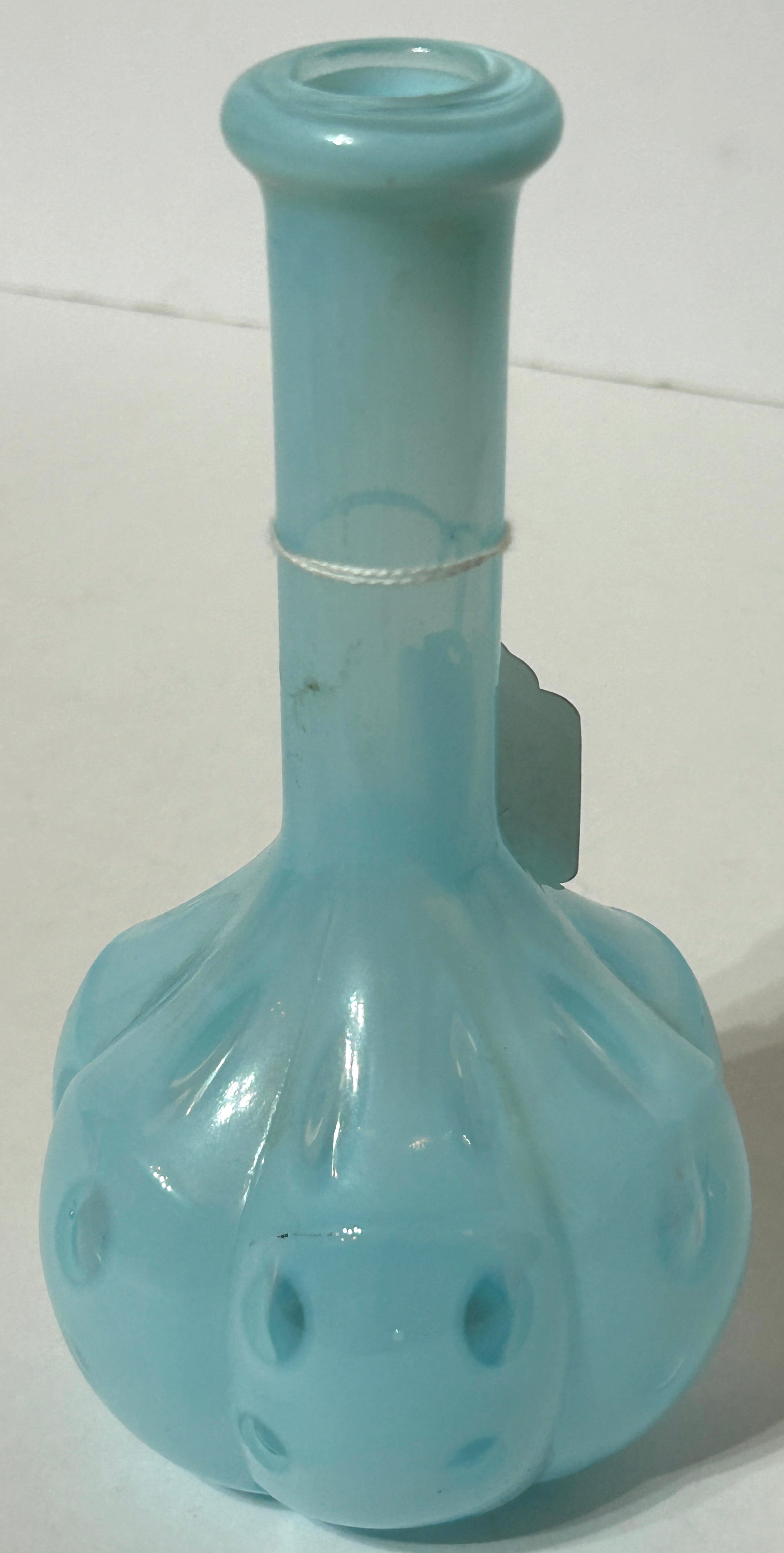 BARBER BOTTLE IN BLUE OPALESCENT COIN DOT DESIGN
