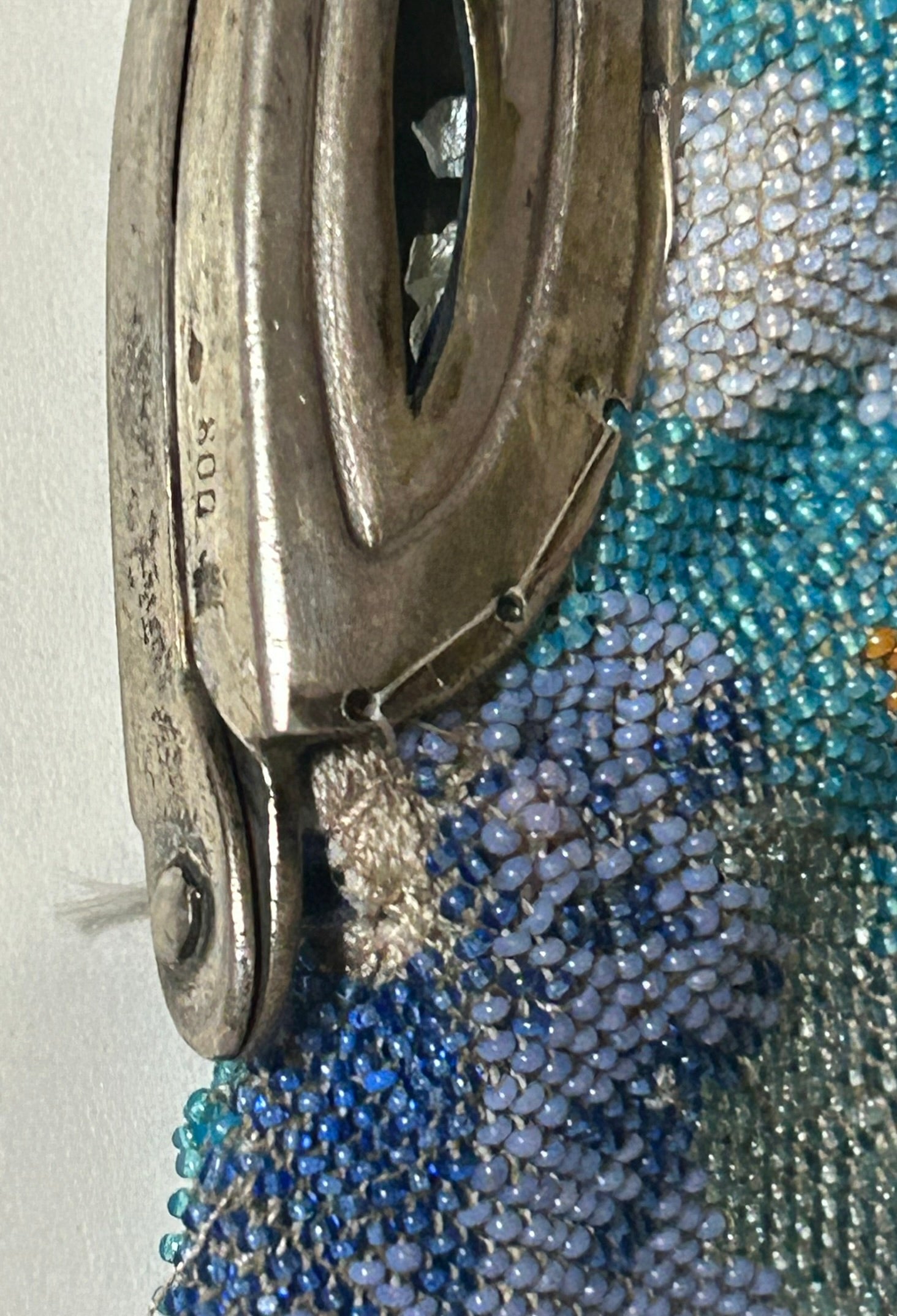 BEADED ANTIQUE LARGE PURSE WITH FIGURES AND SILVER FIGURAL FRAME