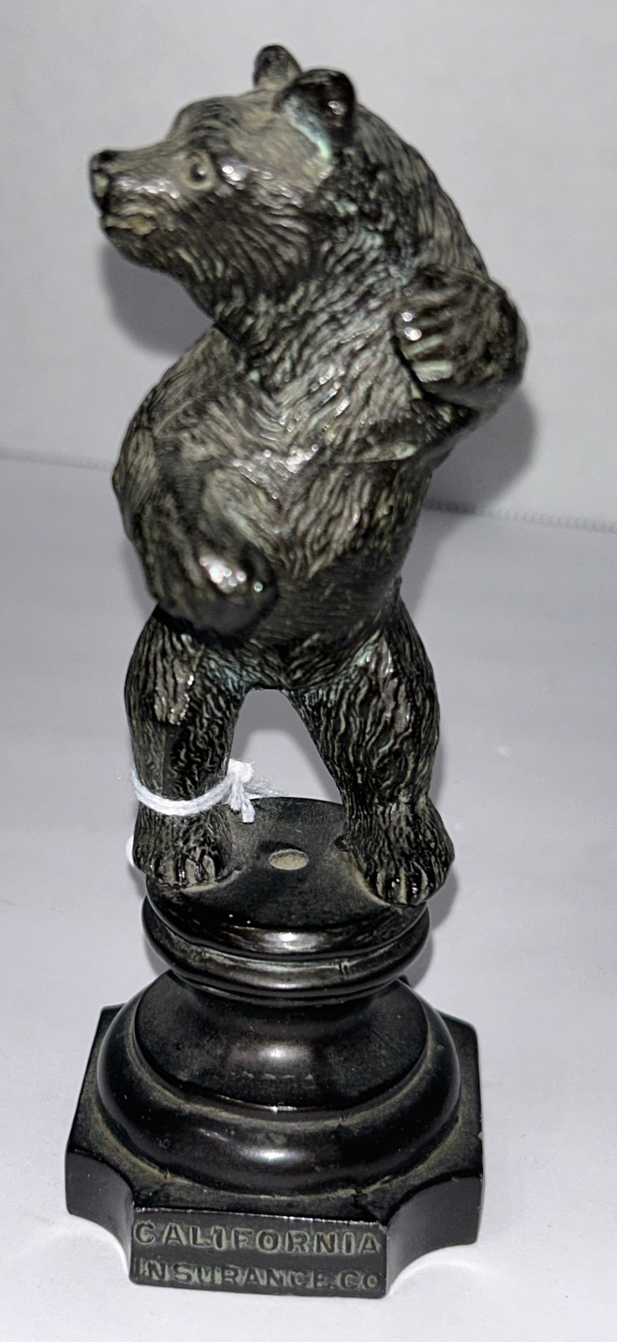 FIGURAL BEAR ADVERTISING STATUE PAPERWEIGHT FOR CALFORNIA INSURANCE CO. 5 1/2" TALL. CALL OR TEXT FOR MORE INFORMATION