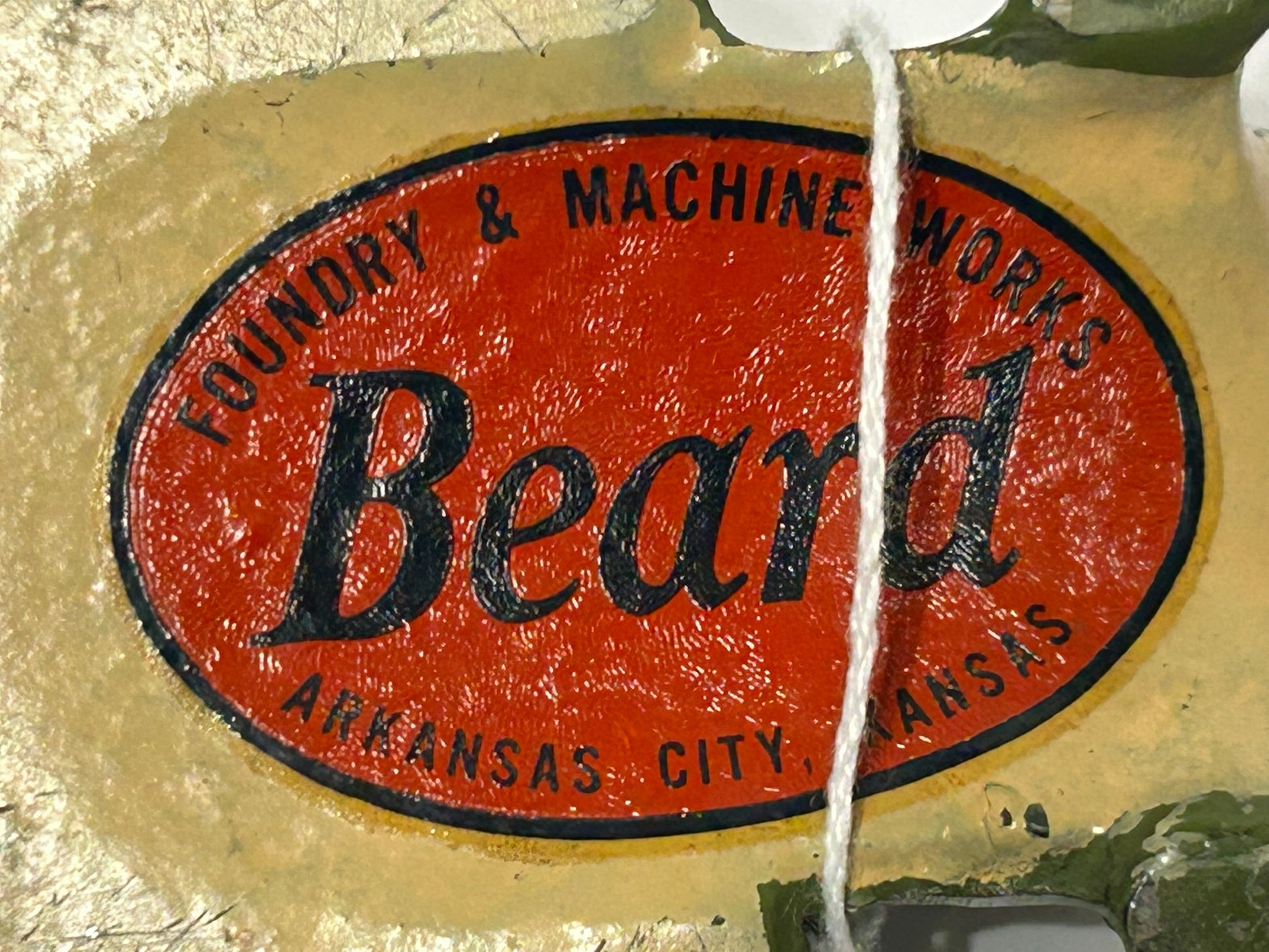 BEARD FOUNDRY CAST IRON ADVERTISING FROG PAPERWEIGHT 3 1/2" LONG X 2" TALL. CALL OR TEXT FOR MORE INFORMATION