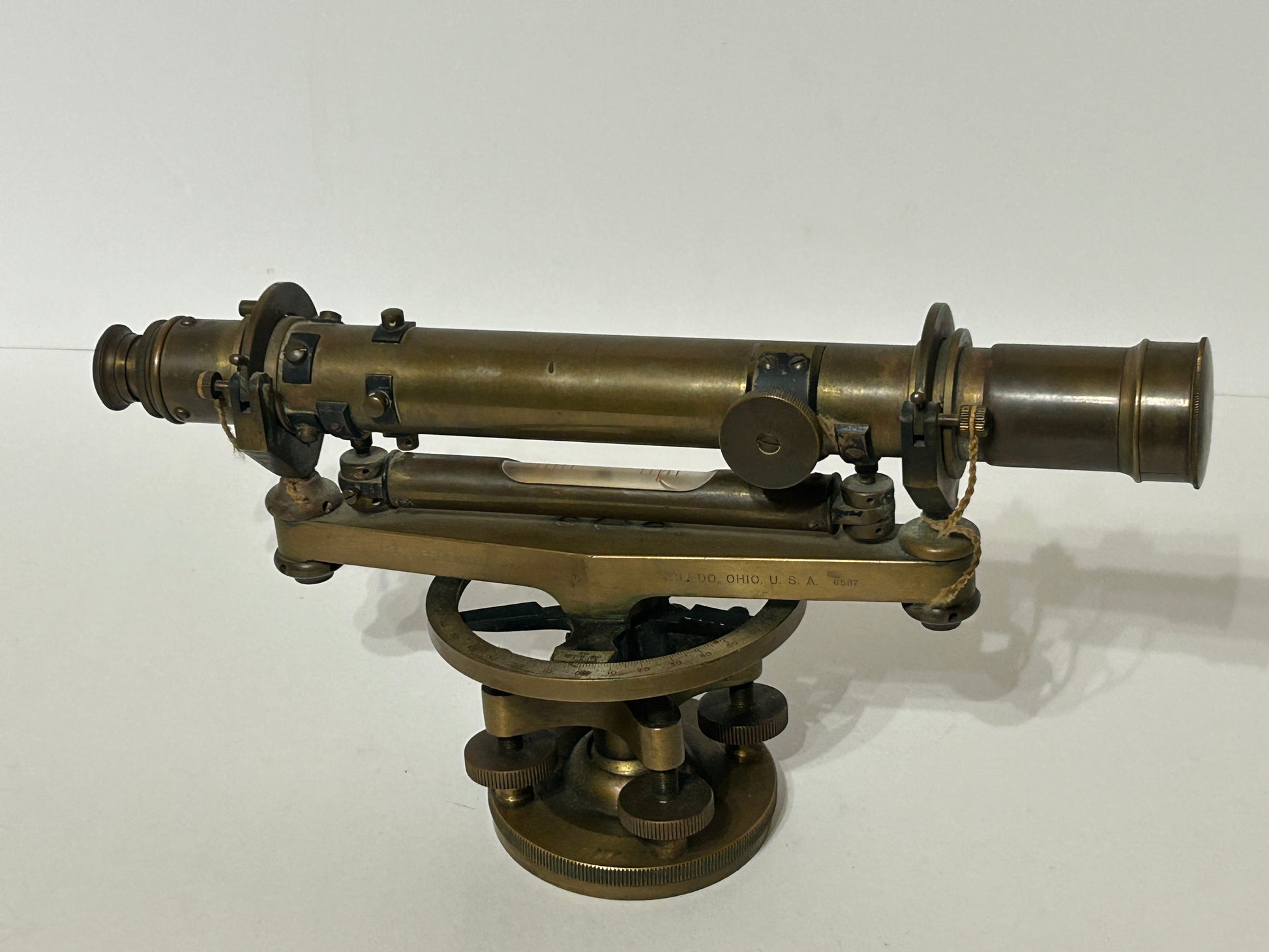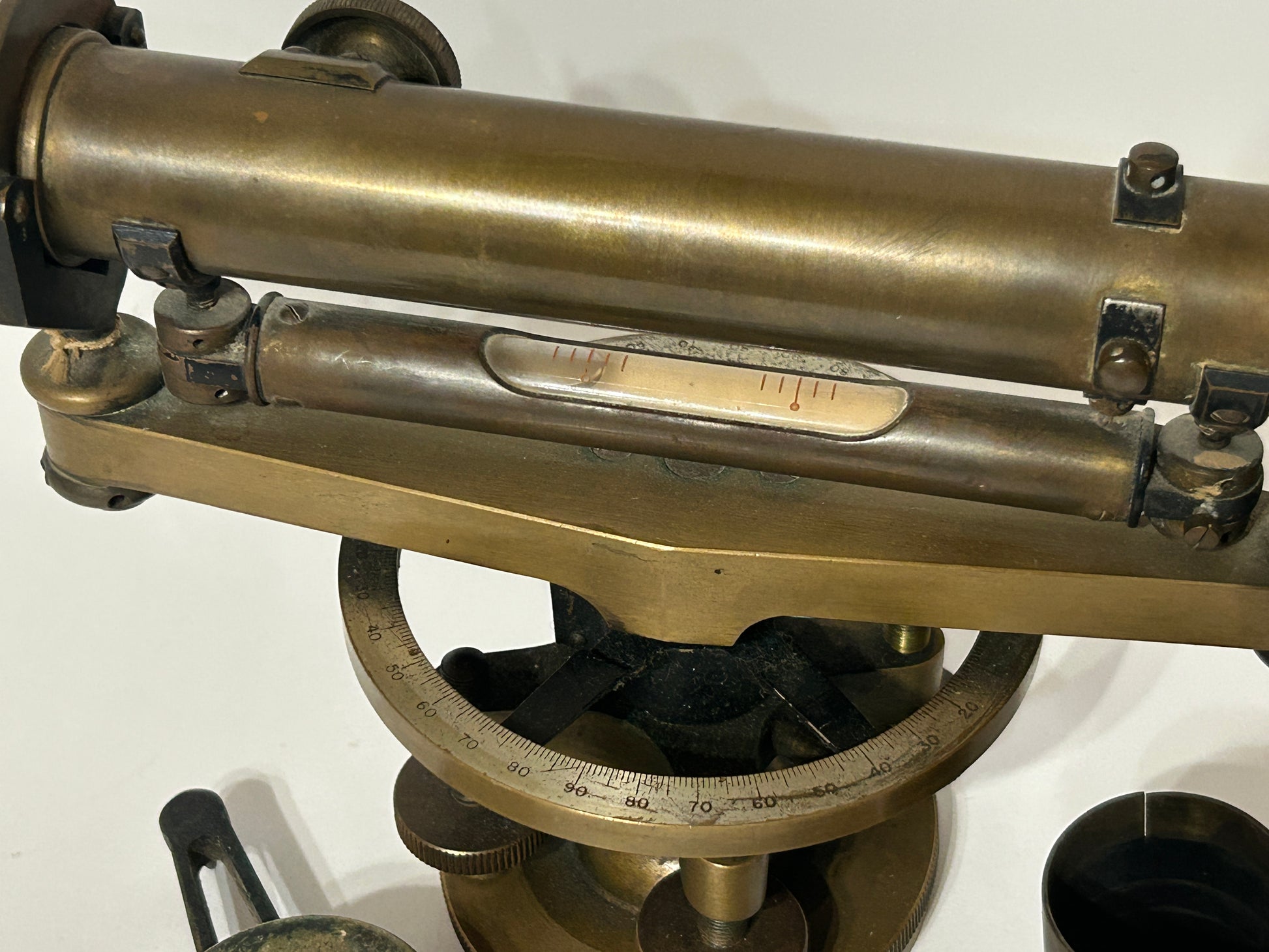 ANTIQUE L. BECKMAN BRASS SURVEYING TRANSIT WITH BOX - TRANSIT ONLY 12 1/4" LONG X 6 1/2" TALL. SHIPPING IS EXTRA SO CALL OR TEXT TO FIND OUT HOW MUCH SHIPPING WILL COST