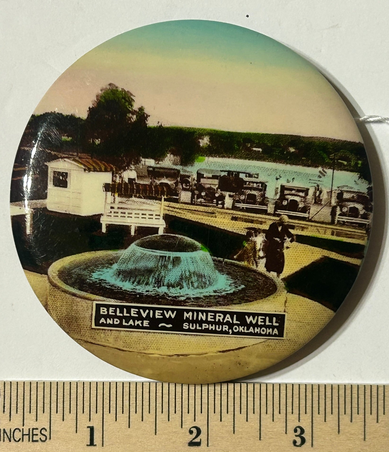 BELLEVIEW MINERAL WELL, SULPHUR, OKLAHOMA LARGE ADVERTISING MIRROR