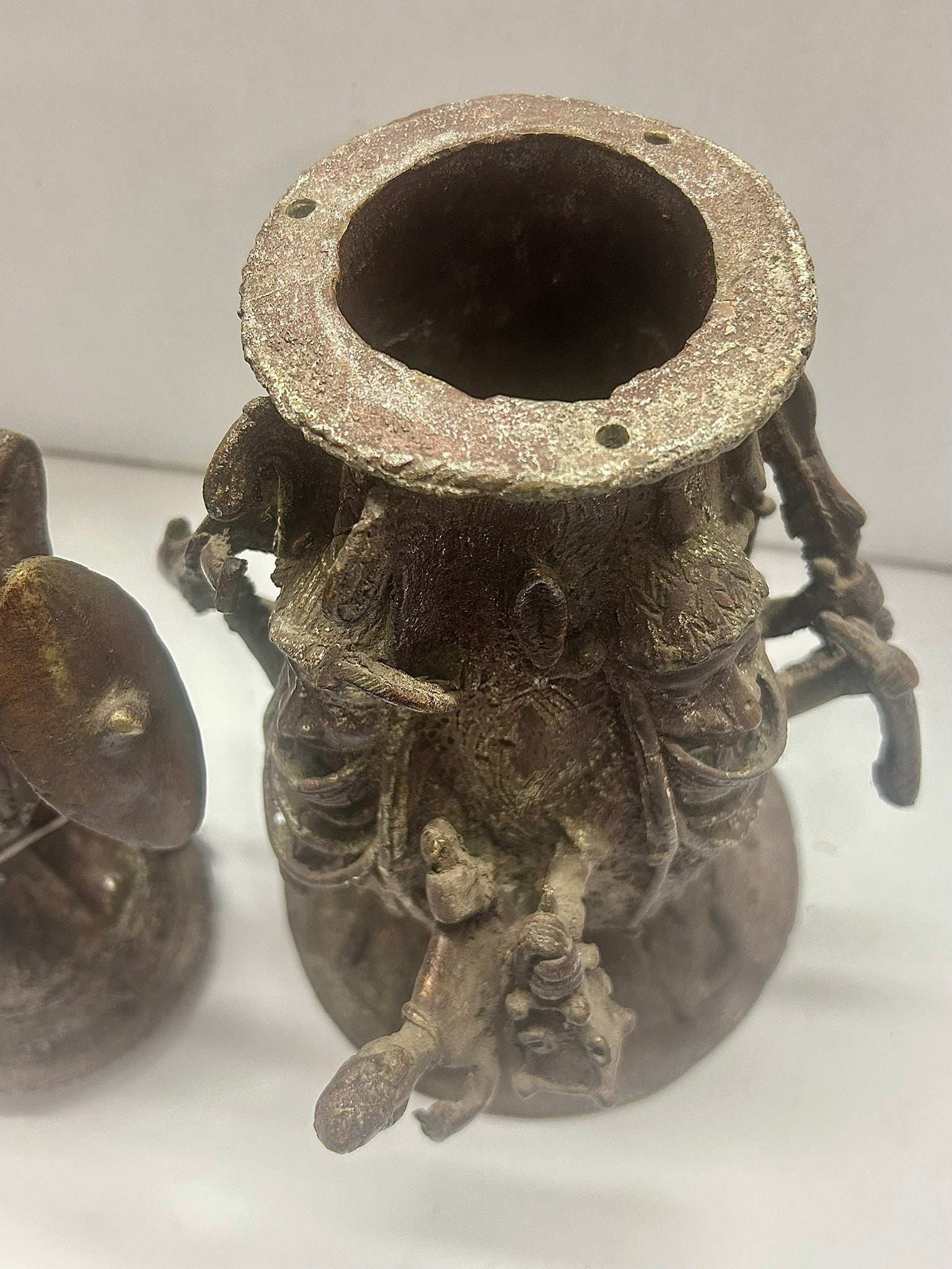 BENIN? AFRICAN BRONZE FIGURES VESSEL