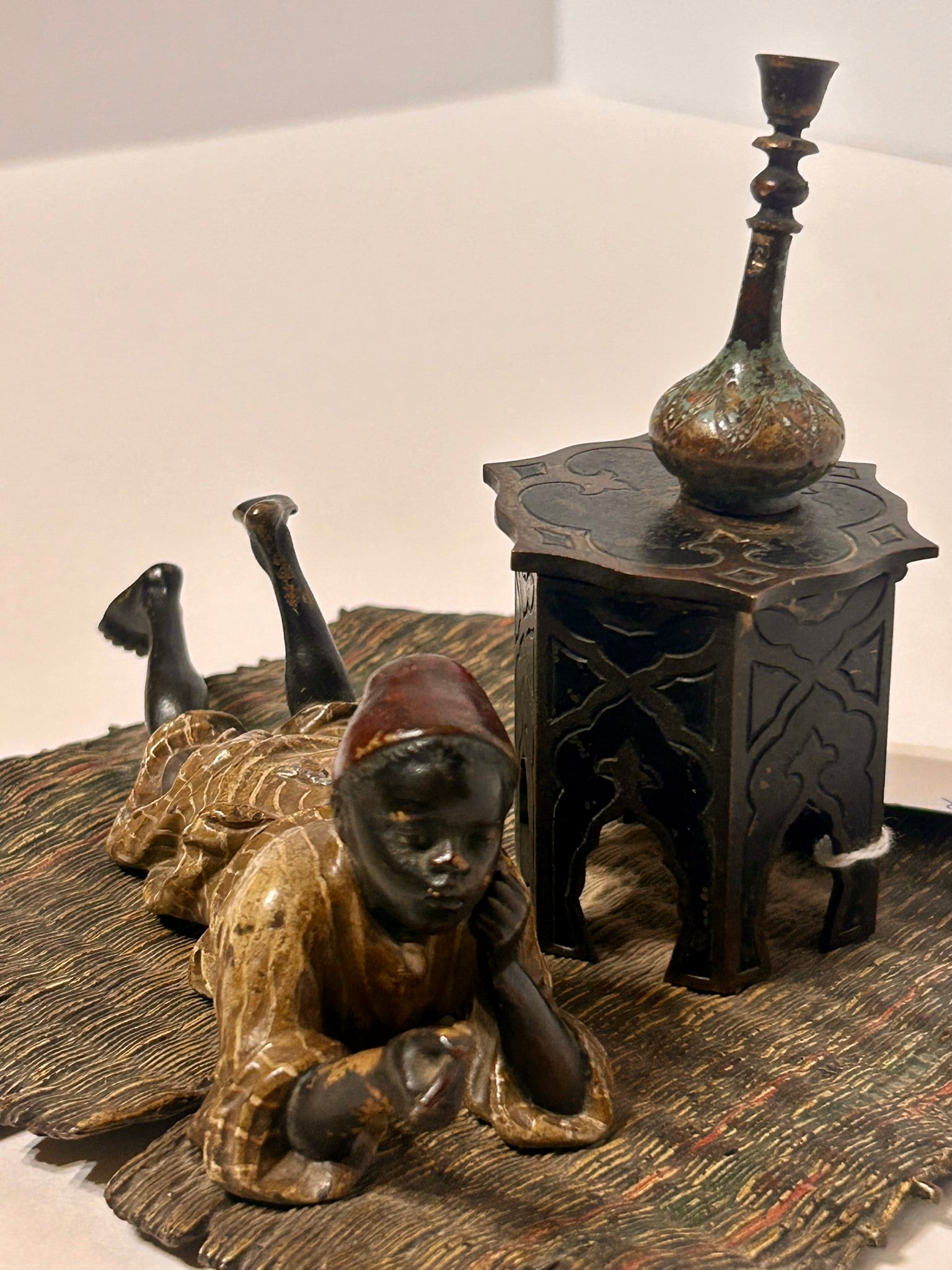 BERGMAN VIENNA BRONZE OF BOY ON RUG