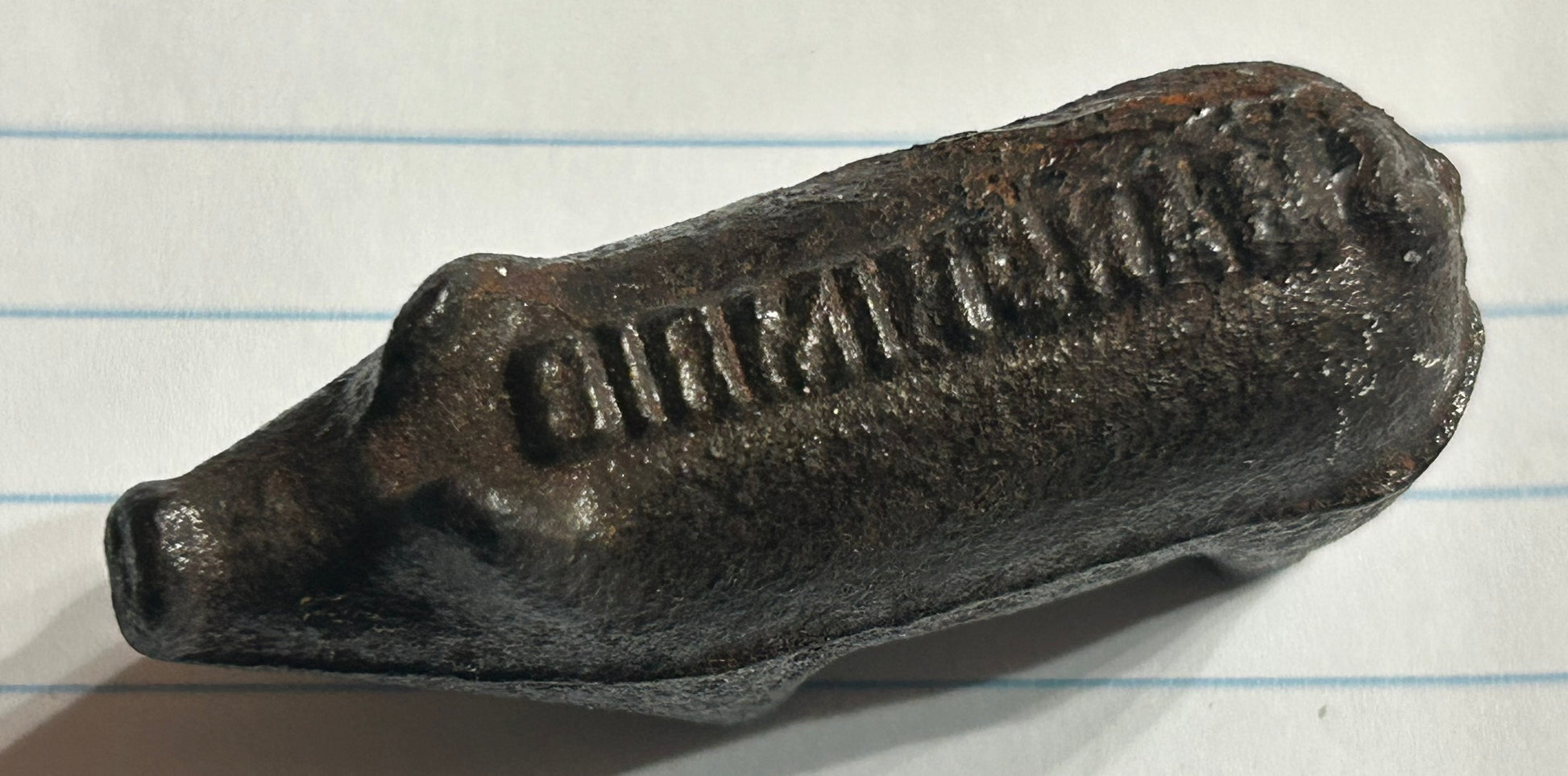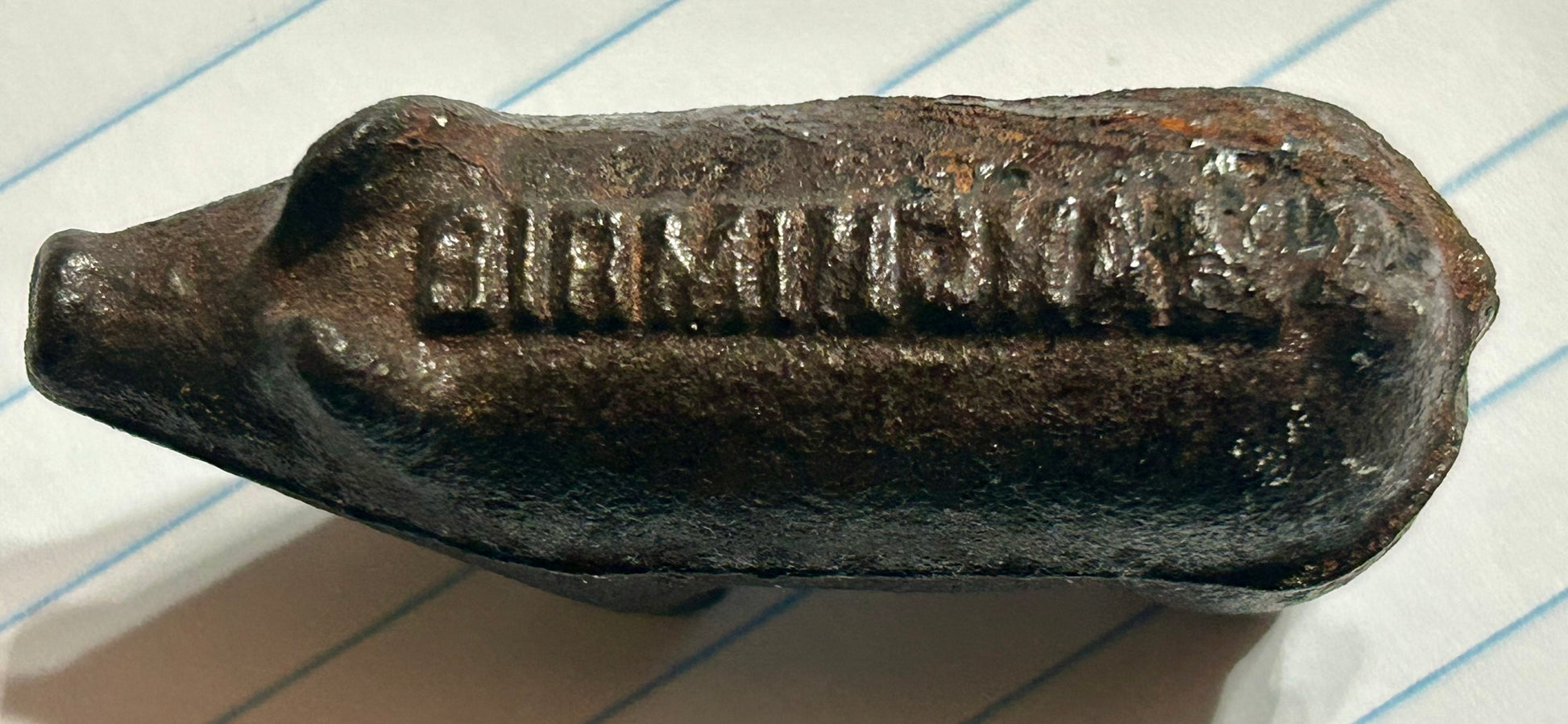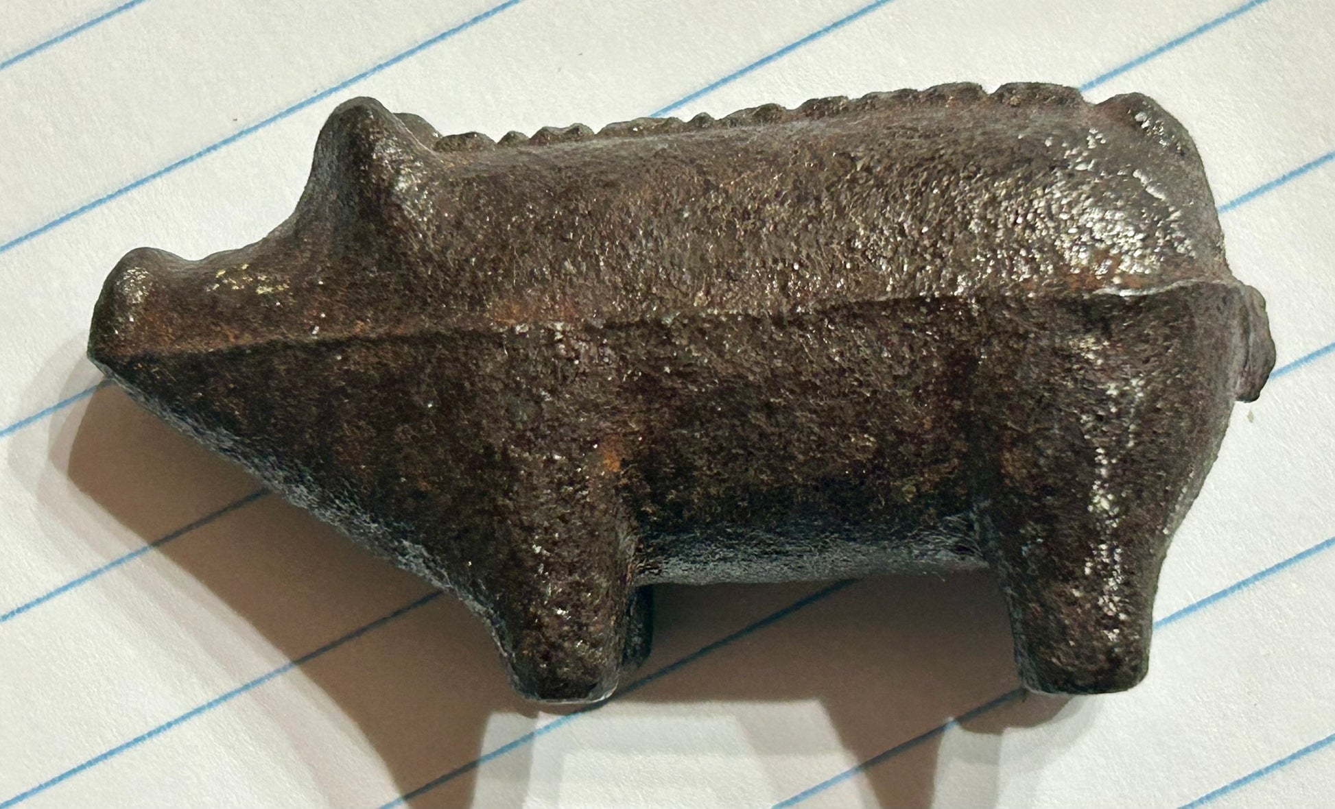 ADVERTISING FIGURAL PIG PAPERWEIGHT FOR BIRMINGHAM STOVE AND RANGE COMPANY 2" LONG. CALL OR TEXT FOR MORE INFORMATION