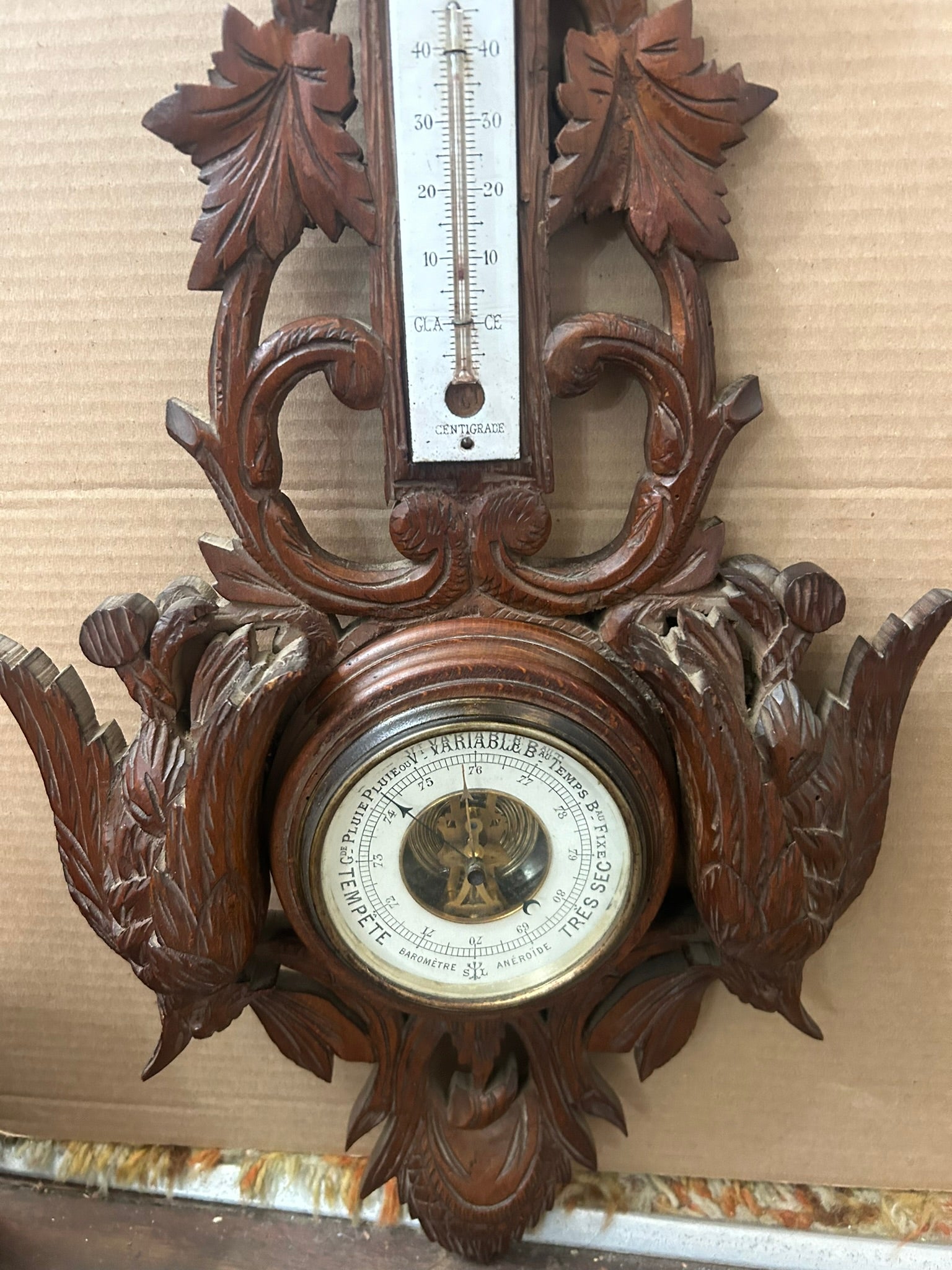 BLACK FOREST CARVED WALL BAROMETER 23" TALL. CALL OR TEXT FOR MORE INFORMATION