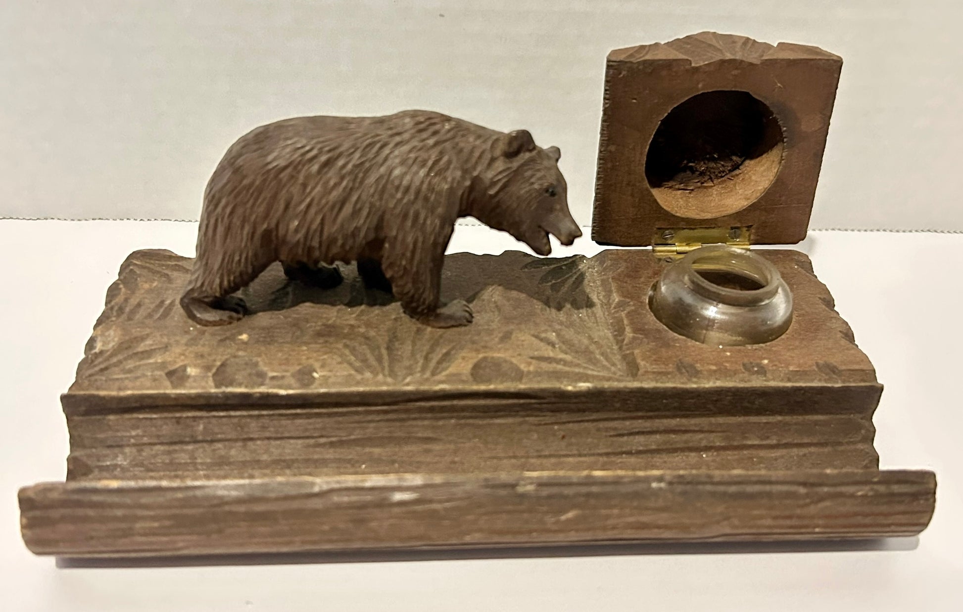 BLACK FOREST CARVED FIGURAL BEAR ANTIQUE INKWELL