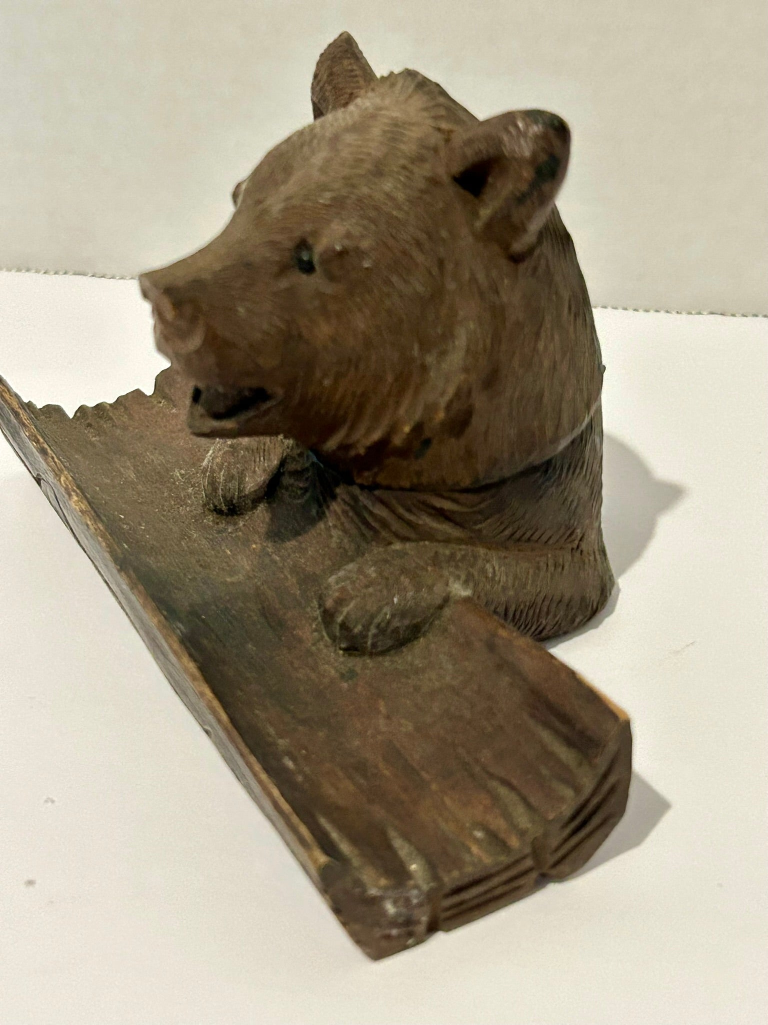BLACK FOREST CARVED BEAR ANTIQUE INKWELL WITH PEN TRAY 5" LONG X 3 1/2" TALL. CALL OR TEXT FOR MORE INFORMATION