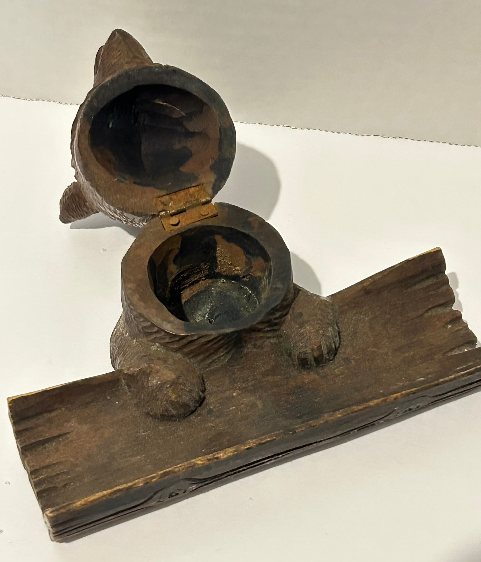 BLACK FOREST CARVED BEAR ANTIQUE INKWELL WITH PEN TRAY