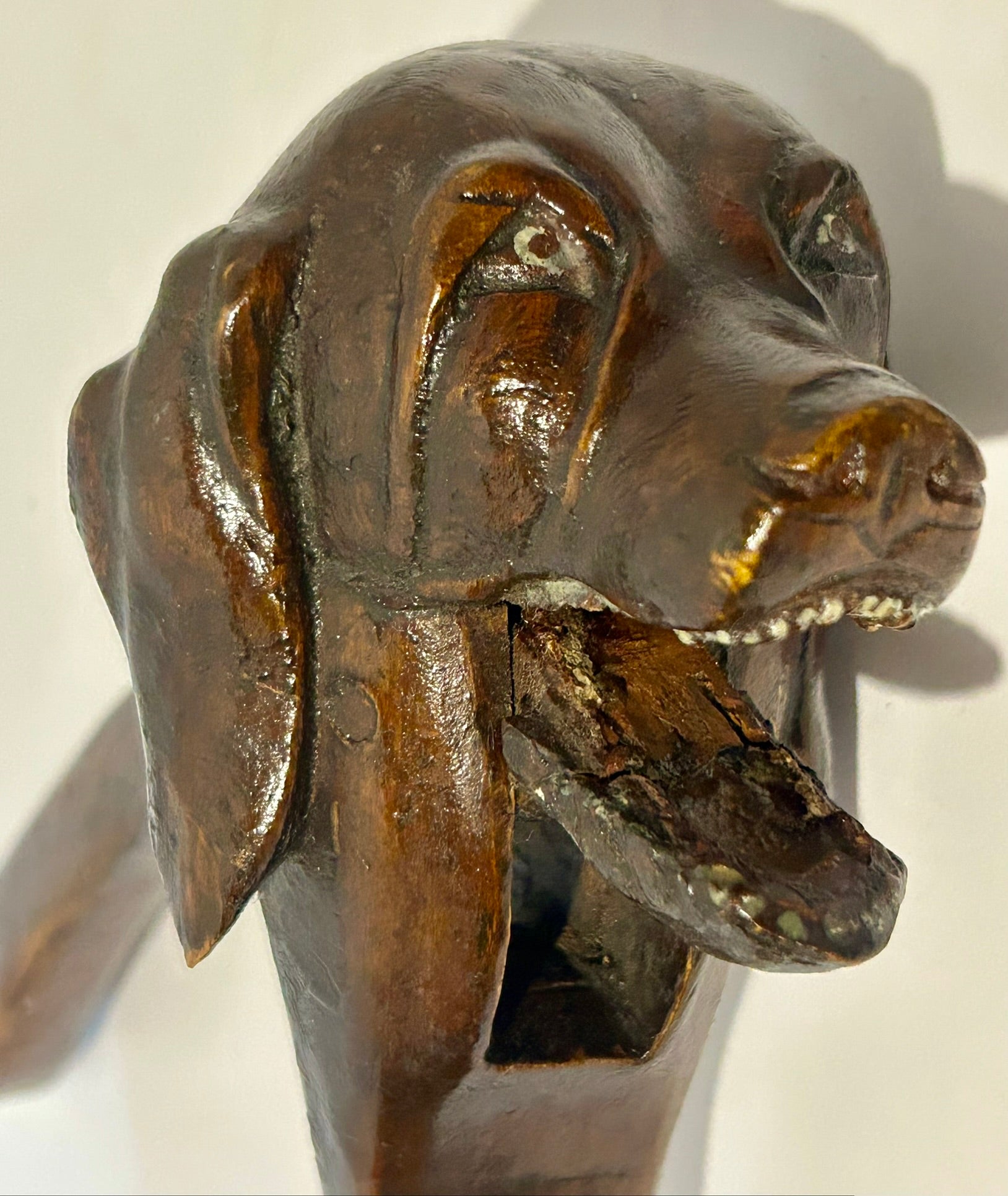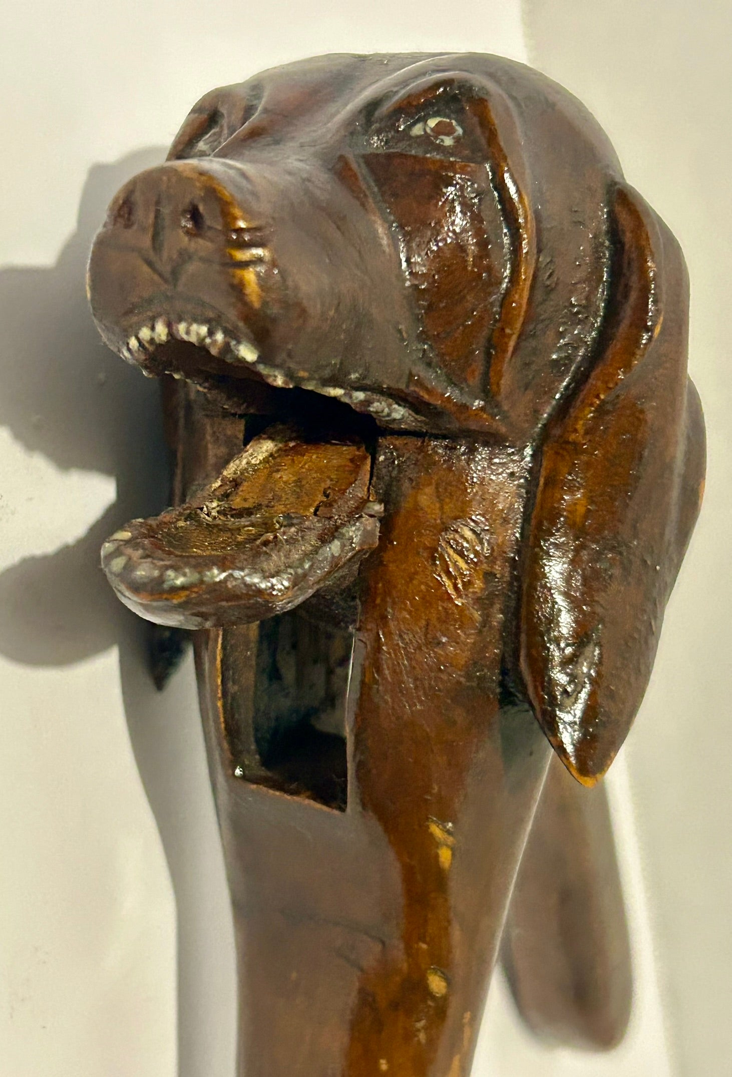 BLACK FOREST CARVED DOG ANTIQUE NUT CRACKER 8 1/2" LONG. CALL OR TEXT FOR MORE INFORMATION