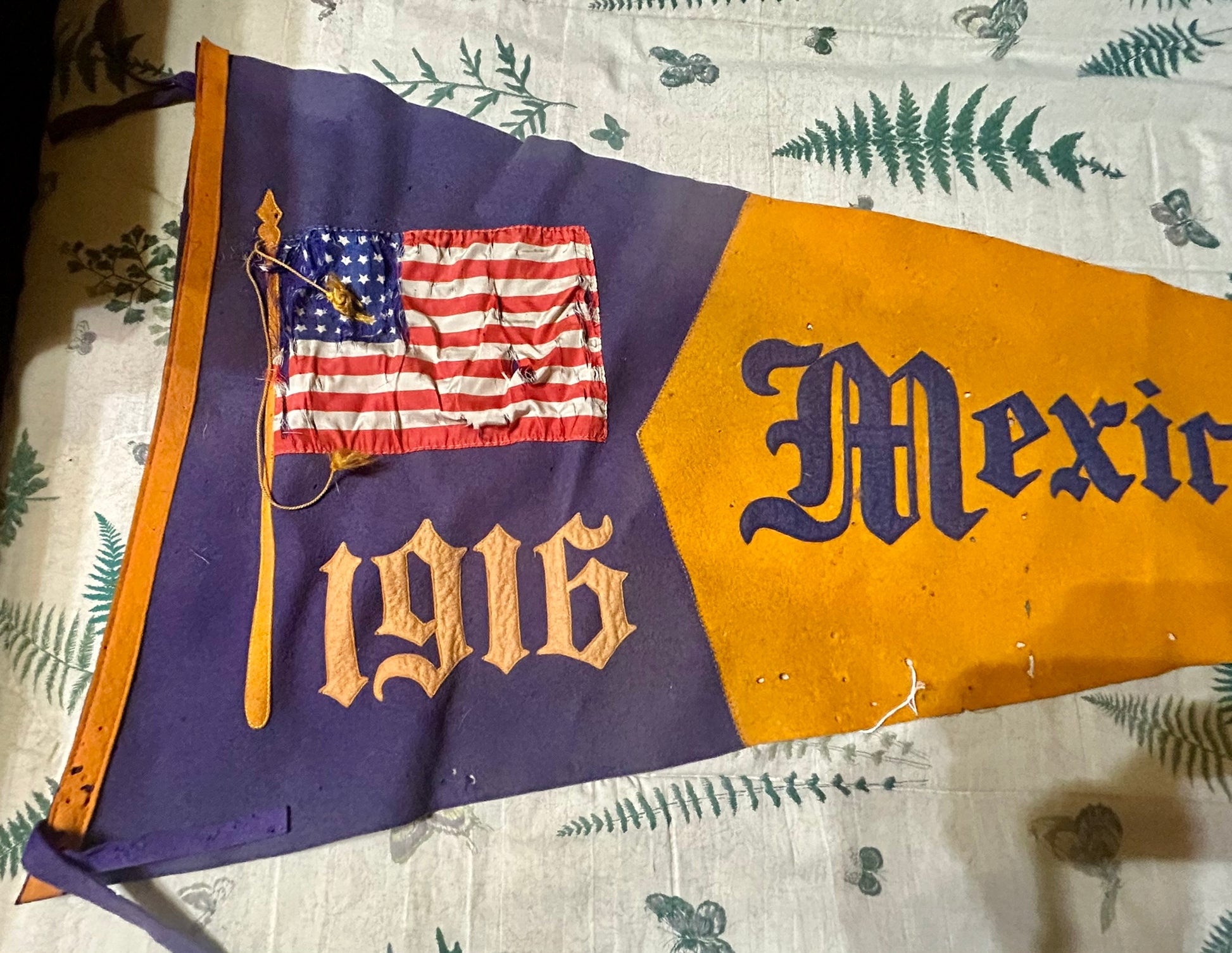 MEXICAN BOARDER SERVICE 1916 FELT PENDANT WITH NUMEROUS DAMAGES BUT A VERY RARE ITEM 35" X 22"