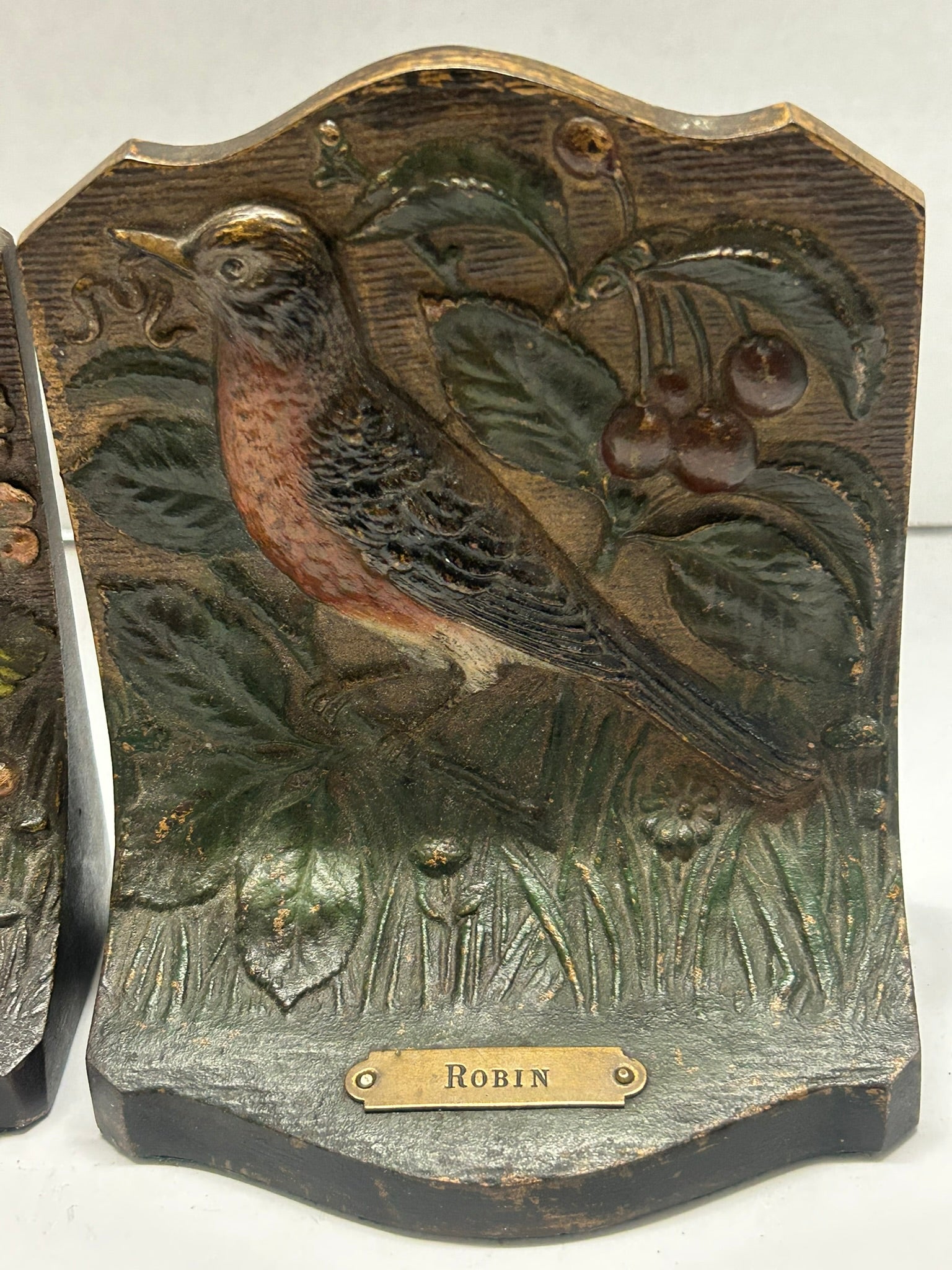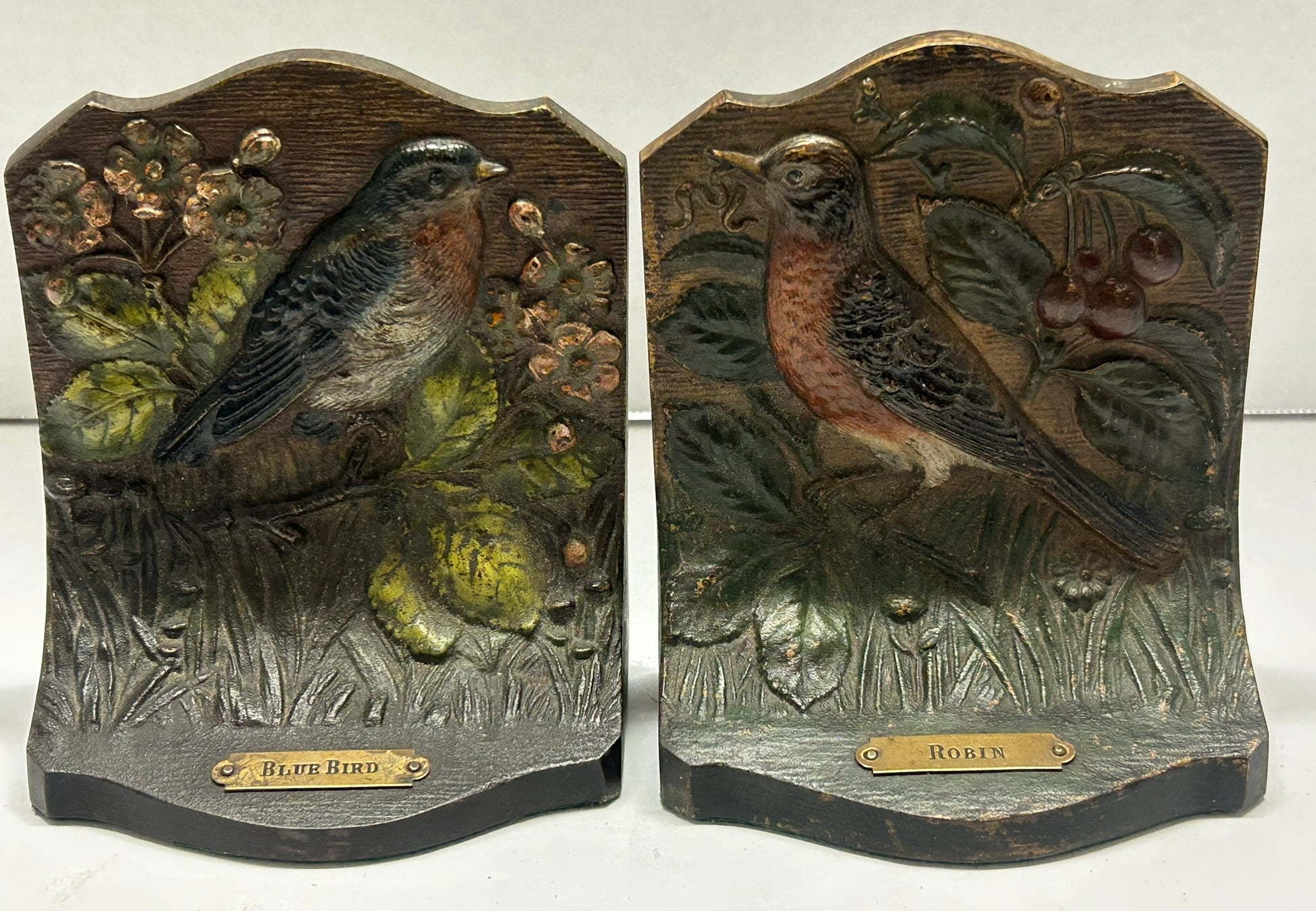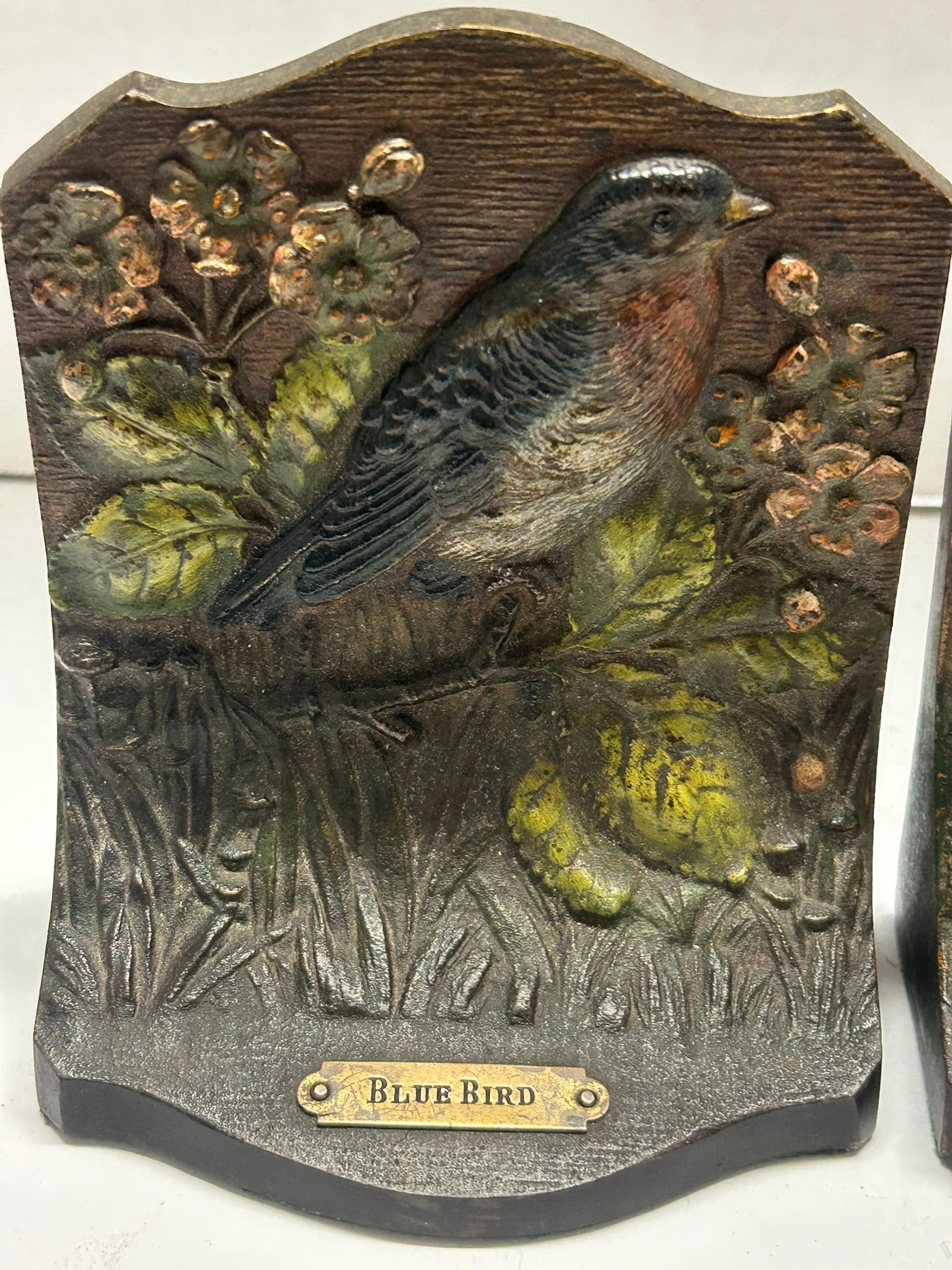 BRADLEY AND HUBBARD CAST IRON BLUE BIRD AND ROBIN AUDUBON BIRD BOOKENDS 6 1/2" TALL X 5" WIDE. CALL OR TEXT FOR MORE INFORMATION