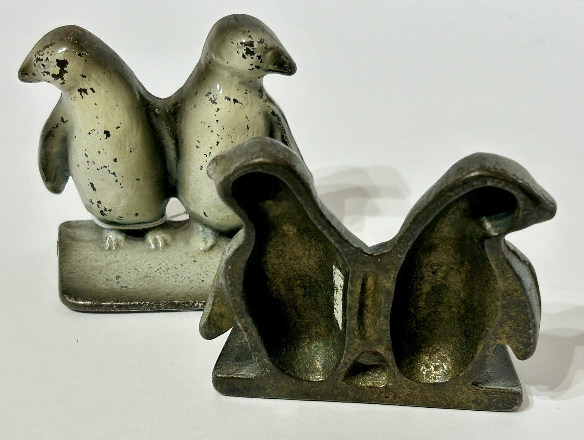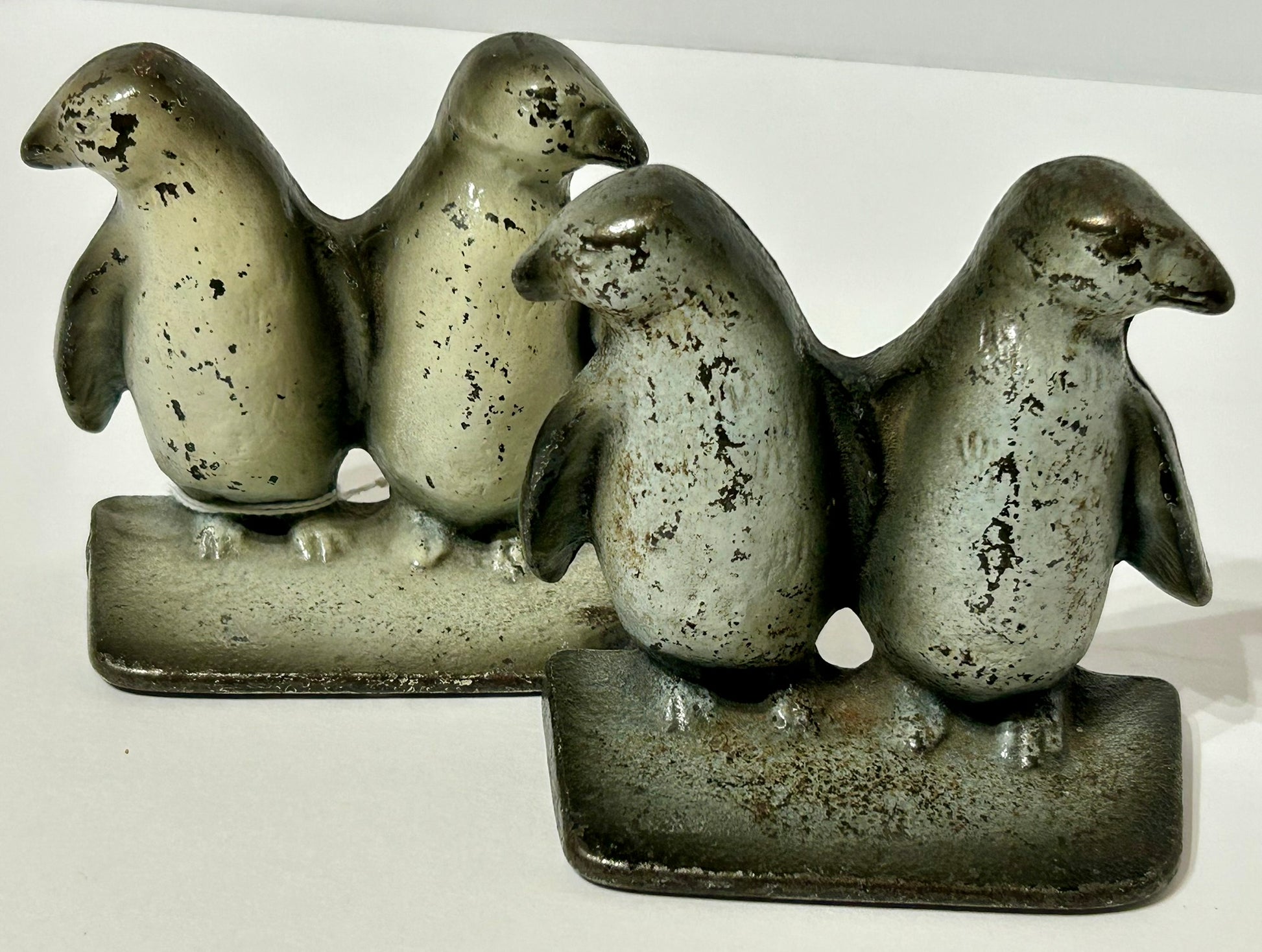 RARE MINI PENGUINS CSDT IRON BOOK ENDS 3 1/2" TALL X 3 1/2" LONG. CALL OR TEXT FOR MORE INFORMATION