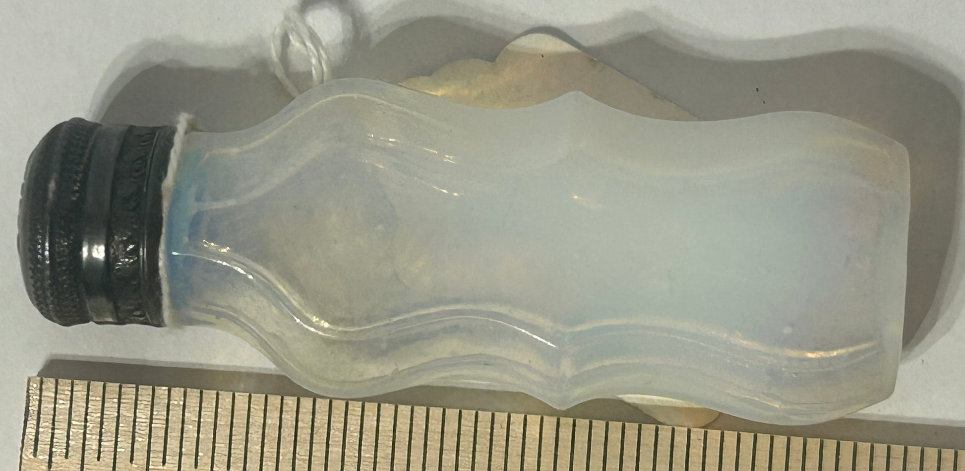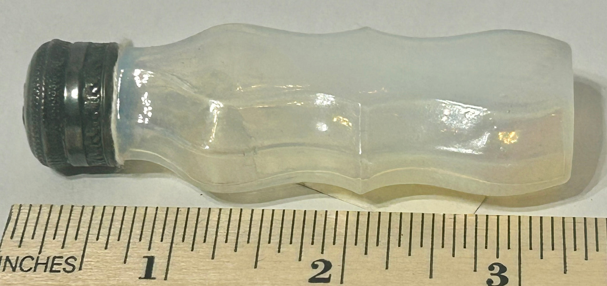 BOSTON AND SANDWICH GLASS CIRCA 1850-1870 OPAL GLASS SCENT OR SMELLING SALTS BOTTLE 3 1/4" TALL. CALL OR TEXT FOR MORE INFORMATION