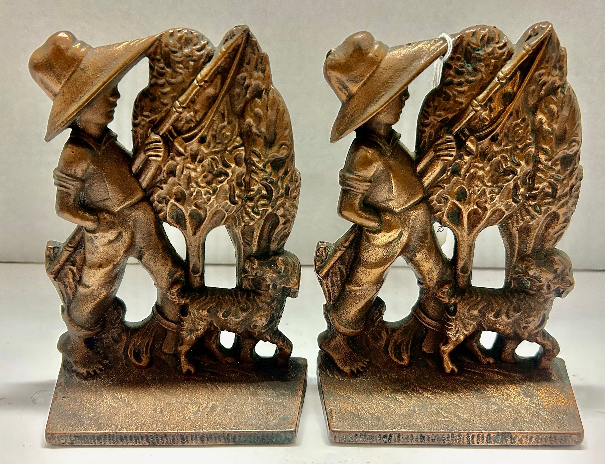 BOY GOING FISHING CAST IRON PAIR OF BOOKENDS