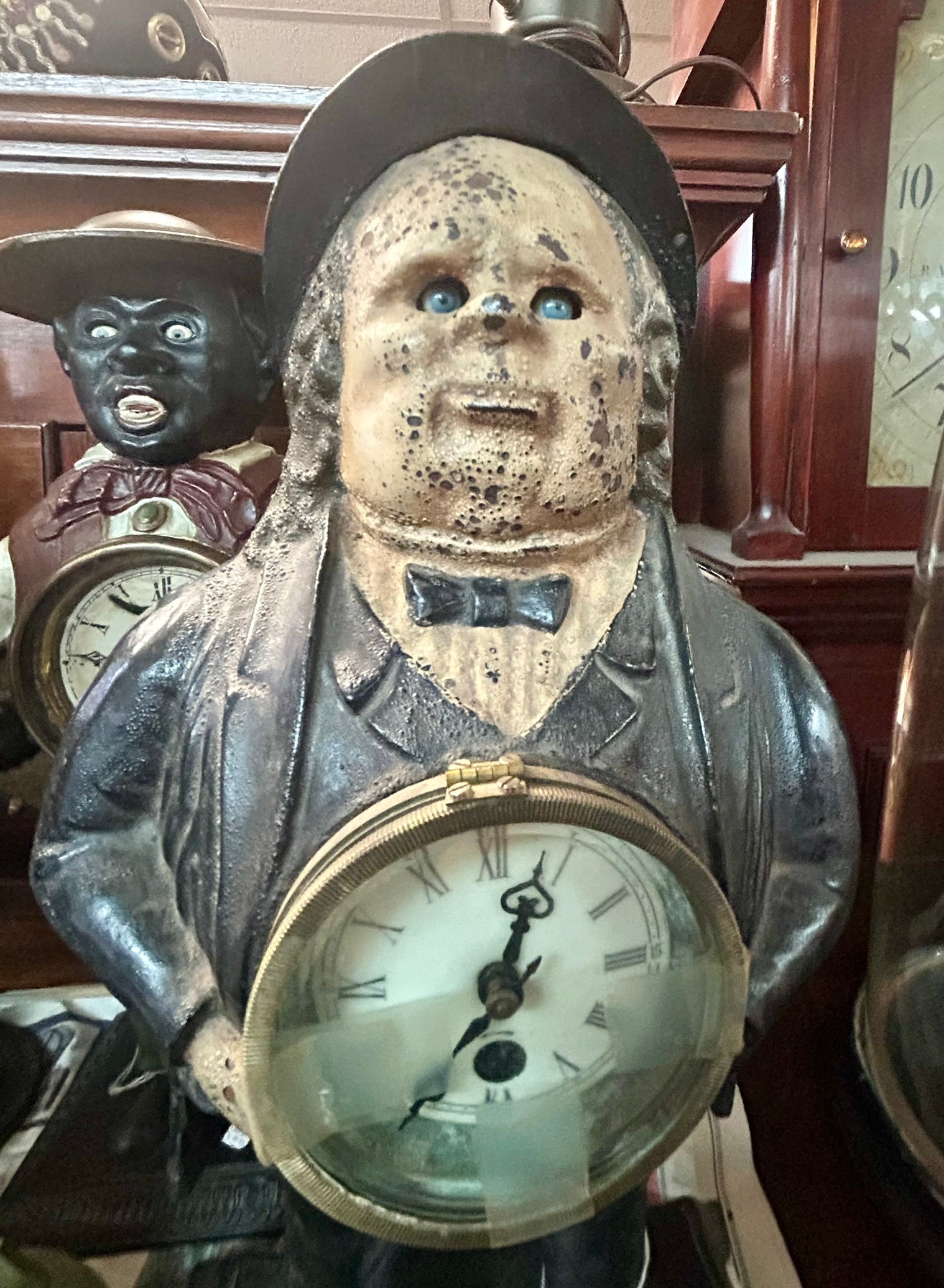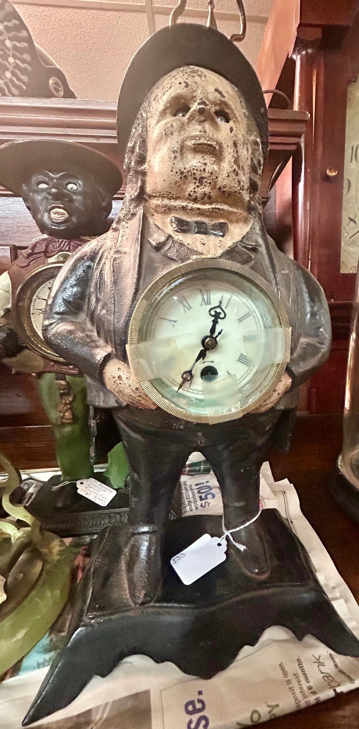 BRADLEY AND HUBBARD JOHN BULL BLINKING EYE FIGURAL CLOCK 15" TALL. CALL, TEXT, OR E-MAIL FOR MORE INFORMATION