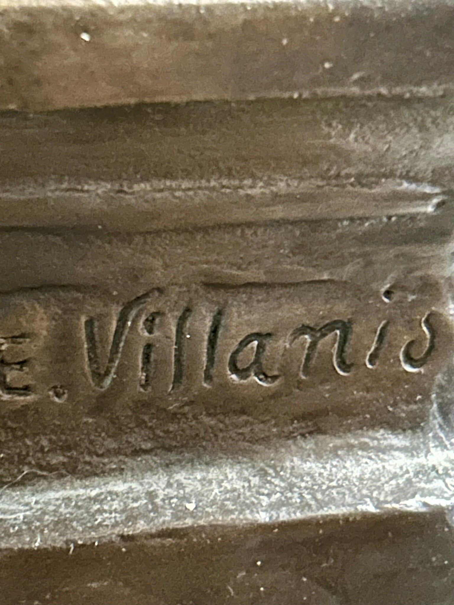 BRONZE ANTIQUE FIGURAL FEMALE NUDE SIGNED VILLANIS WITH REMOVEABLE SKIRT