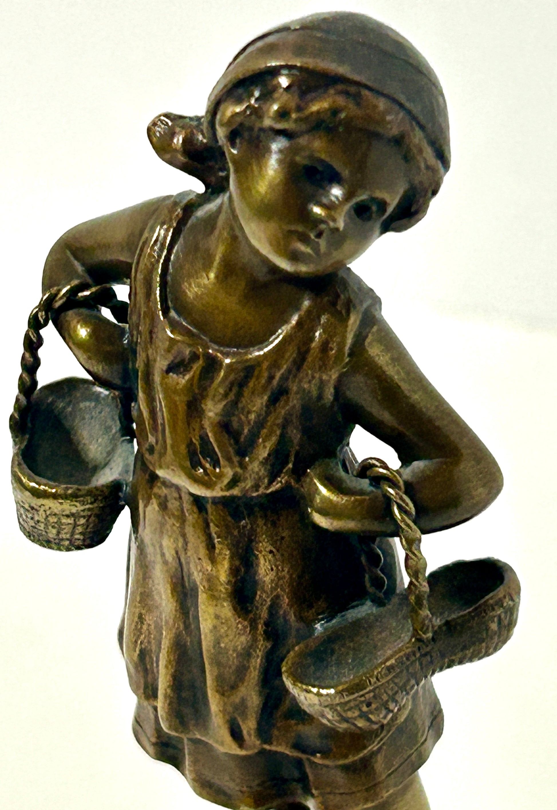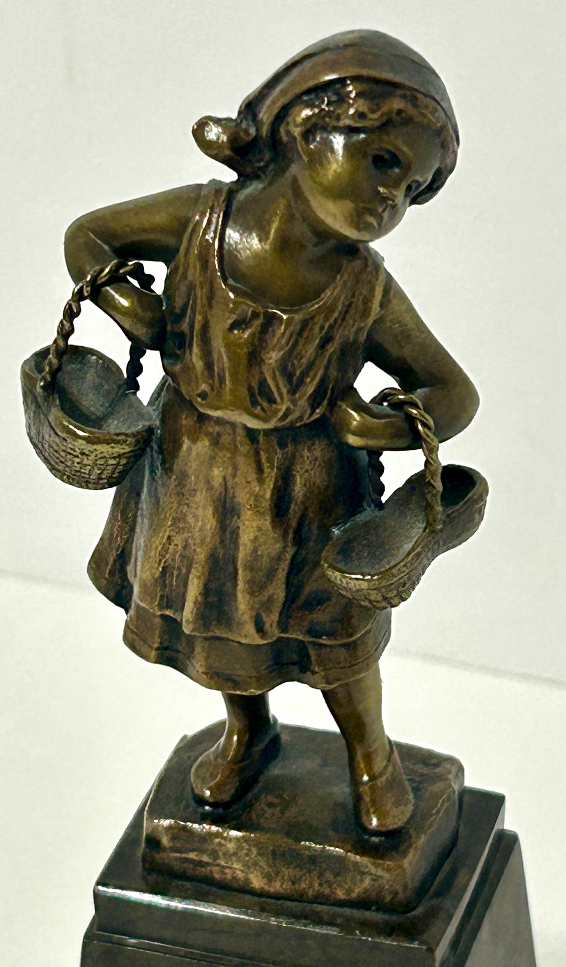 ANTIQUE JULIUS SCHMIDT FELLING BRONZE YOUNG GIRL WITH BASKETS 6 3/4" TALL. SHIPPING COST IS EXTRA SO CALL OR TEXT US FOR PRICE WE WILL HAVE TO PAY TO SHIP TO YOUR ADDRESS