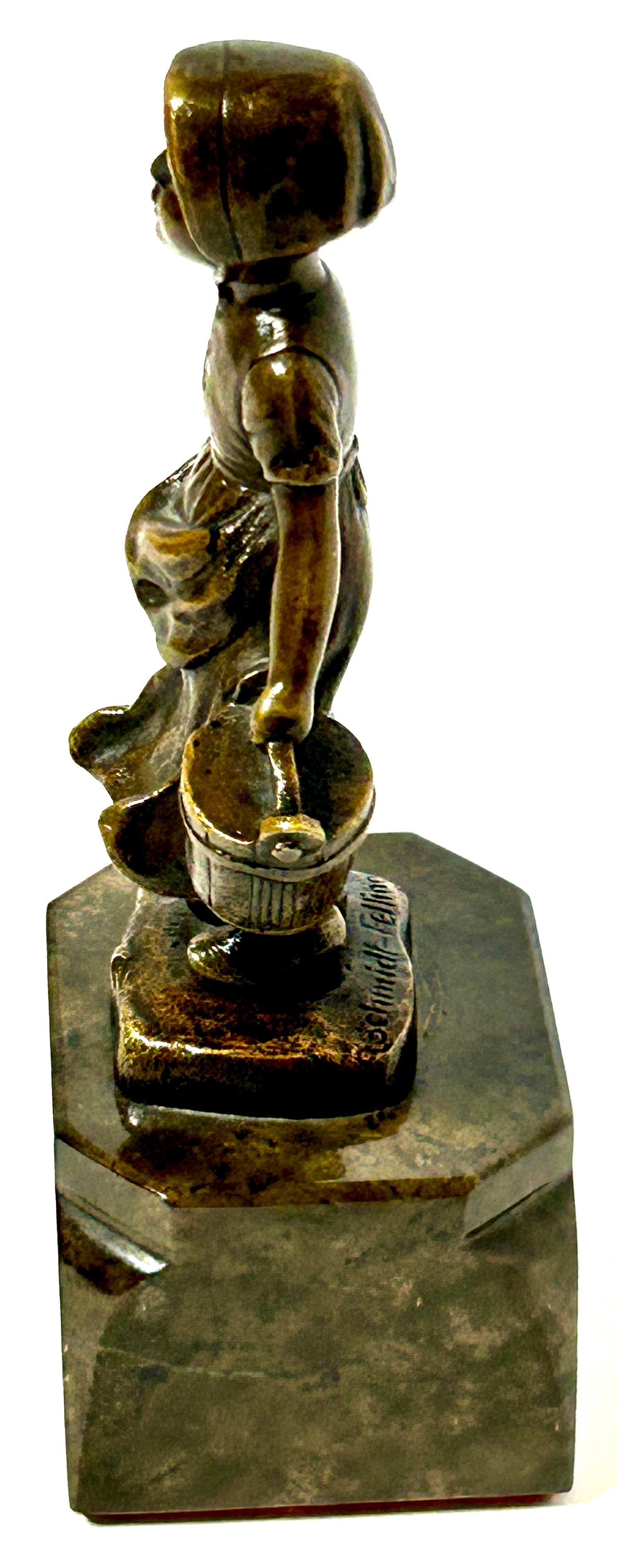 ANTIQUE BRONZE SCULPTURE OF GIRL WITH TWO BUCKETS BY JULIUS SCHMIDT-FELLING 6" TALL. SHIPPING COST IS EXTRA SO CALL OR TEXT US TO FIND OUT WHAT WE WILL PAY TO SHIP TO YOUR ADDRESS
