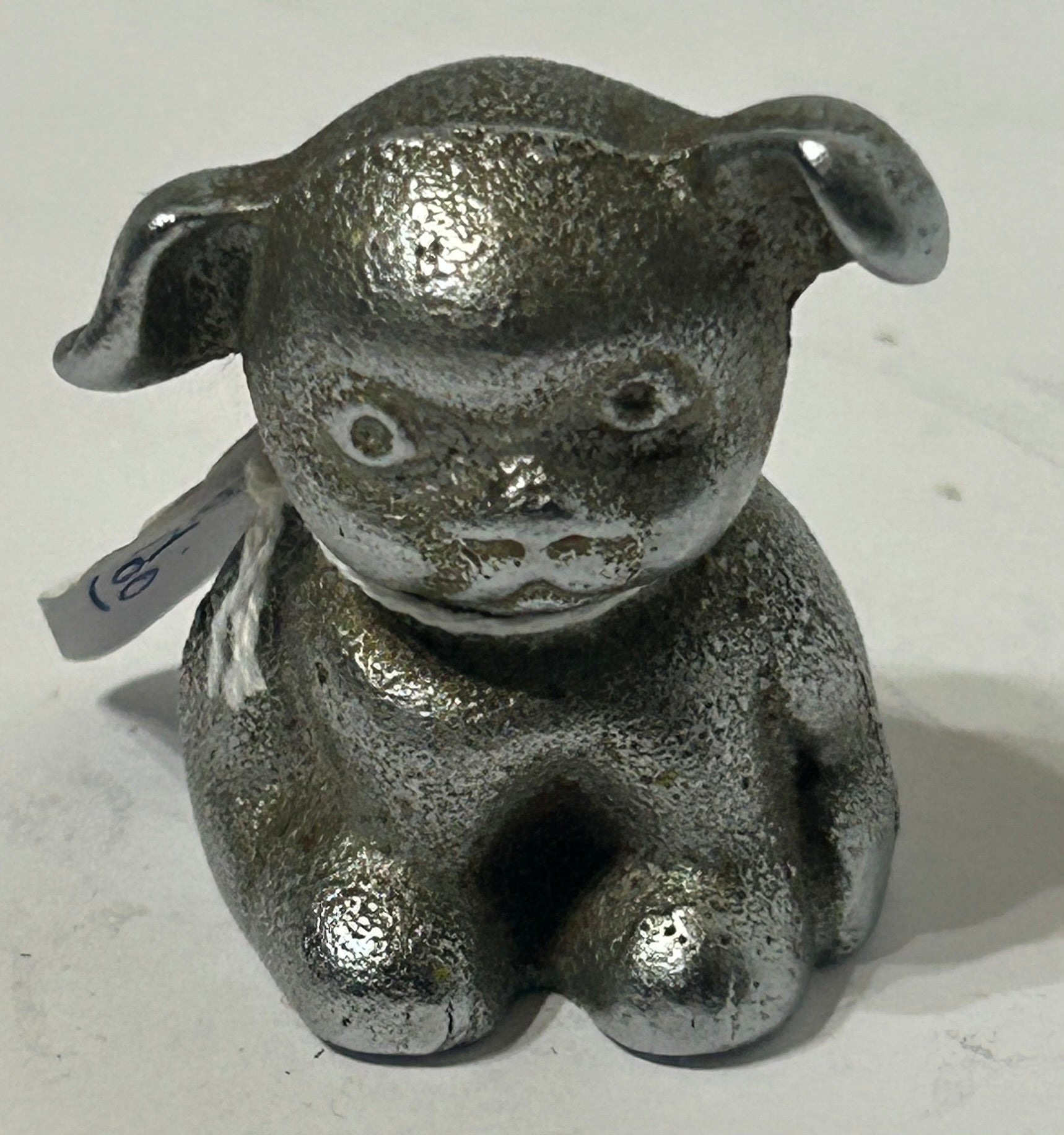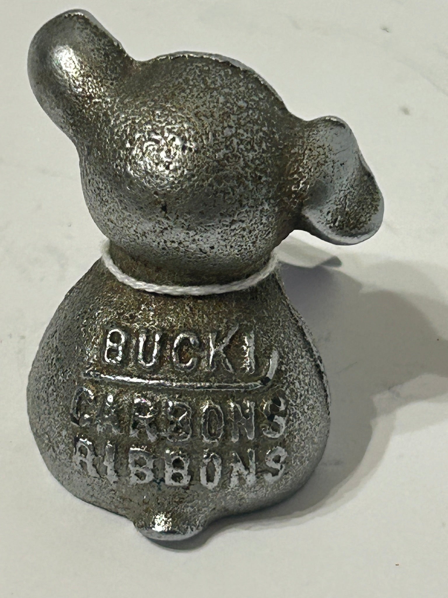 BUCKI CARBONS AND RIBBONS ADVERTISING DOG CAST IRON PAPERWEIGHT 1 1/2" TALL. CALL OR TEXT FOR MORE INFORMATION