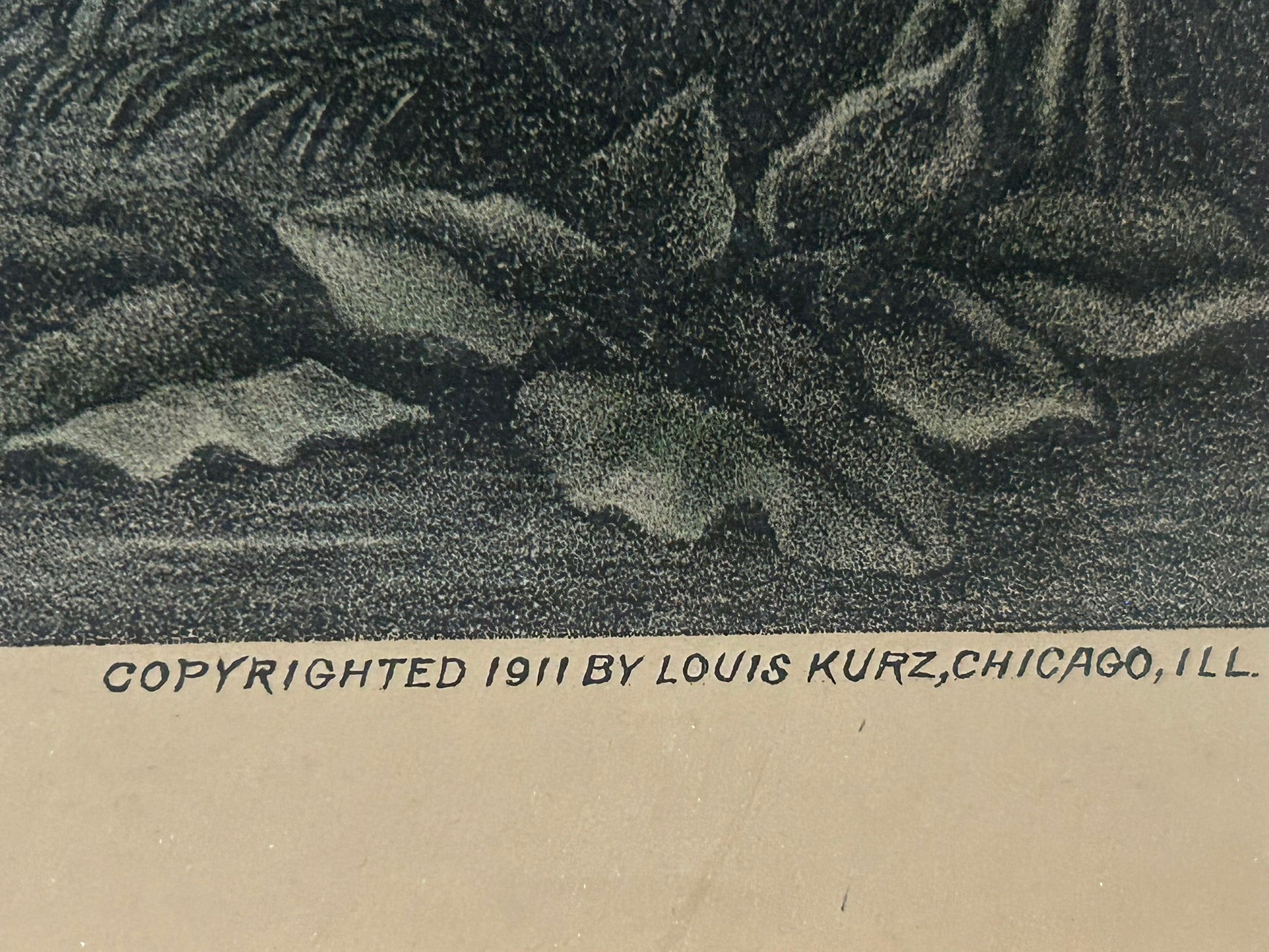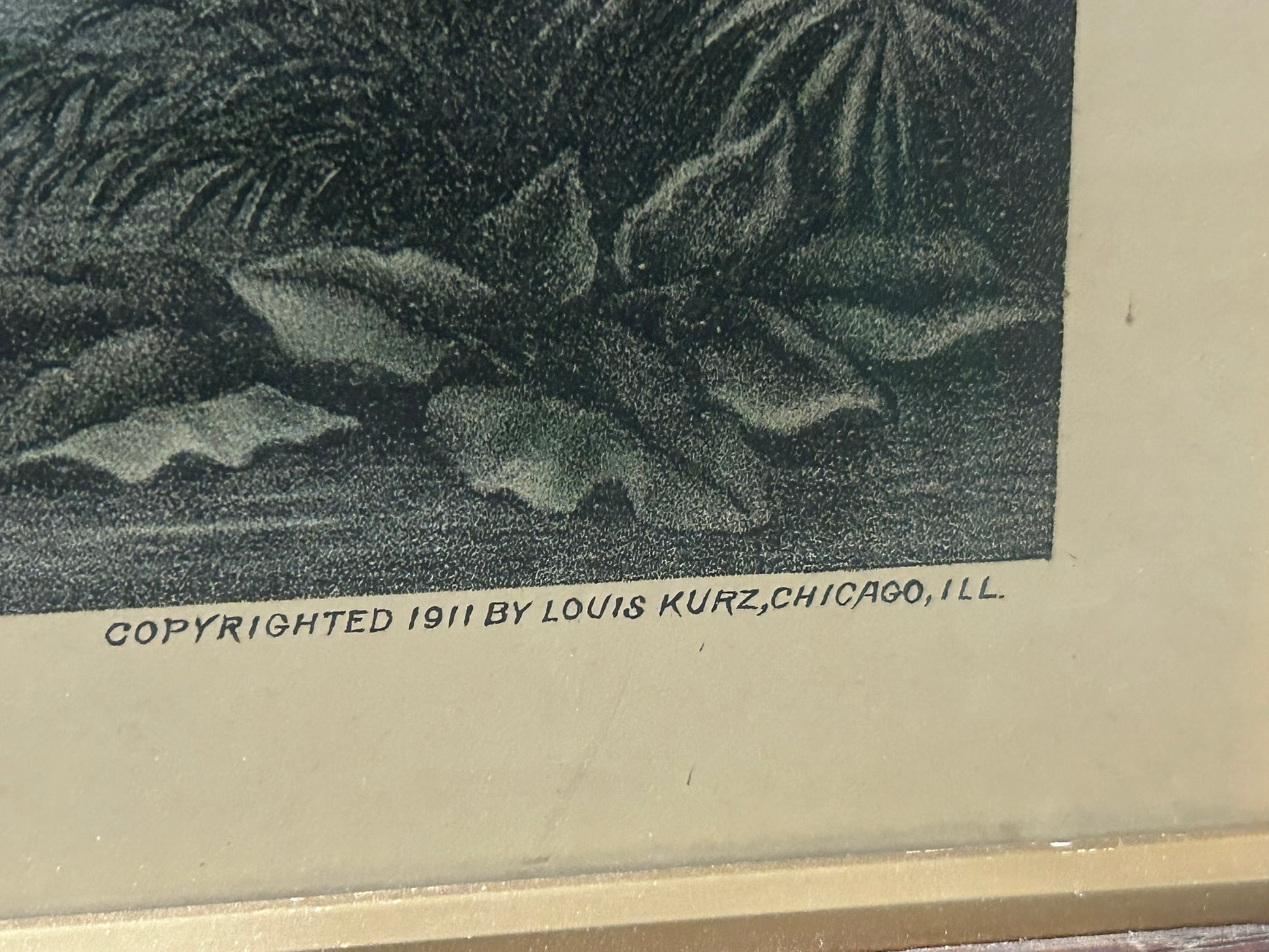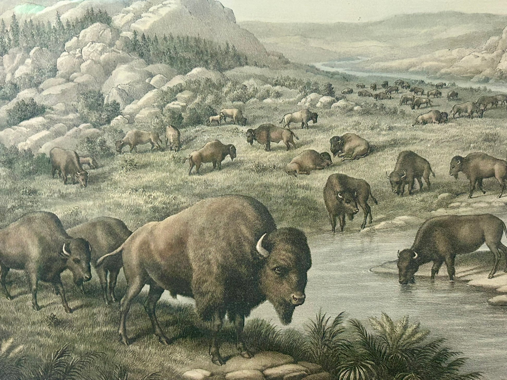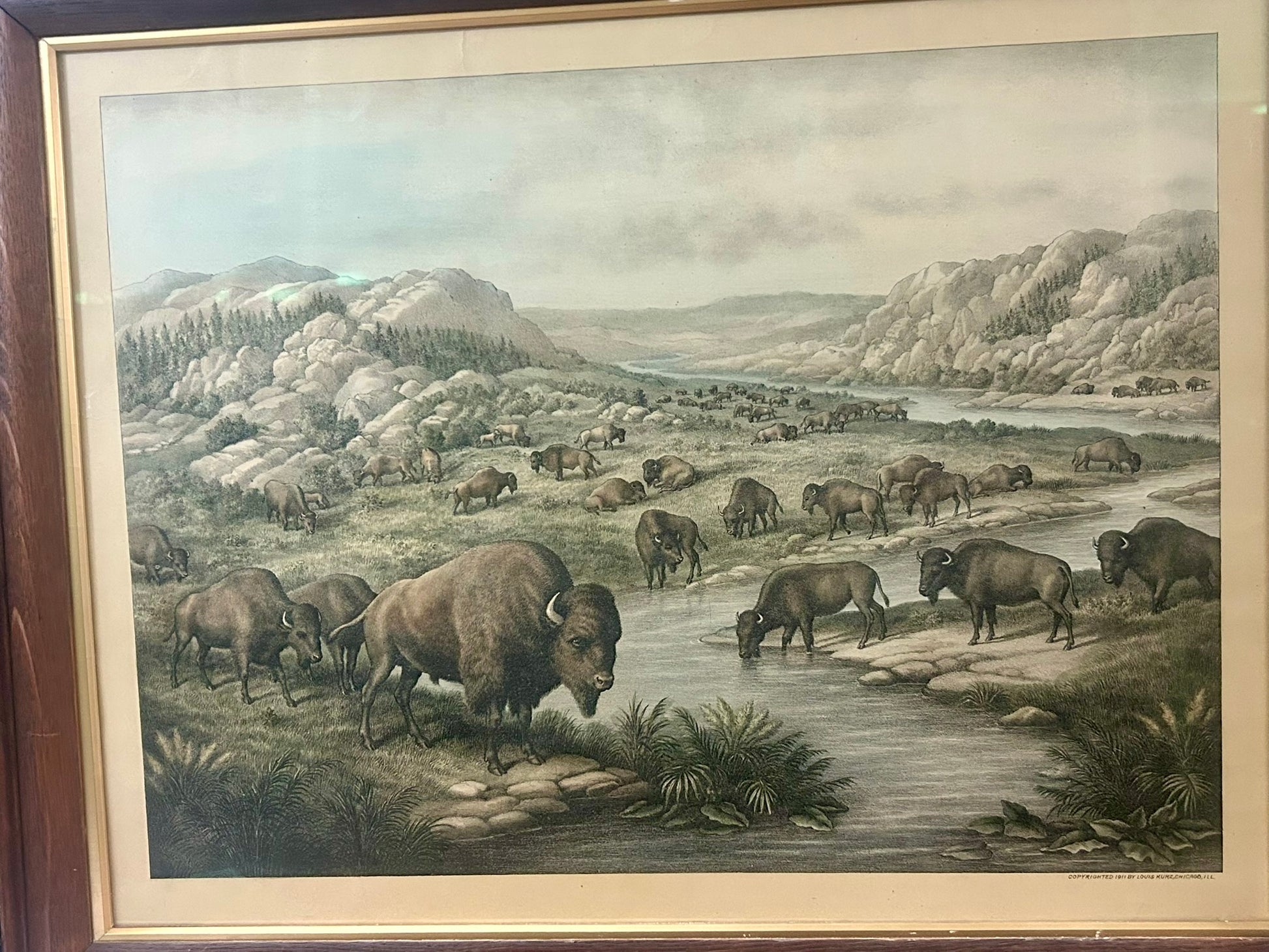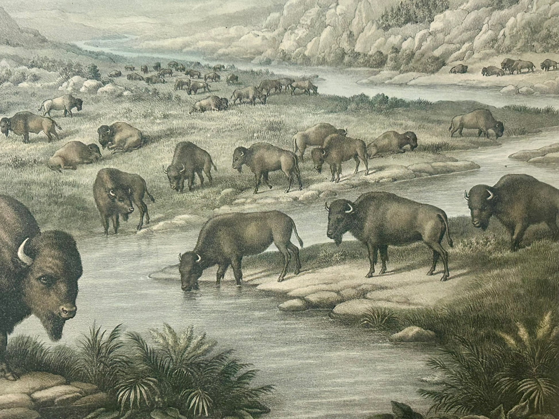 BUFFALO AT REST ANTIQUE PRINT BY LOUIS KURZ 24" X 29" OVERALL AND 19" X 25" PRINT ONLY. CALL OR TEXT FOR MORE INFORMATION