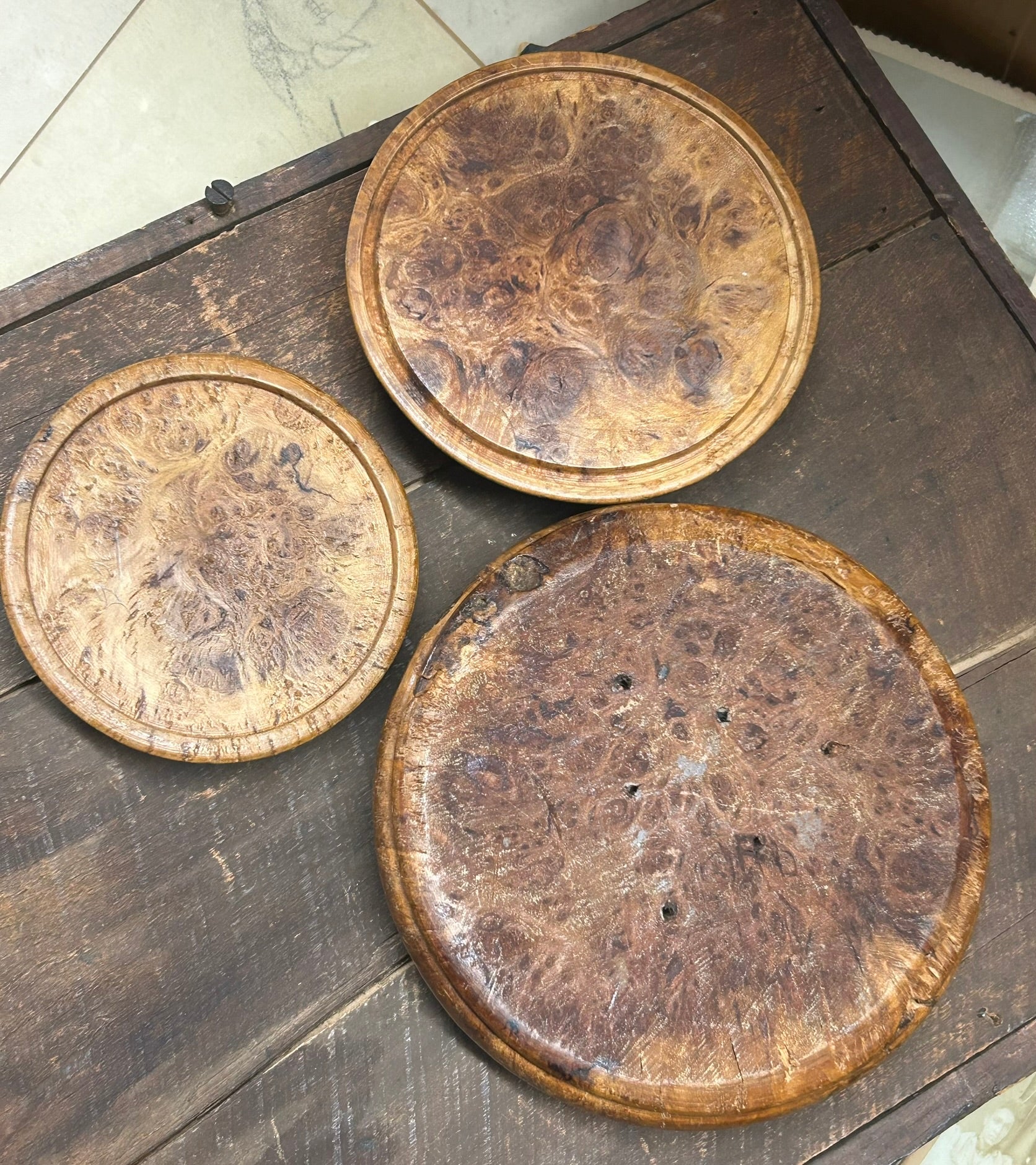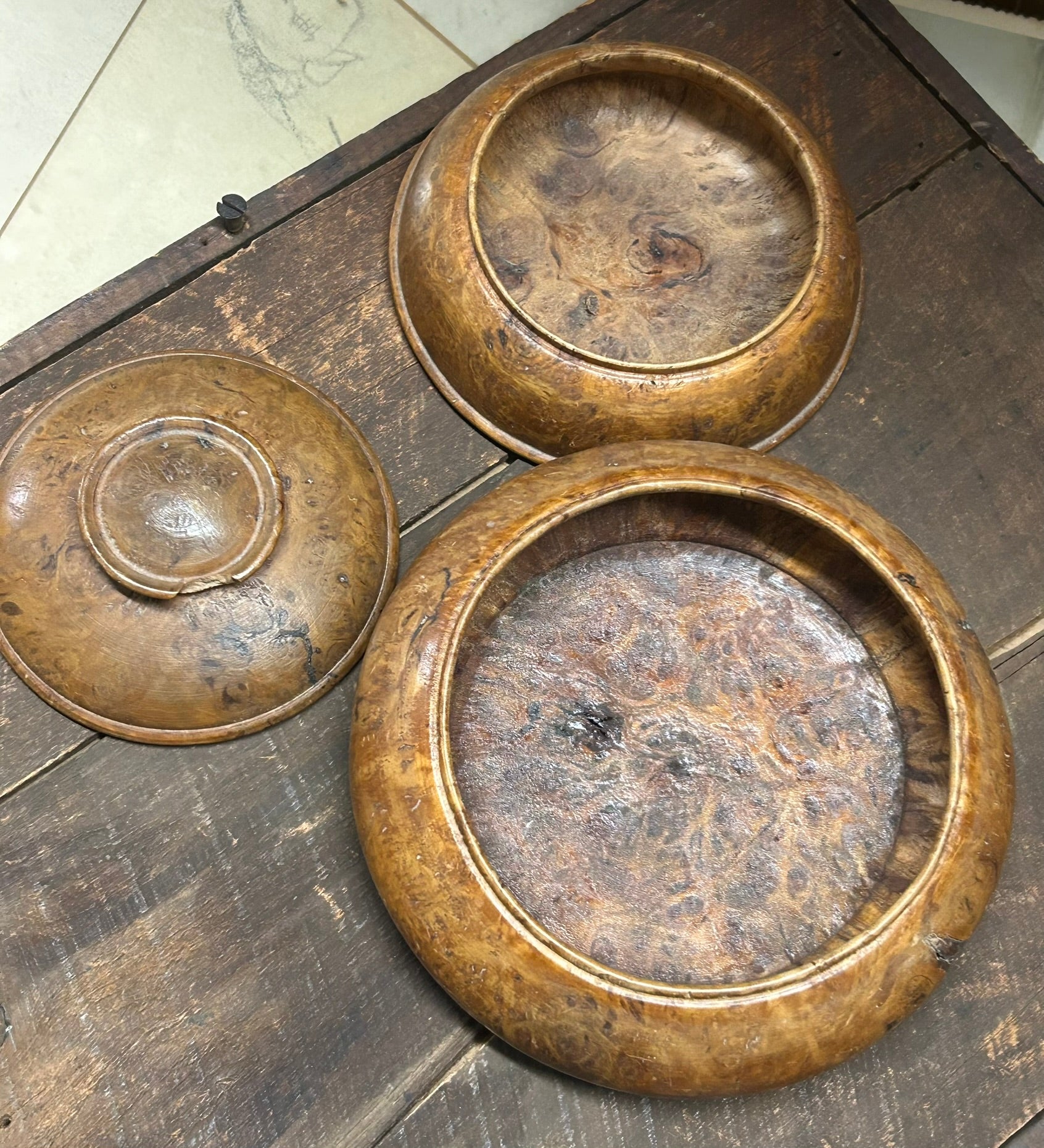 BURL WOOD DOUBLE ROUND ANTIQUE BOX