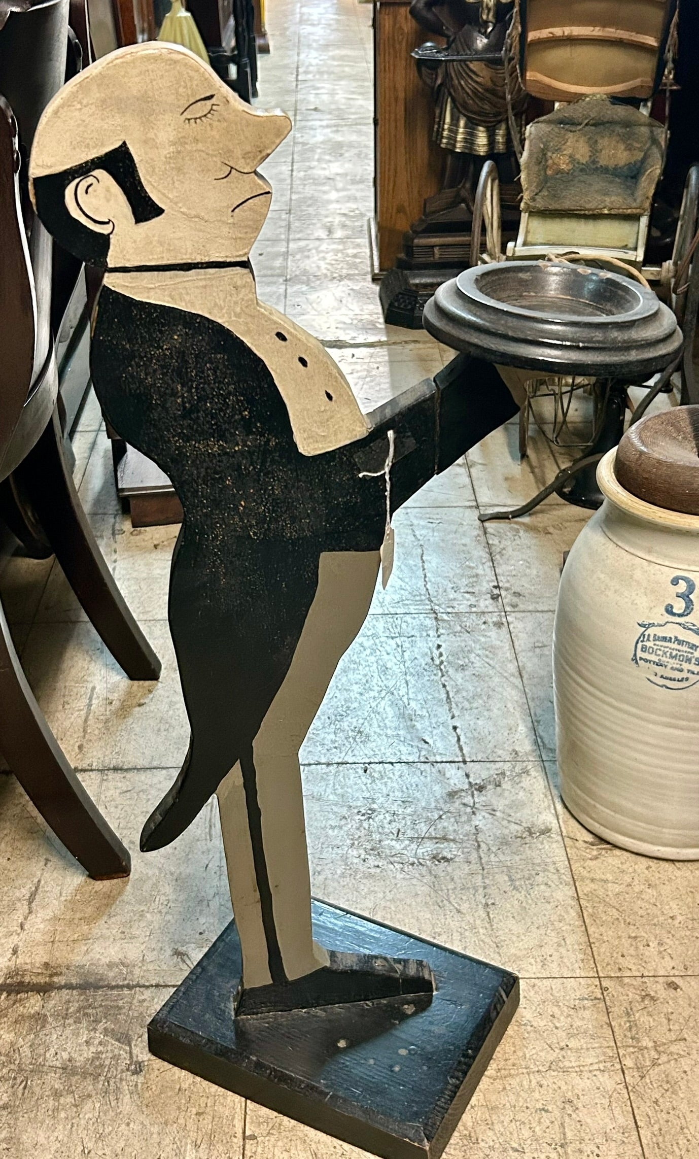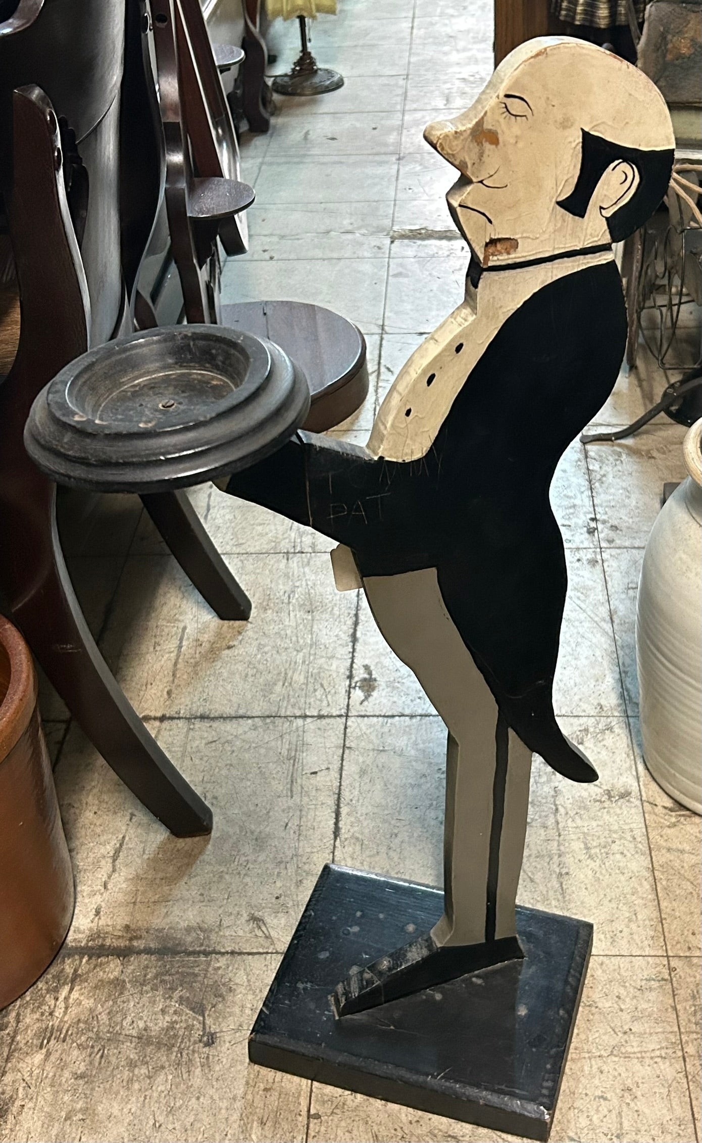 ANTIQUE FOLK ART FIGURAL BUTLER SMOKE STAND 30" TALL. NOTE HAS DAMAGE TO ONE SIDE. CALL OR TEXT FOR MORE INFORMATION