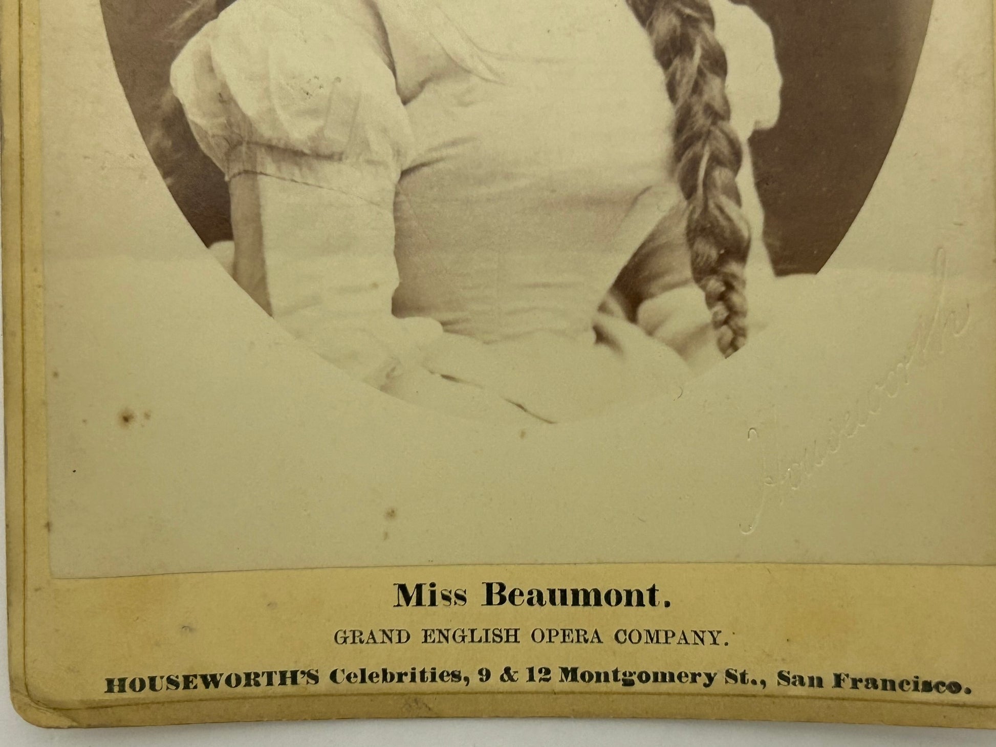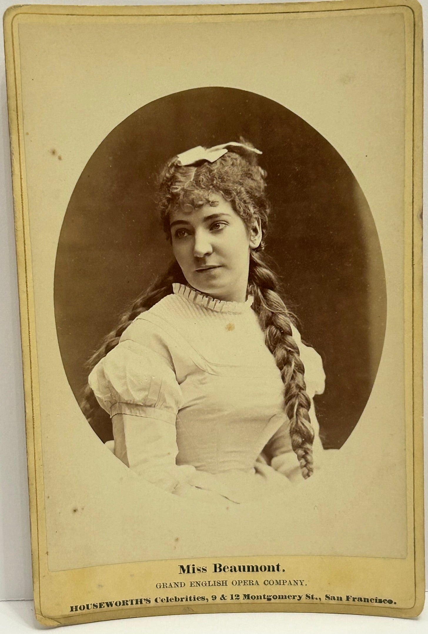 CABINET CARD PHOTOGRAPH OF OPERA STAR MISS BEAUMONT BY SAN FRANCISCO PHOTOGRAPHER HOUSEWORTH
