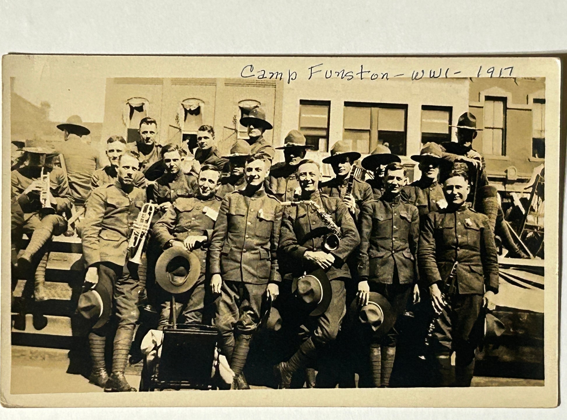 WWI REAL PHOTO POSTCARD OF CAMP FUNSTON BAND AT FORT RILEY KANSAS. CALL OR TEXT FOR MORE INFORMATION