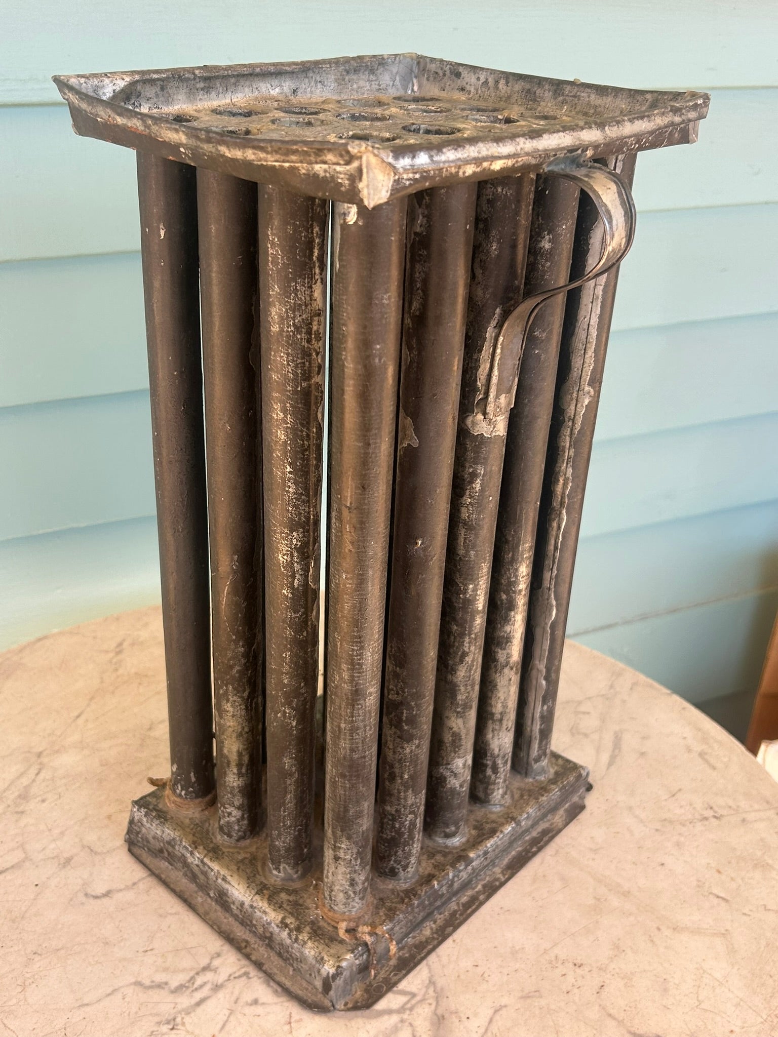 ANTIQUE 20 TUBE TIN CANDLE MOLD 16" TALL. CALL OR TEXT FOR MORE INFORMATION