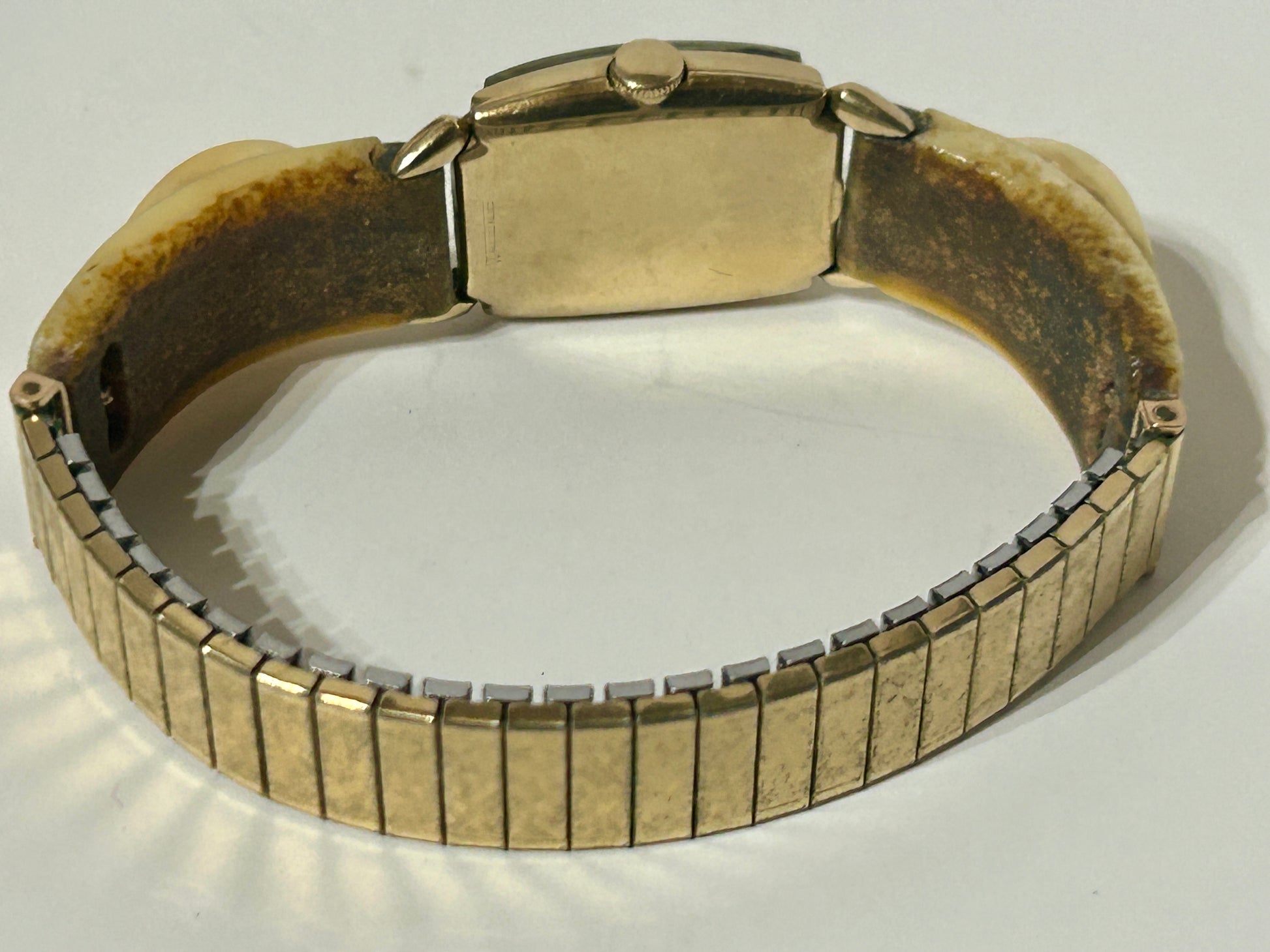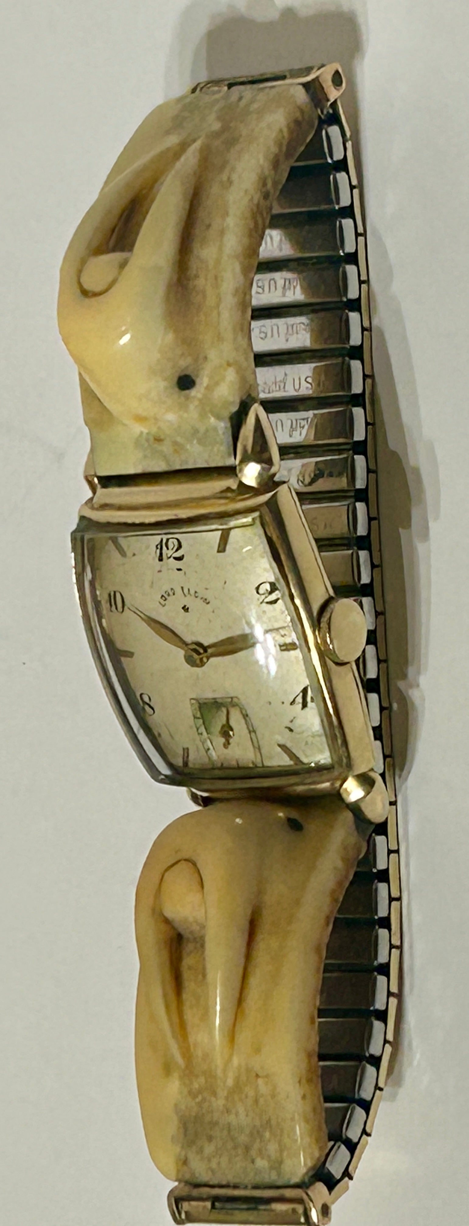 CARVED WALRUS IVORY BAND ON LORD ELGIN WRIST WATCH