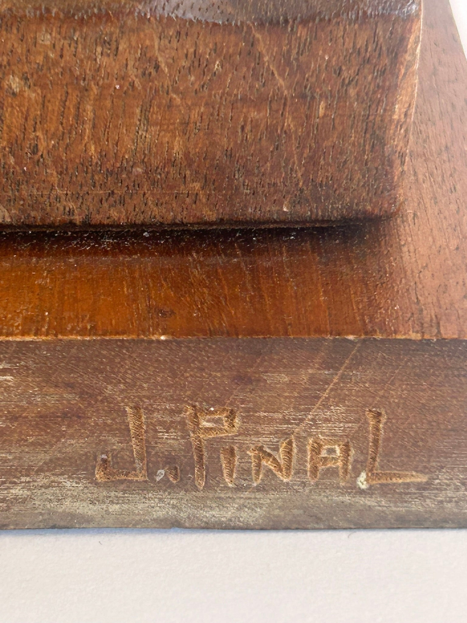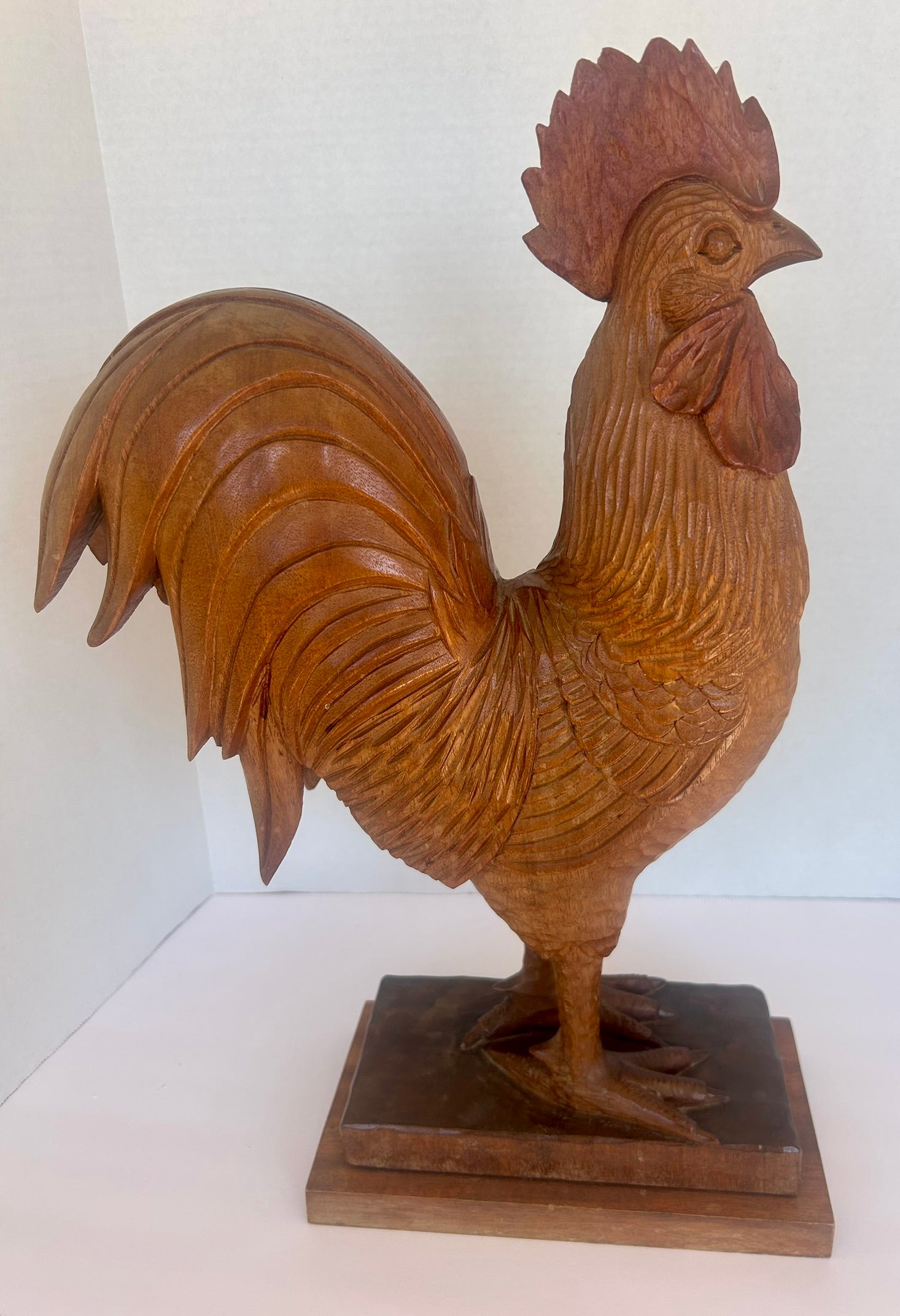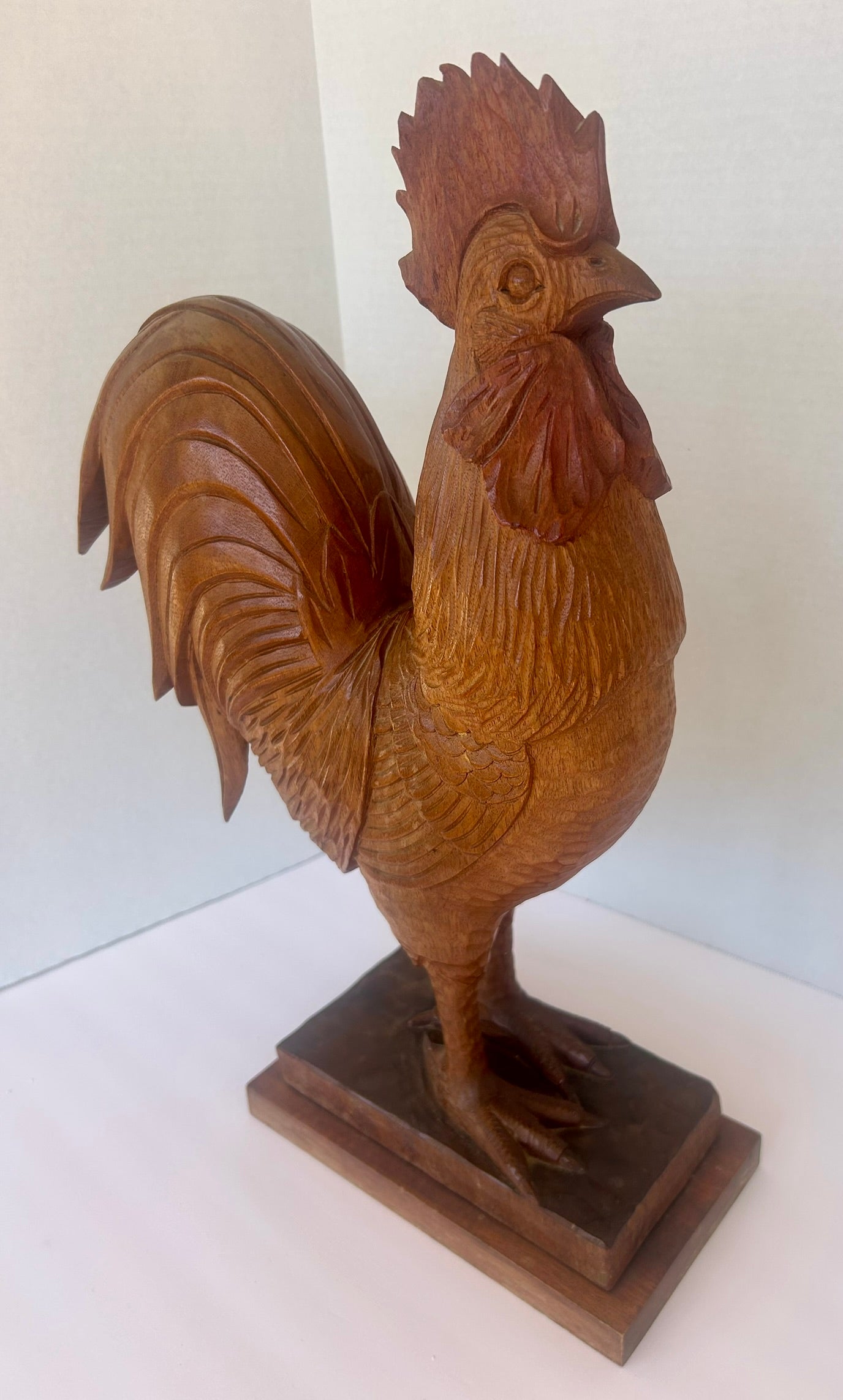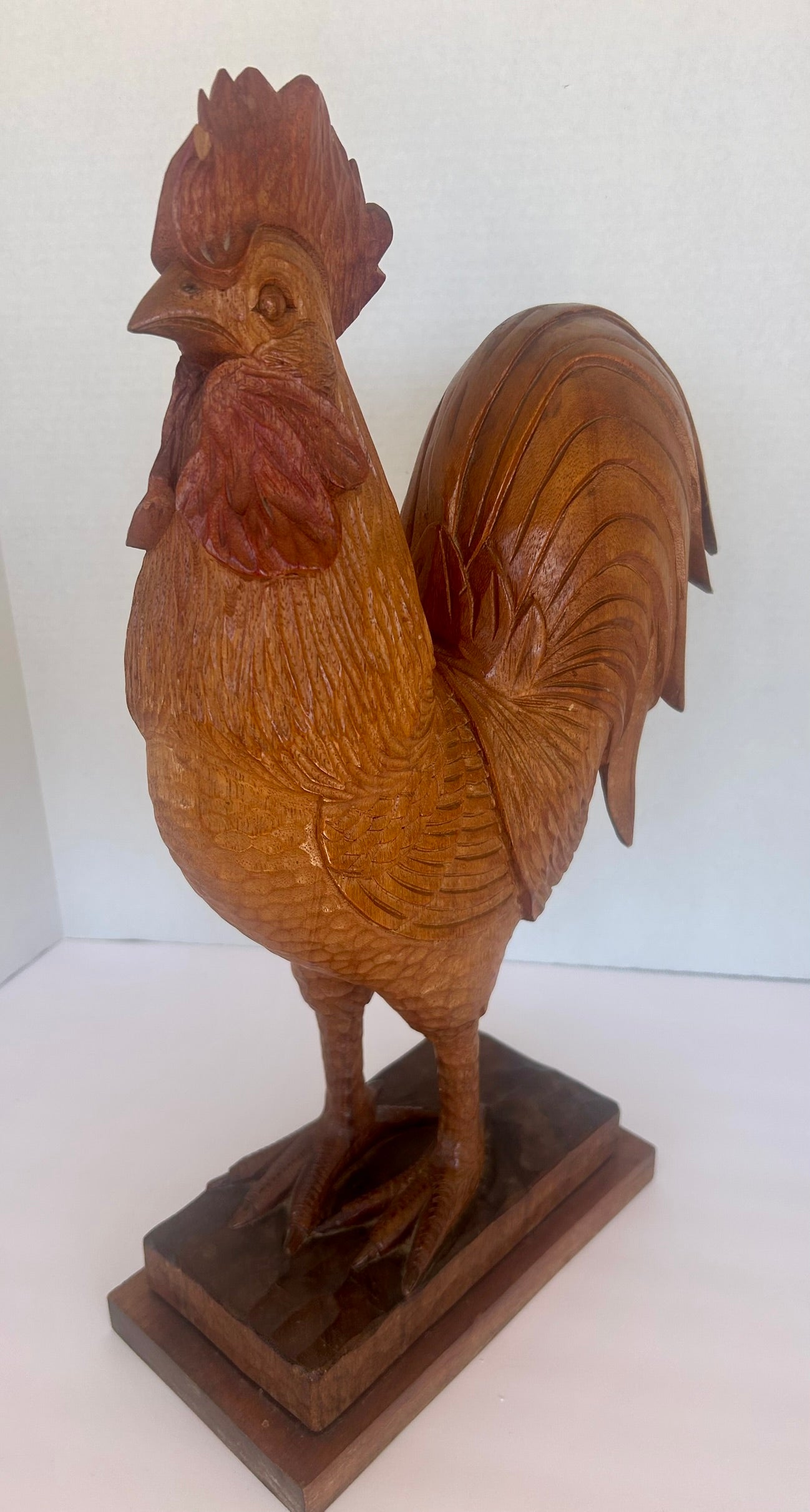 CARVED WOOD LARGE ROOSTER BY ARTIST J. PINAL (1913-1983) 19" TALL. CALL OR TEXT FOR MORE INFORMATION
