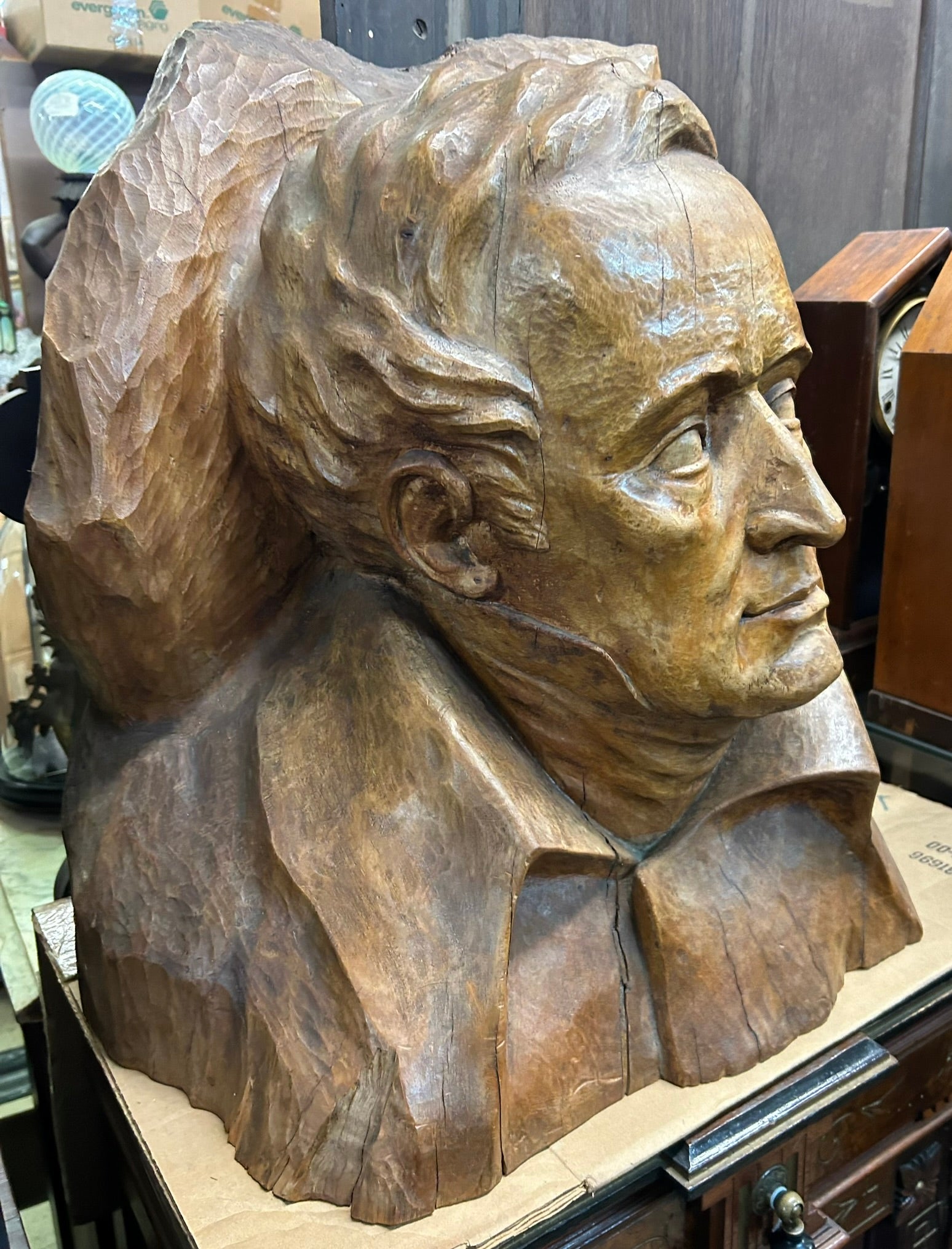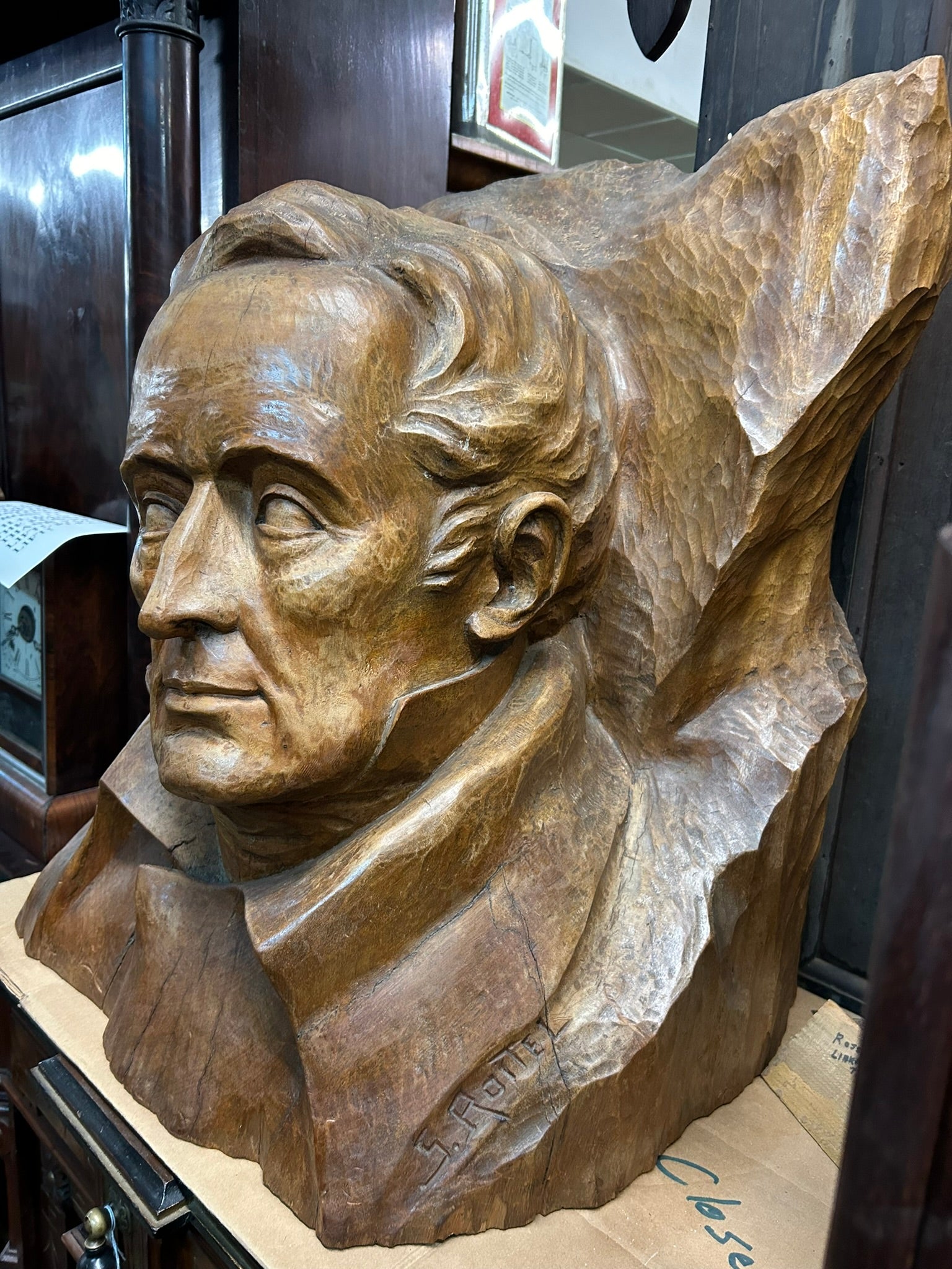 CARVED WOODEN BUST BY S. ROTTEL OF EARLY GENTLEMAN