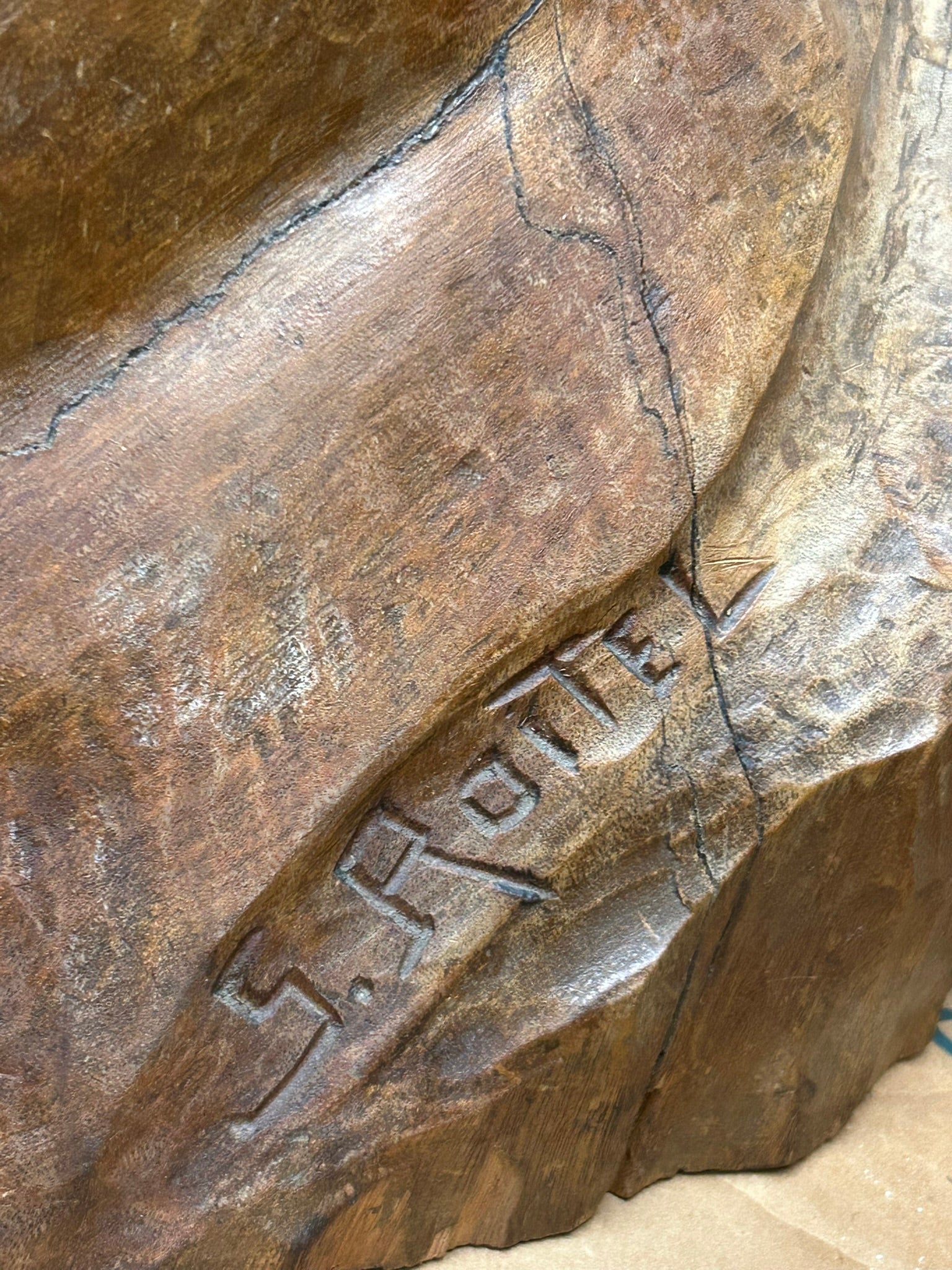 CARVED LARGE WOODEN BUST BY S. ROTTEL OF MAN IN HIGH COLLAR 1700's STYLE JACKET. CALL OR TEXT FOR MORE INFORMATION