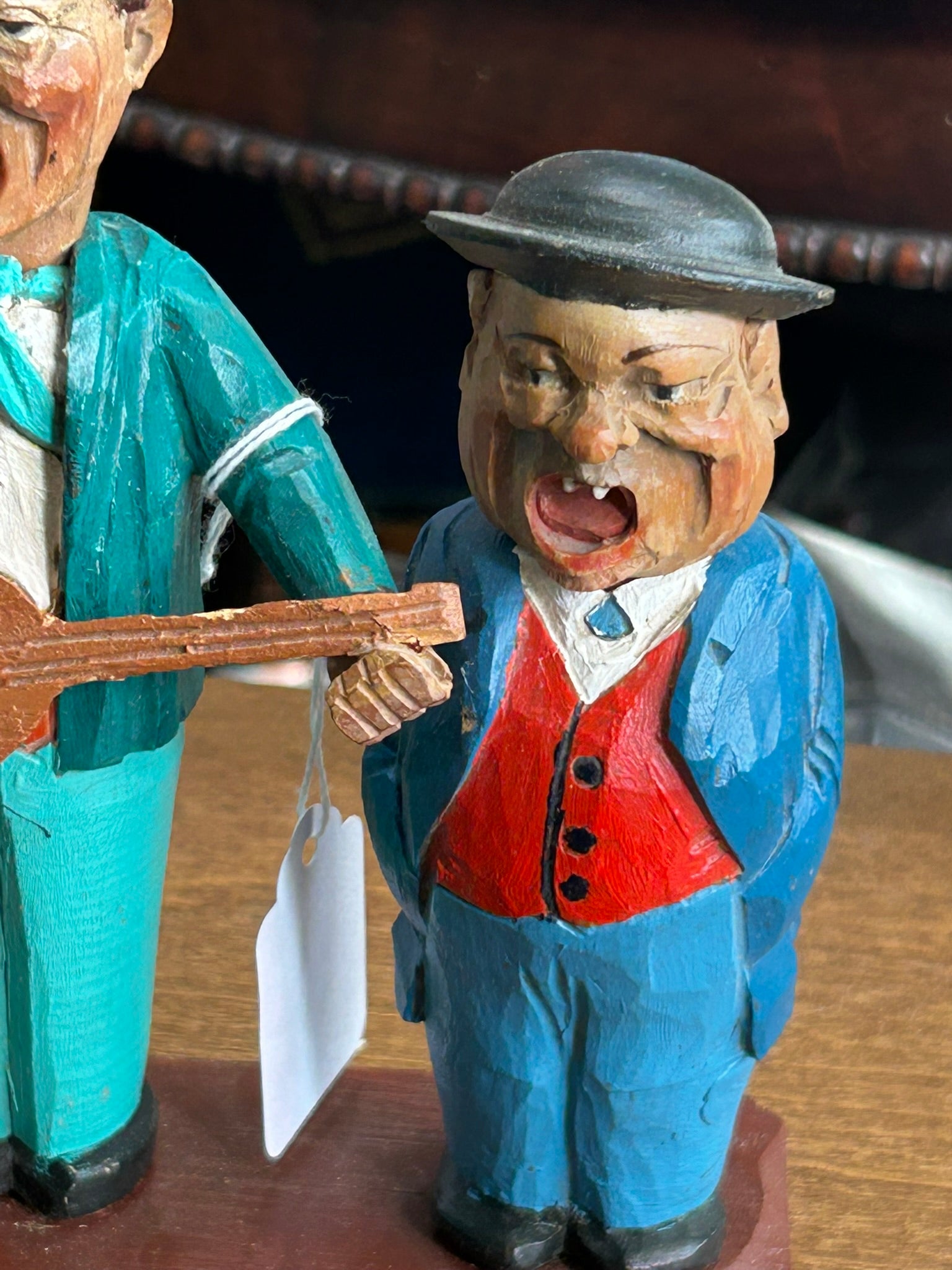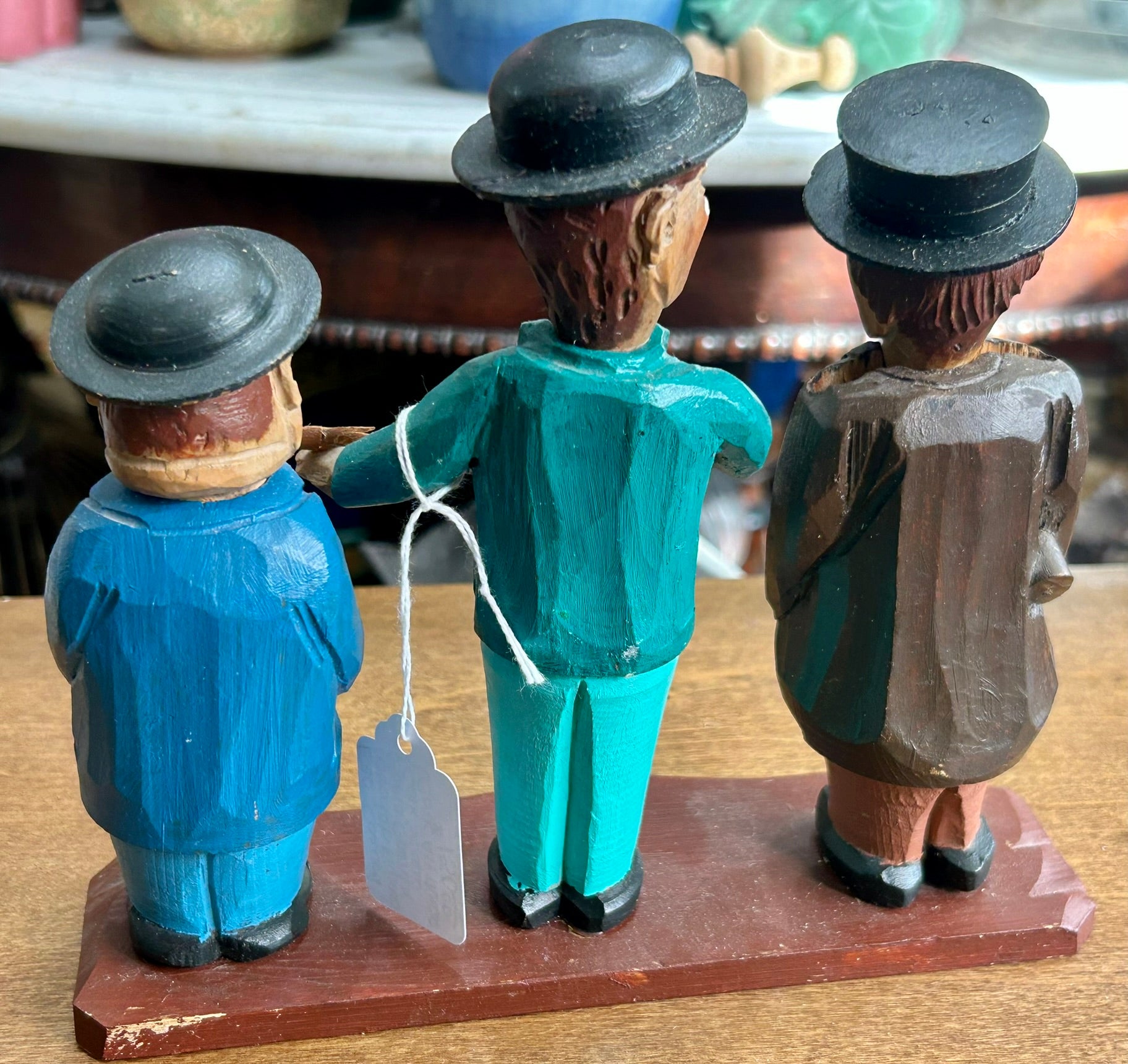 CARVED WOODEN HUMAN FIGURES ON CORK SCREW, BOTTLE OPENER, AND BOTTLE STOPPER 8" WIDE BY 7" TALL. CALL OR TEXT FOR MORE INFORMATION