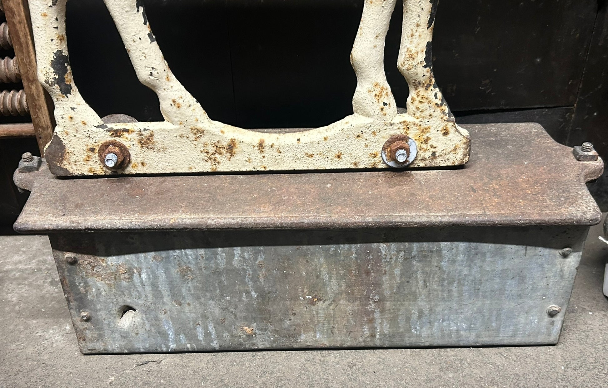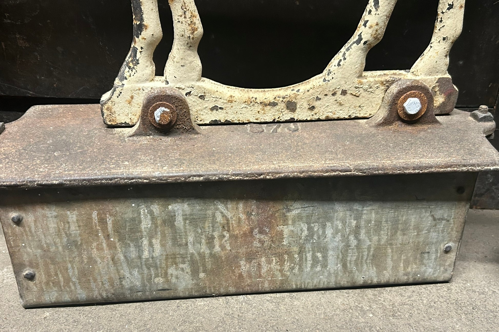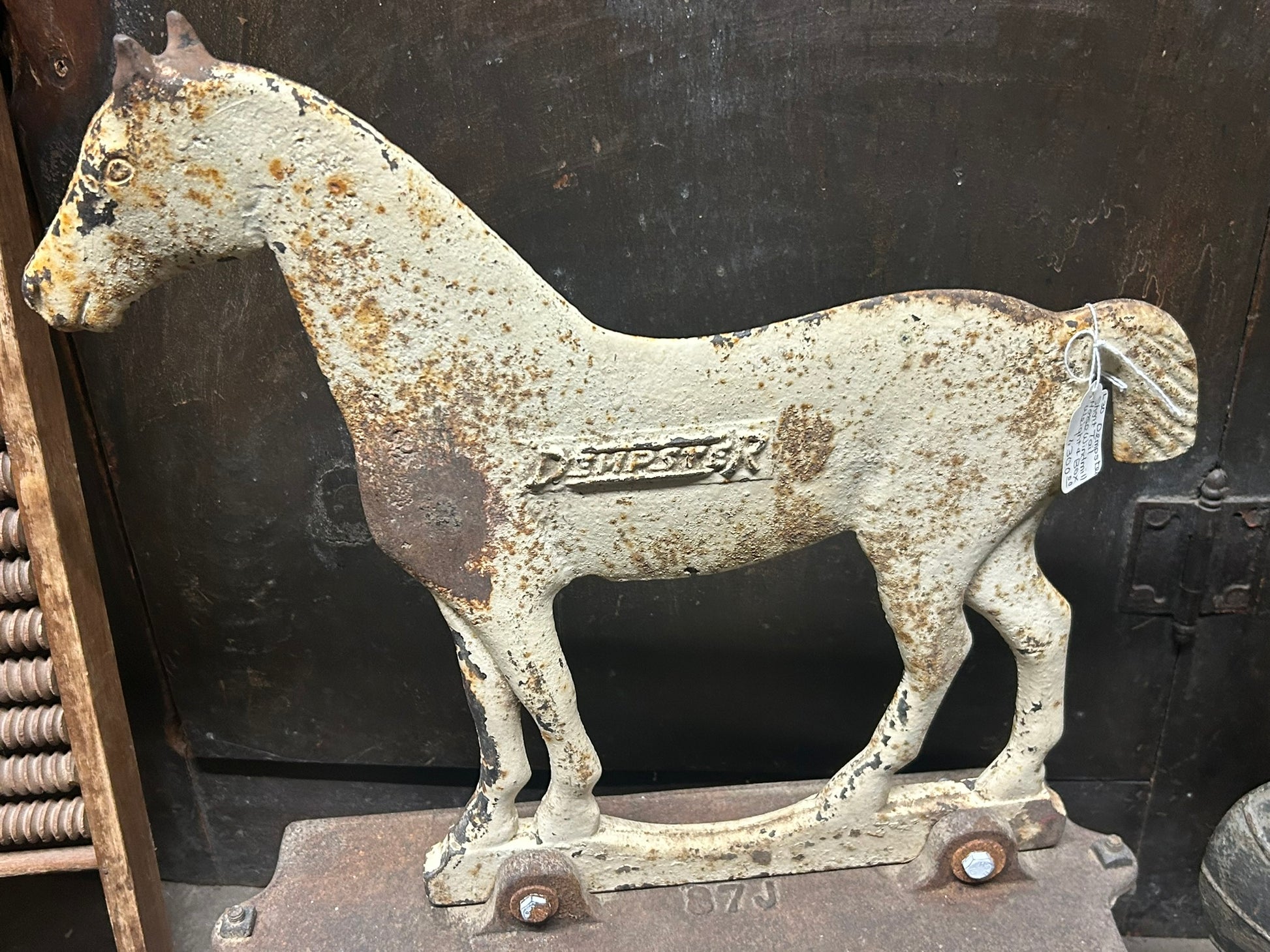 CAST IRON ANTIQUE DEMPSTER HORSE SHAPE WINDMILL WEIGHT WITH RARE WEIGHT BOX 22" TALL X 18" LONG. CALL OR TEXT FOR MORE INFORMATION