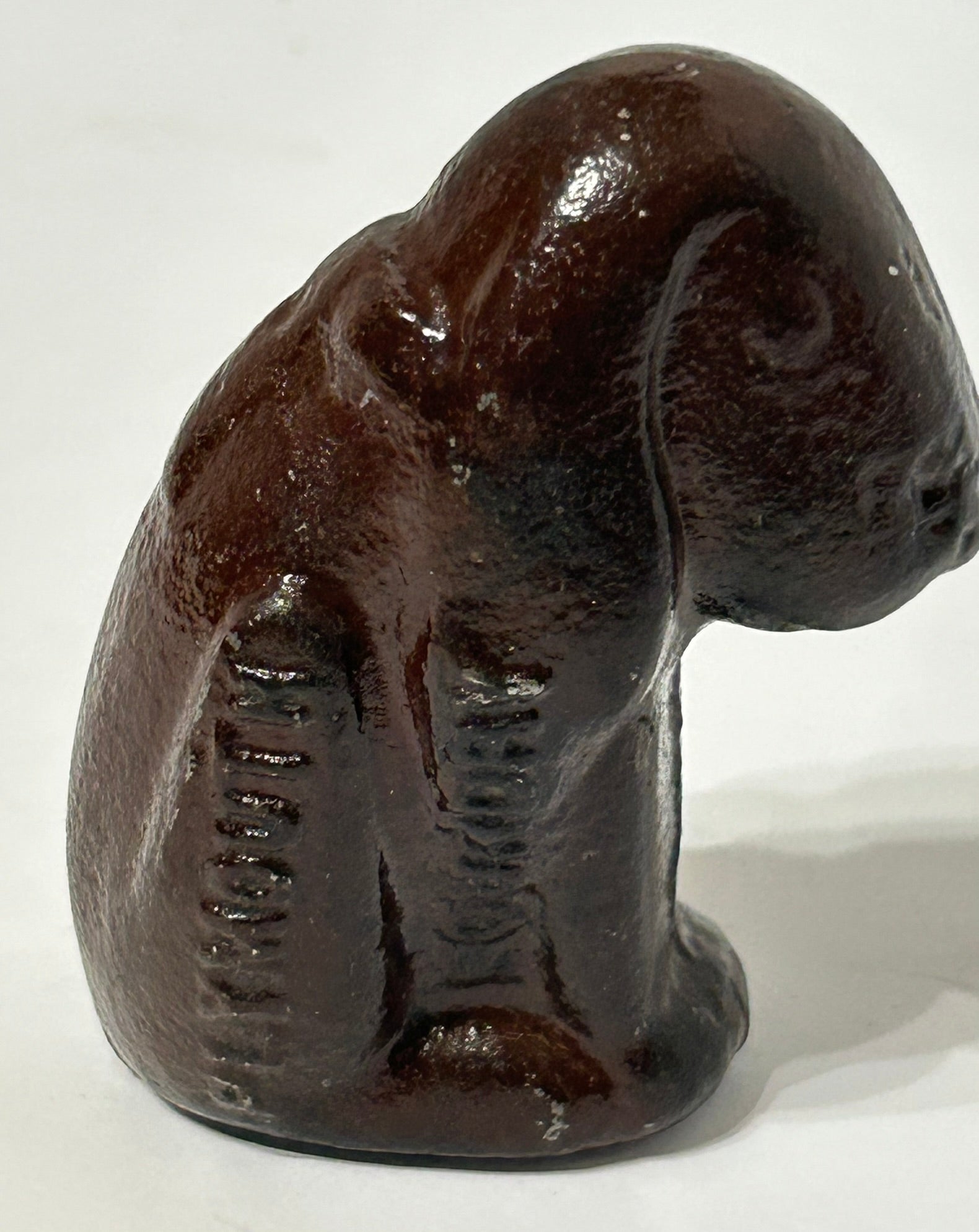 CAST IRON FIGURAL DOG PAPERWEIGHT FOR PLYMOUTH FOUNDRY 3" TALL. CALL OR TEXT FOR MORE INFORMATION