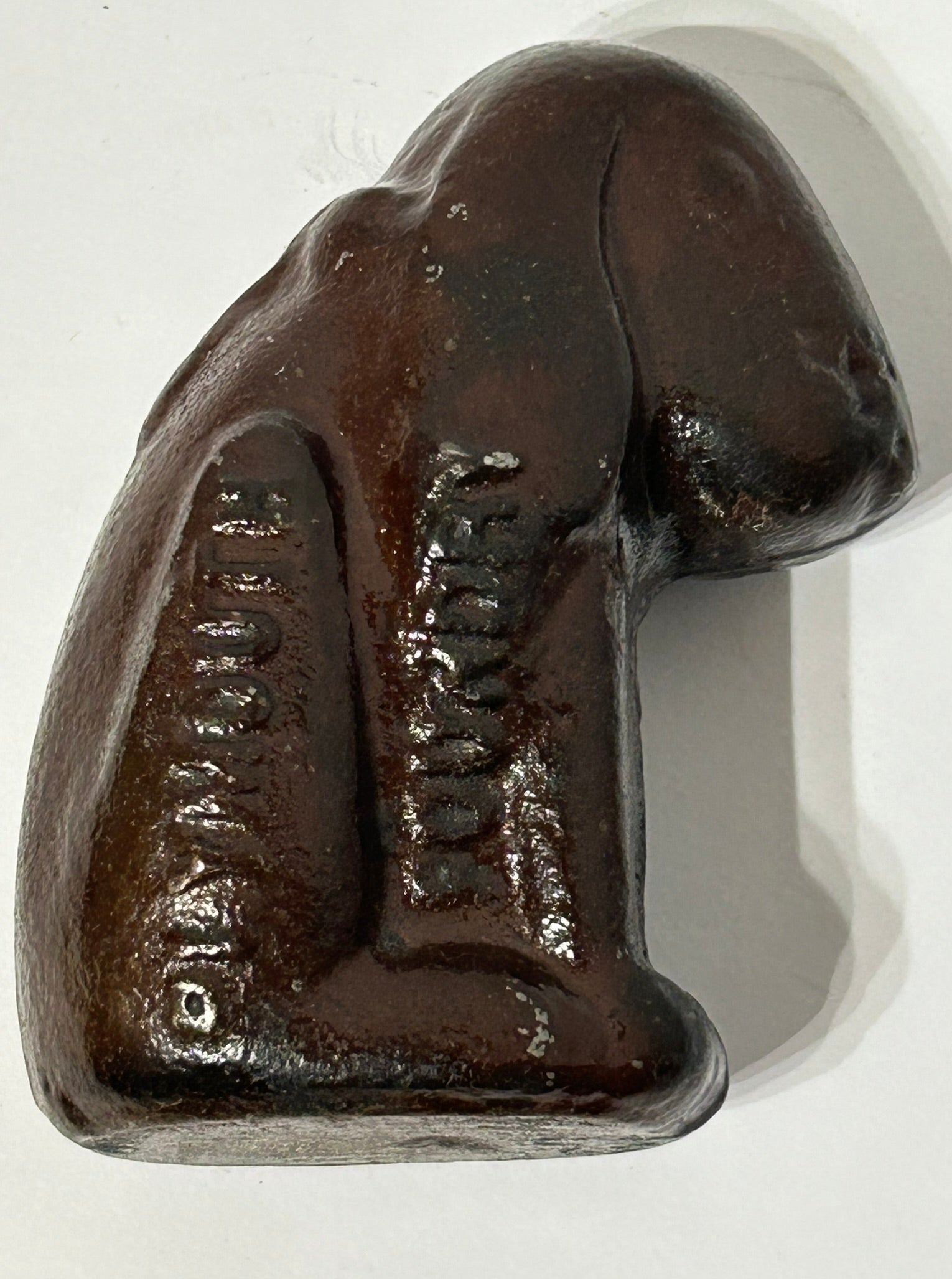 CAST IRON DOG ADVERTISING PAPERWEIGHT FOR PLYMOUTH FOUNDRY