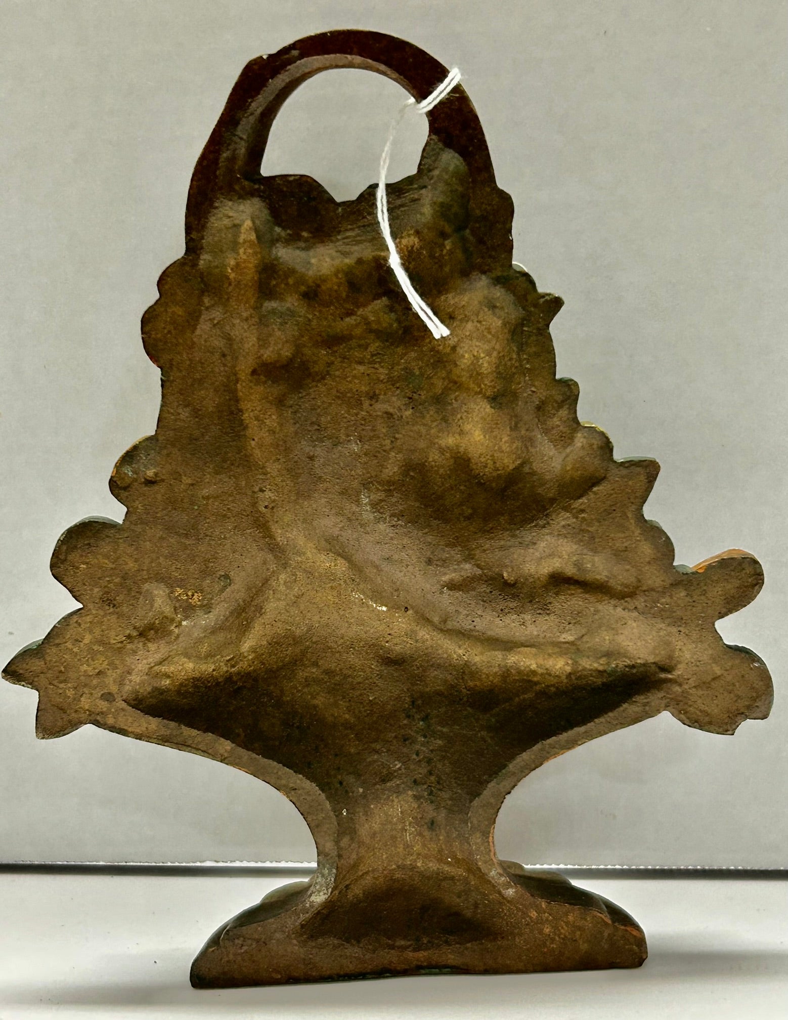 ANTIQUE CAST IRON MIXED FLOWERS IN BASKET DOORSTOP 9" TALL X 7" WIDE. CALL OR TEXT FOR MORE INFORMATION